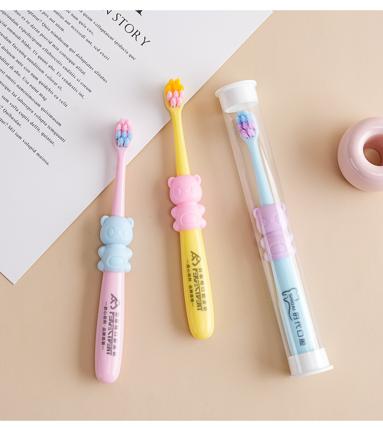 로고/둥근 튜브가 인쇄된 곰 어린이 칫솔