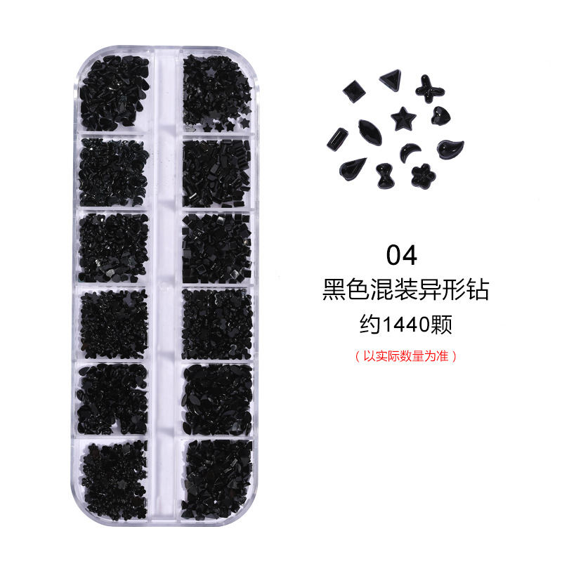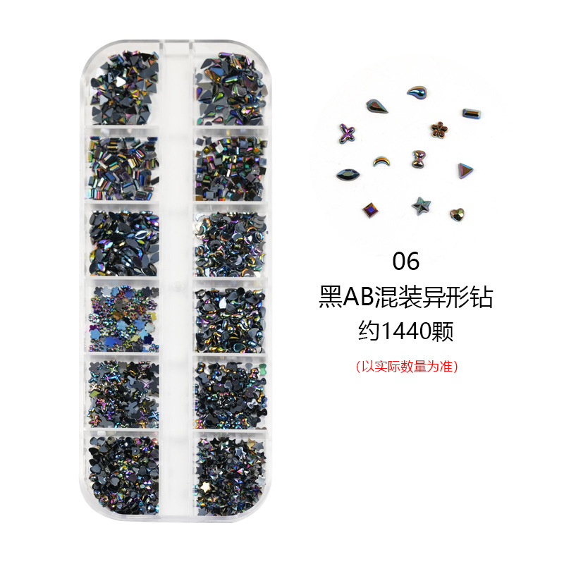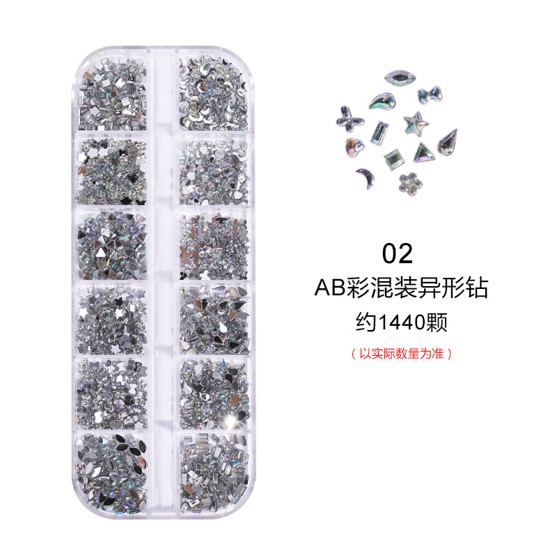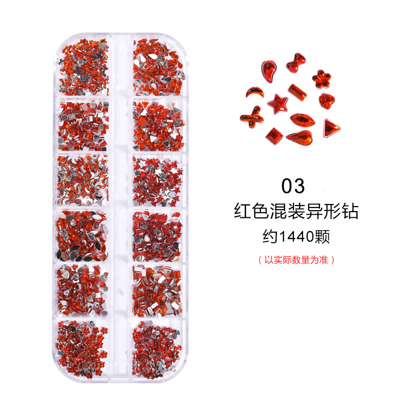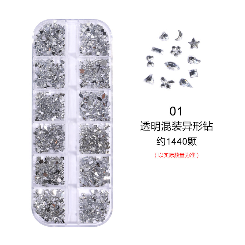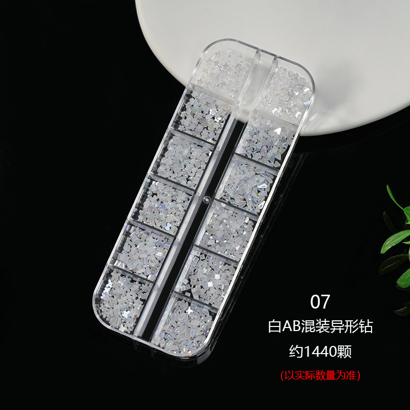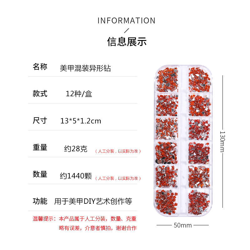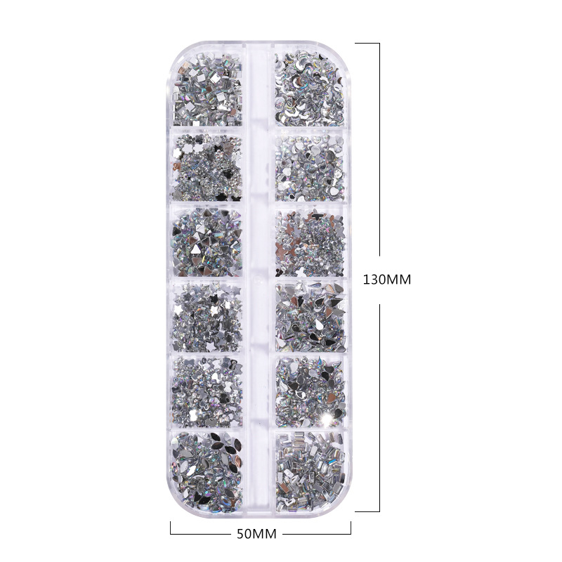 네일 아트 장식품 12칸 특수 모양 아크릴 워터 드롭 미니 하트 리본 등 다양한 모양 혼합 플랫 다이아몬드
