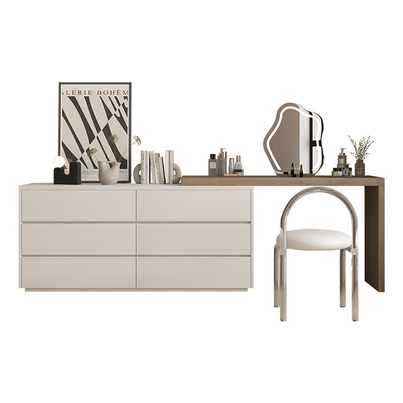【웜 화이트】 6단 서랍장 일체형 화장대 + 거울