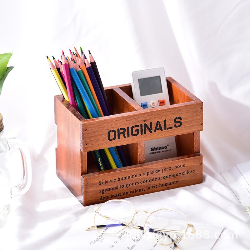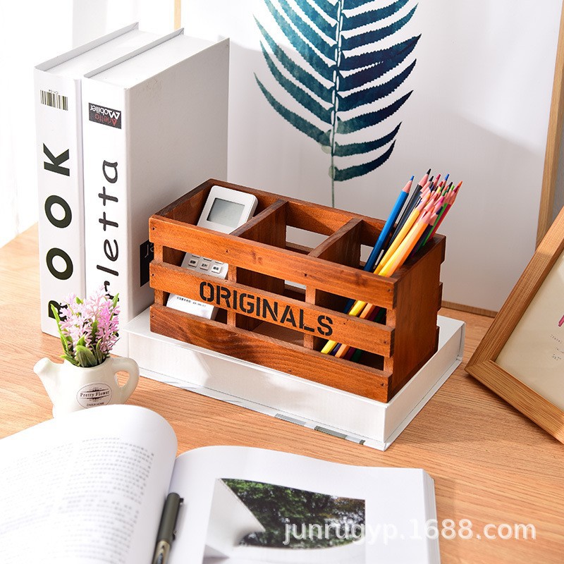 ZAKKA 일본 나무 보관함 가정용 거실 잡화 리모콘 마감 상자 학생 문구 보관 펜 홀더