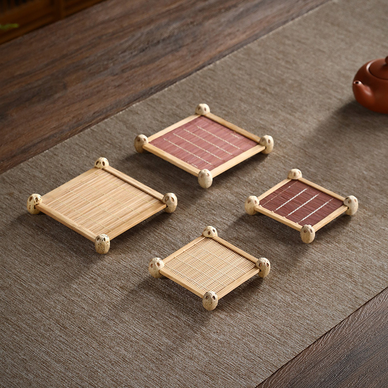 대나무 사각 틱 모양의 코스터 냄비 홀더 과자 작은 트레이 일본식 차 매트 차 매트 단열 매트 대나무 실크 코스터