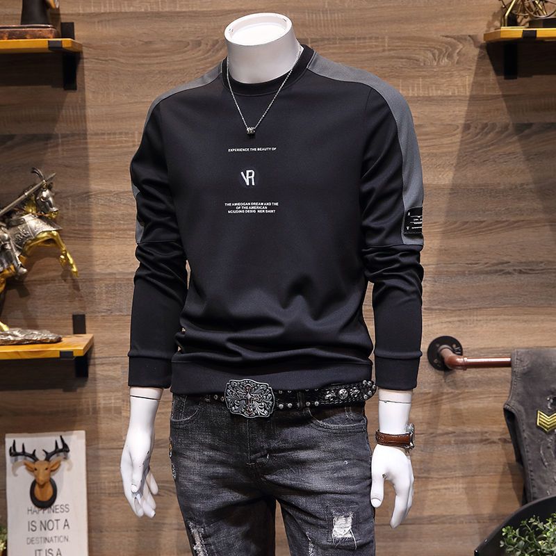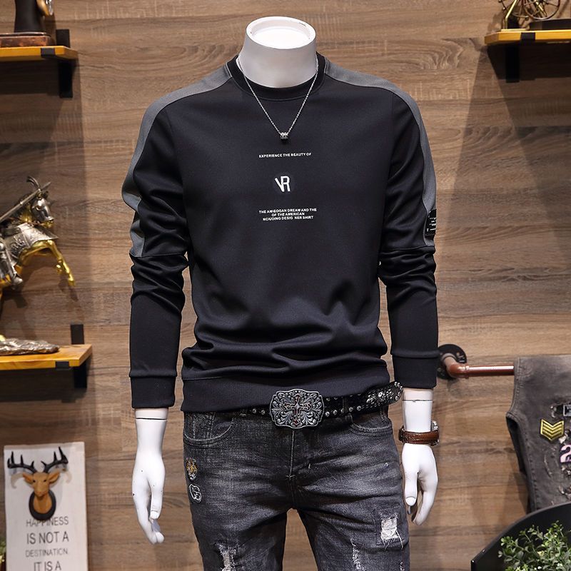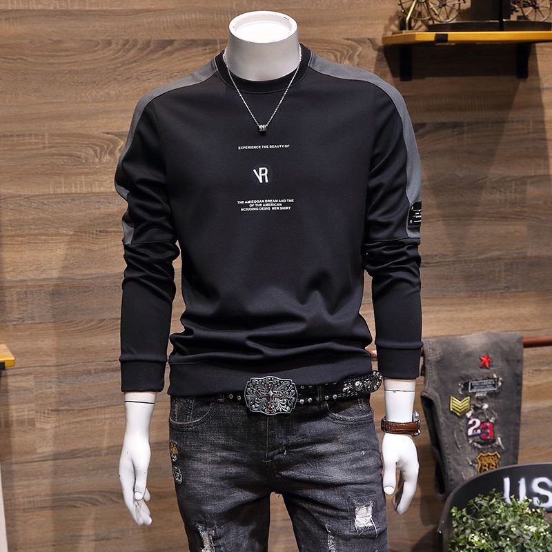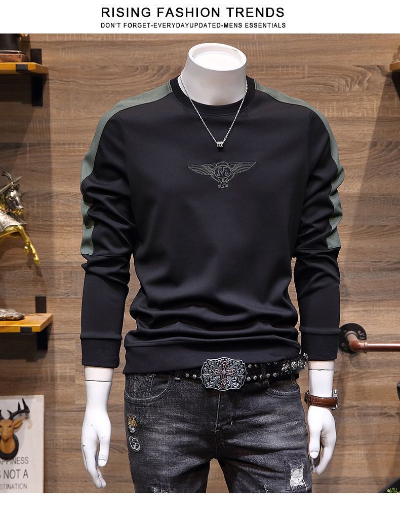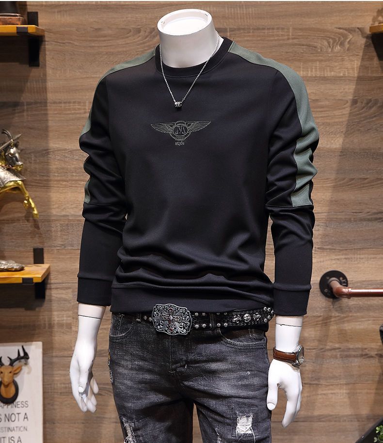 가을 스웨터 남자의 2022 새로운 한국 스타일 유행 슬림 핏 크루넥 풀오버 모든 매치 컬러 매칭 자수 재킷 남성용 봄