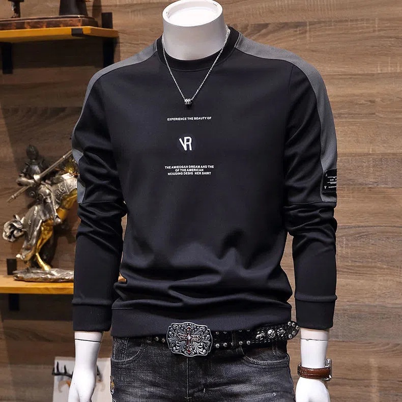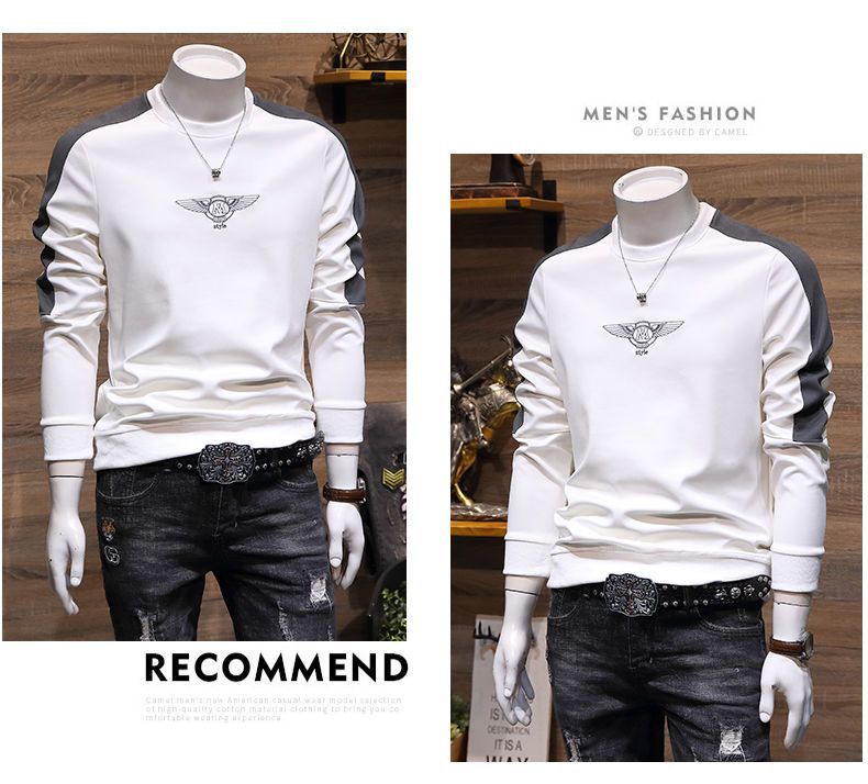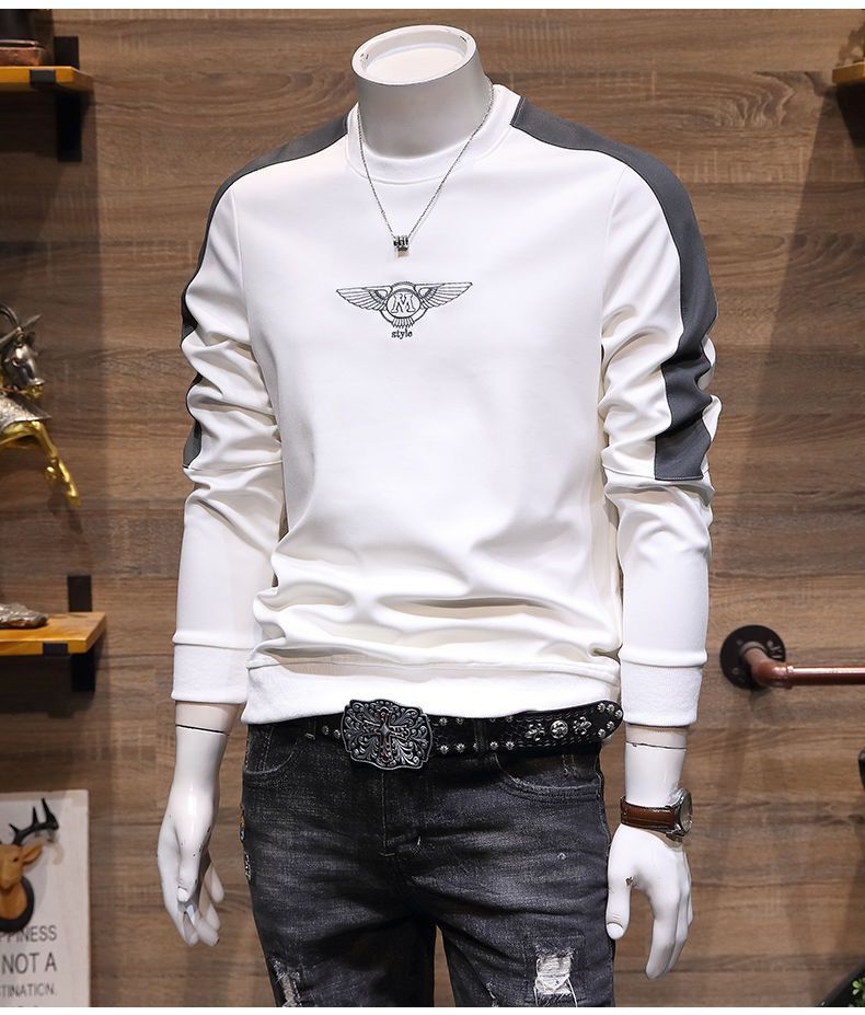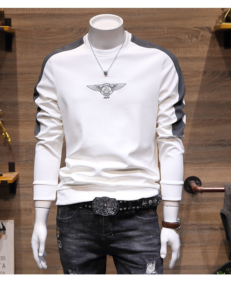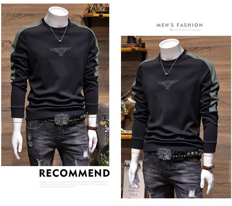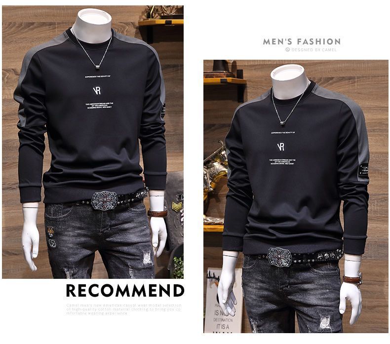 가을 스웨터 남자의 2022 새로운 한국 스타일 유행 슬림 핏 크루넥 풀오버 모든 매치 컬러 매칭 자수 재킷 남성용 봄