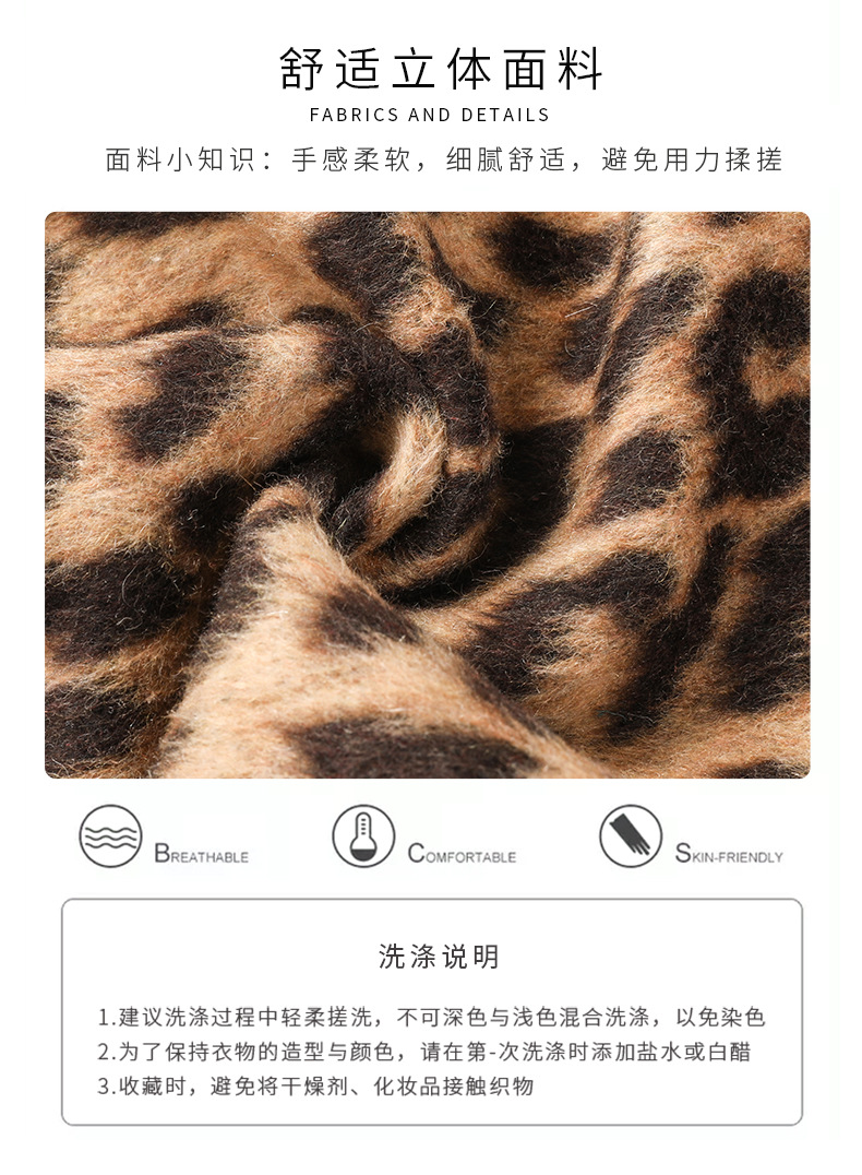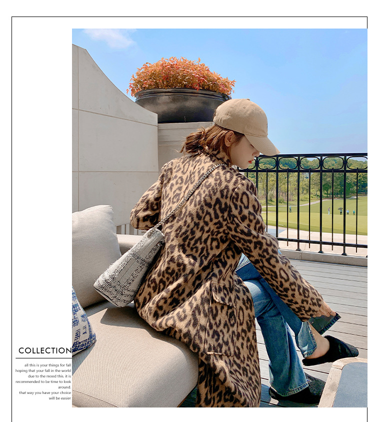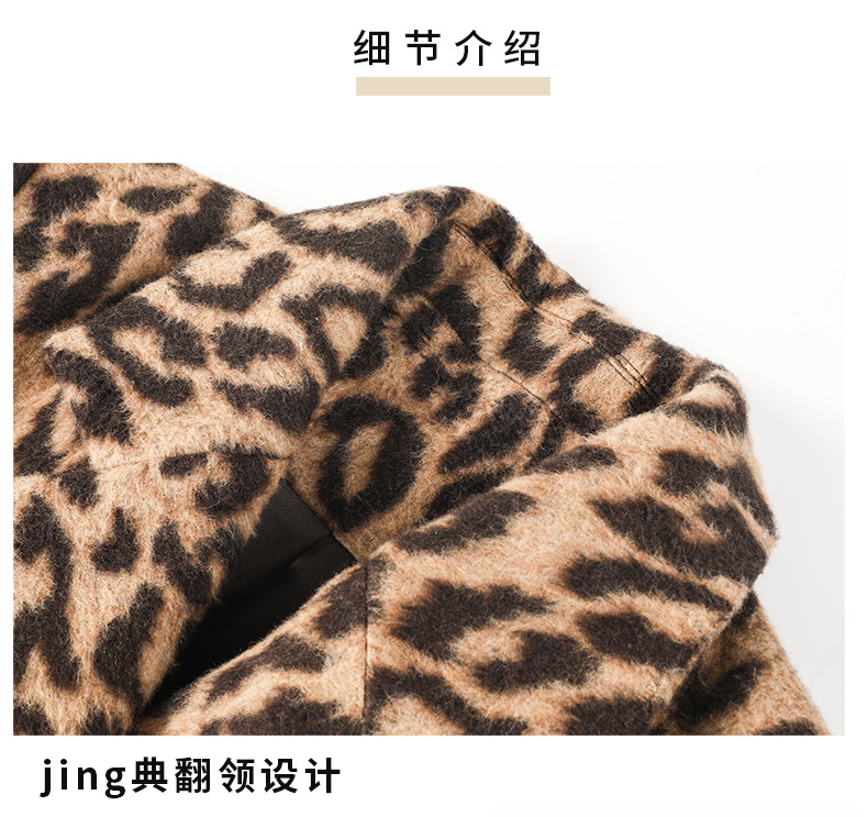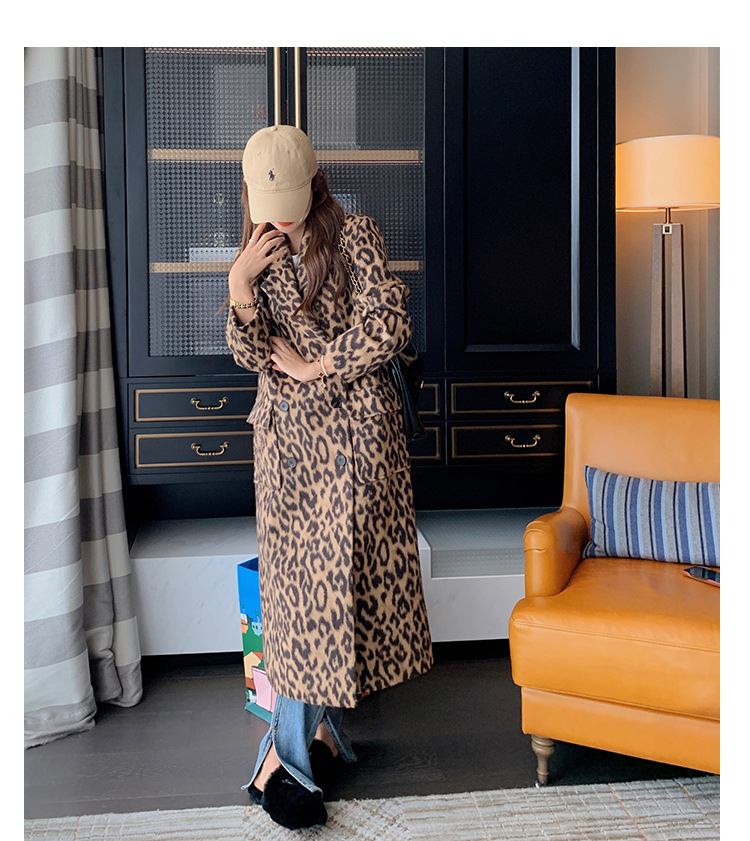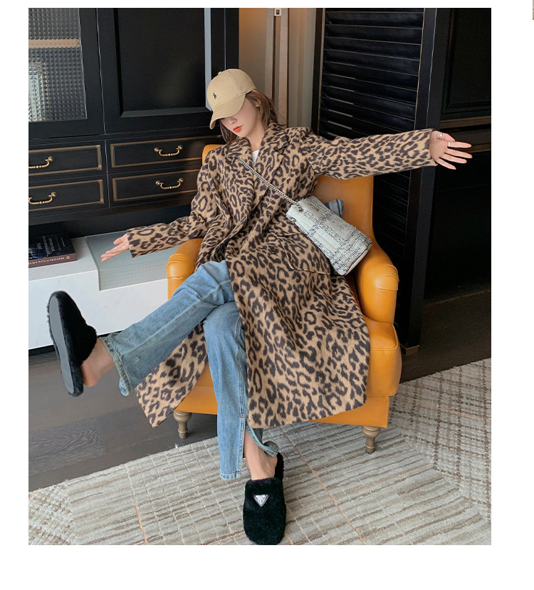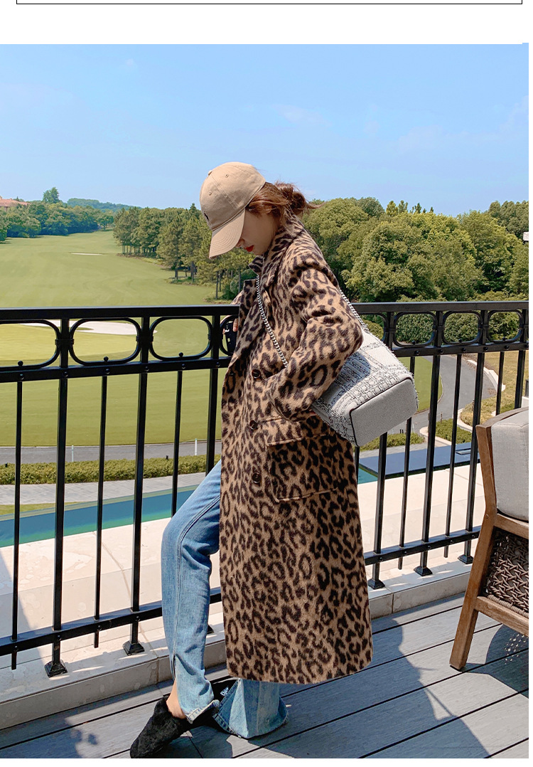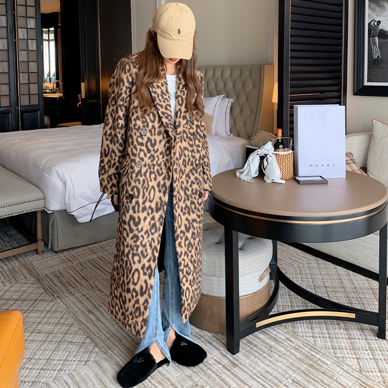 국경 간 새로운 여성 의류 2023 겨울 레오파드 프린트 모직 코트 여성 중간 길이 모직 코트