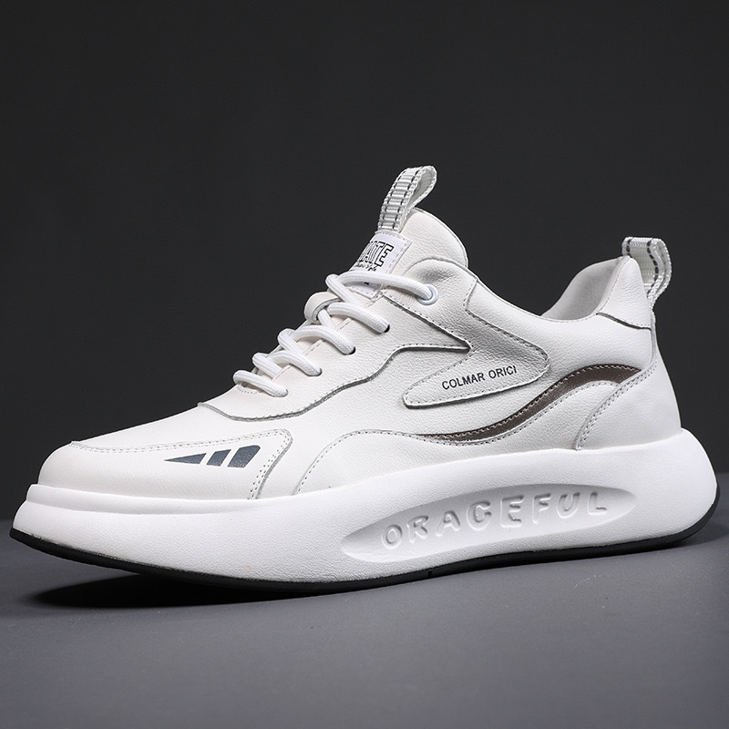 남성용 천연가죽 운동화 2026 봄 신상품 1층 소가죽 캐주얼 런닝화 두꺼운 밑창 신발 R1667 가볍고 내마모성이 좋음