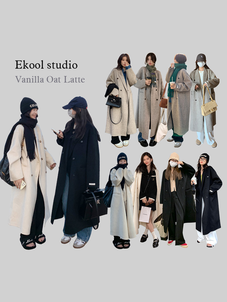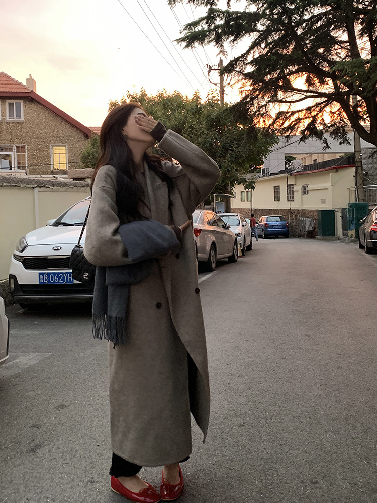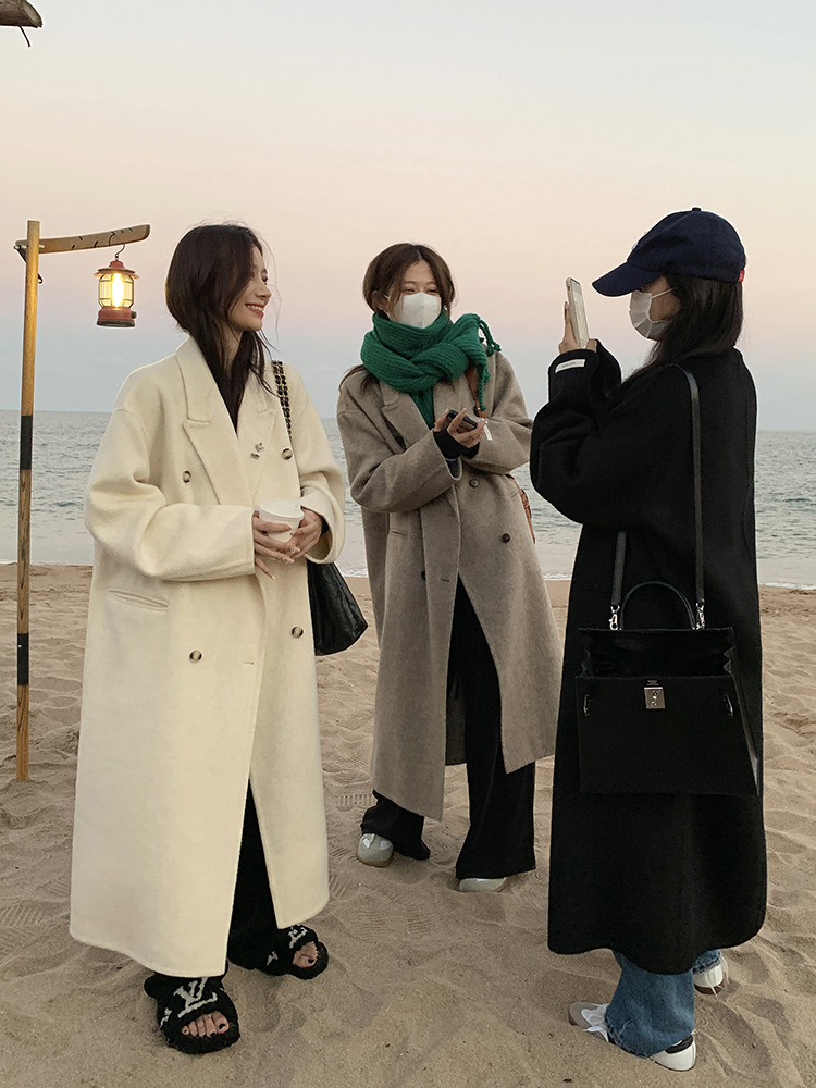 가을 겨울 여성용 Baishiwang 하이 카운트 고밀도 양면 울 코트, 고급 긴 느슨한 두꺼운 모직 코트