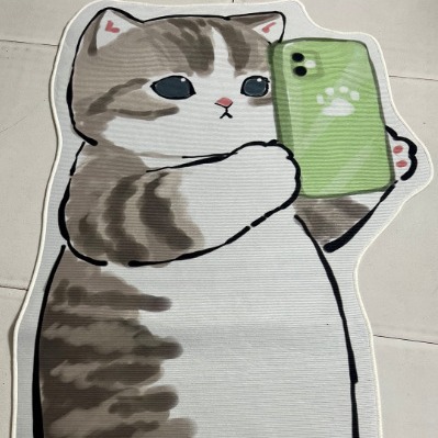 귀여운 만화 고양이 발바닥 모양 크리스탈 벨벳 프린트 카펫, 거실, 침실, 침대 옆, 아이 방에 적합