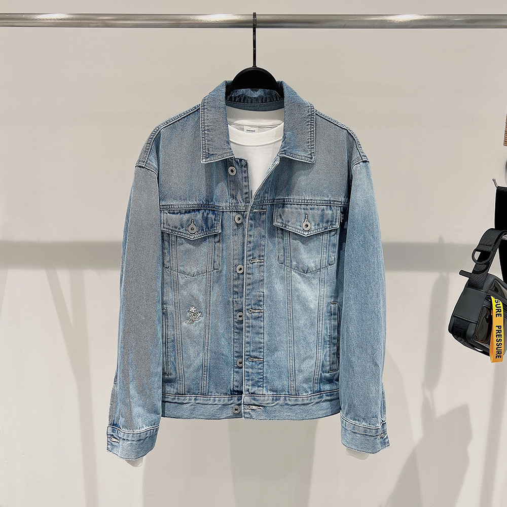패션 트렌드 남자의 봄과 가을 새로운 데님 재킷 개인 자수 캐주얼 코트 면 B2BJC3160