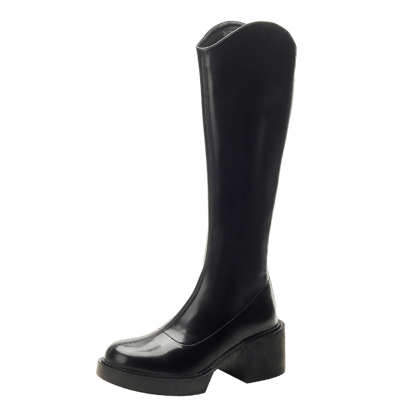 와이드 버전~ 여성용 하이힐 롱부츠, 굵은 굽, 무릎 위까지 오지 않는 두꺼운 다리용 라이더 부츠, 슬림 효과, 기모 안감, 가을 겨울 롱부츠