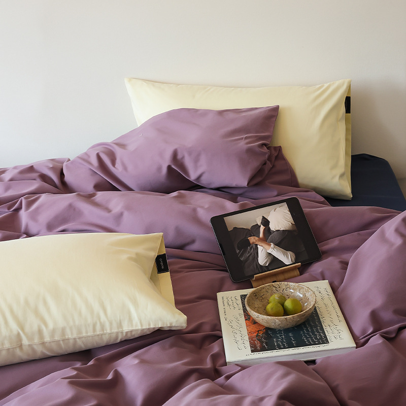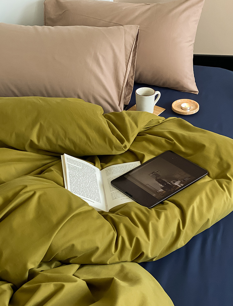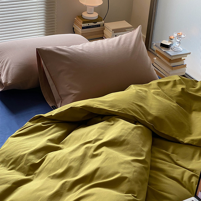 100 아기 코튼 샌딩 4 종 세트 부드러운 컬러 매칭 코튼 새틴 따뜻한 가을과 겨울 침대 린넨 침구