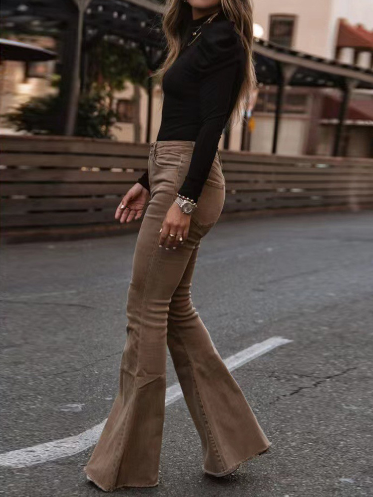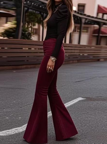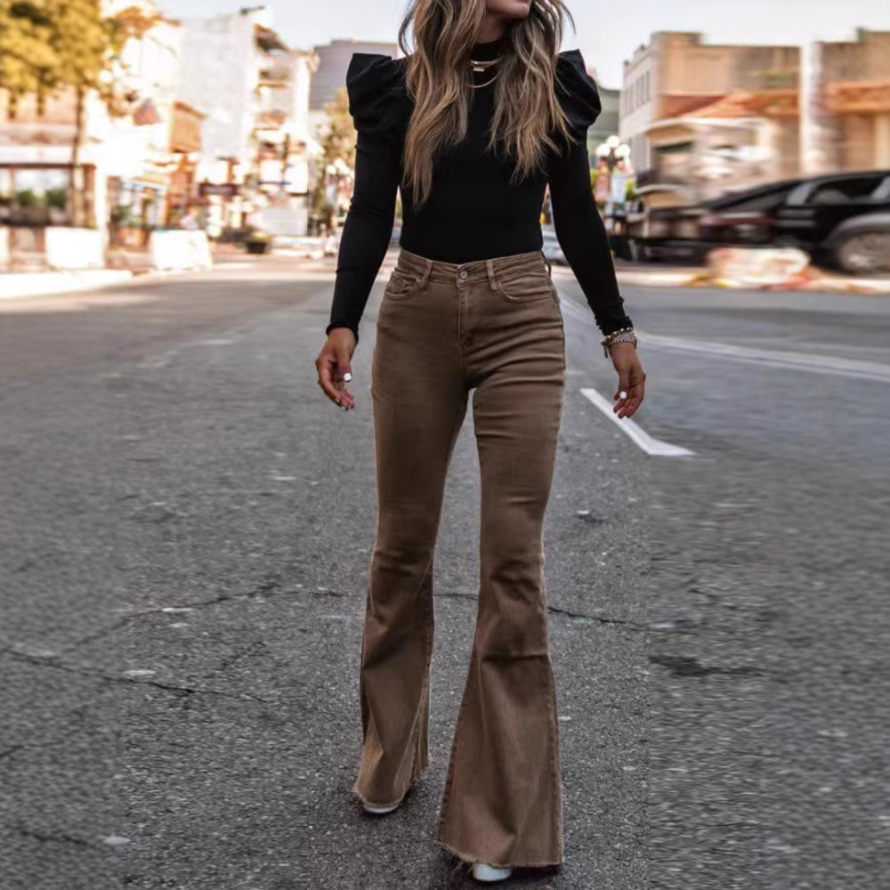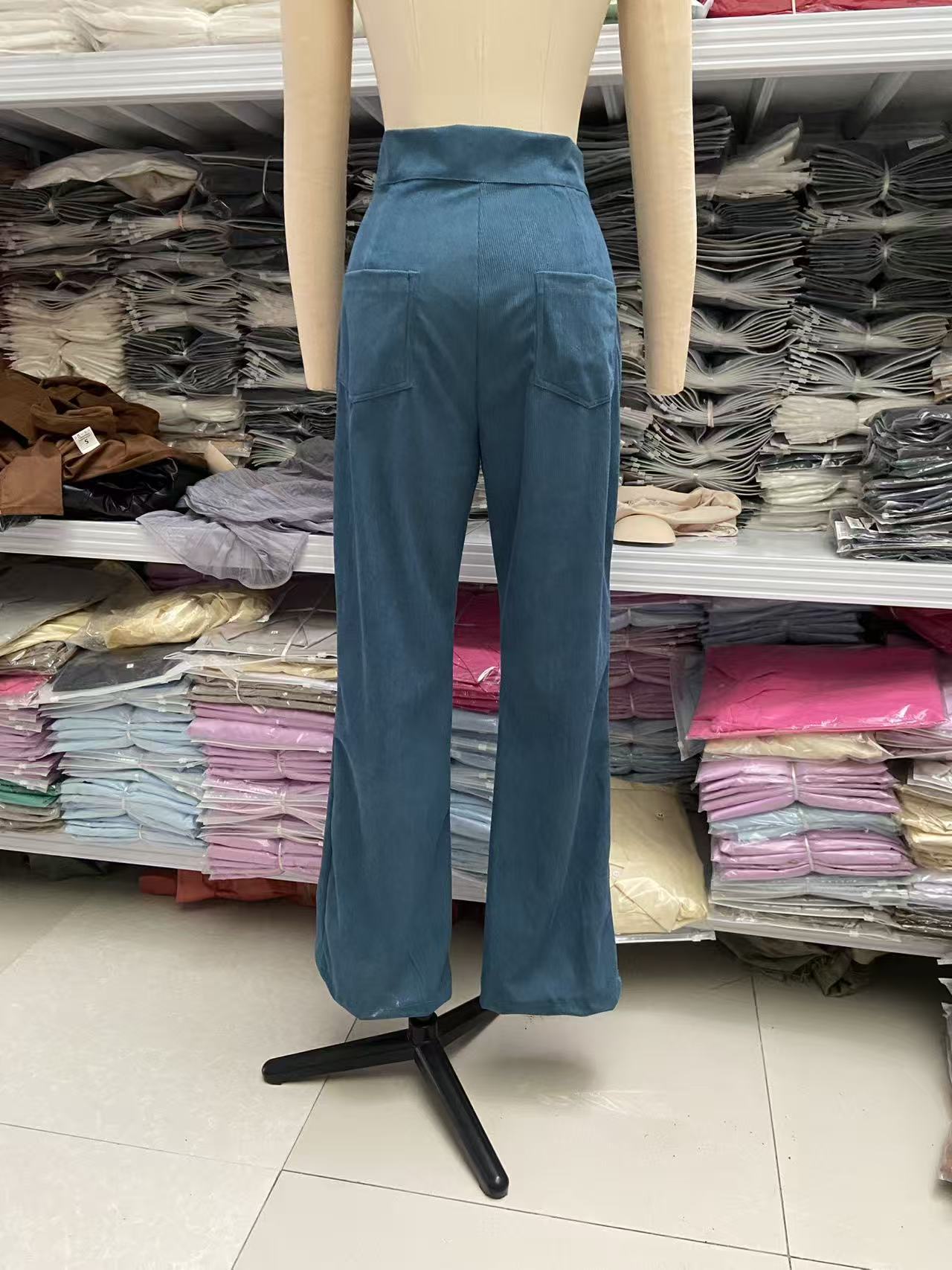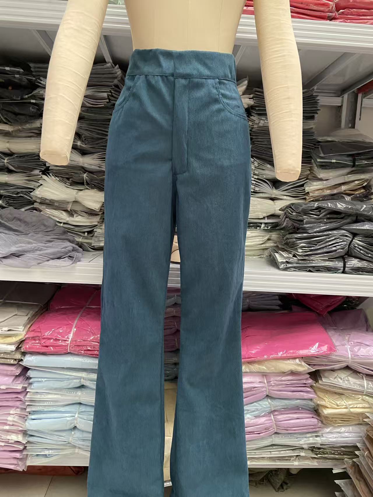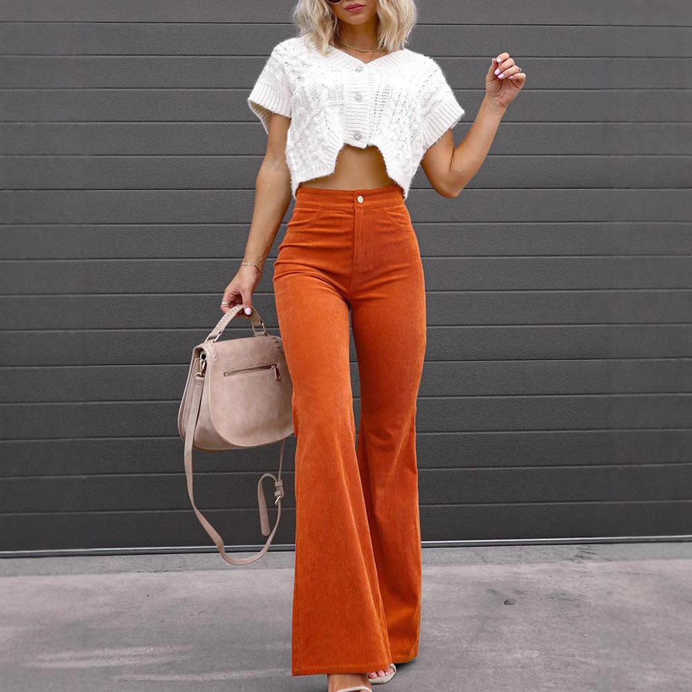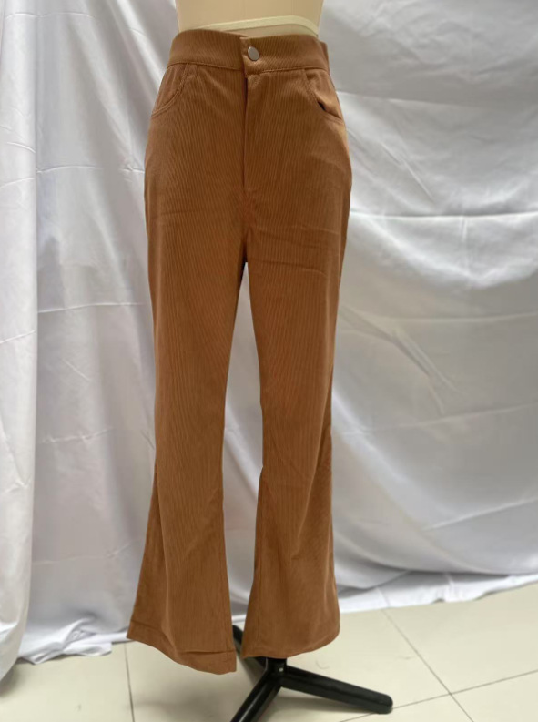 25 크로스보더 코듀로이 사계절 여성 바지 버튼 홈웨어 슬림핏 여성 벨보텀 캐주얼 팬츠 재고 있음