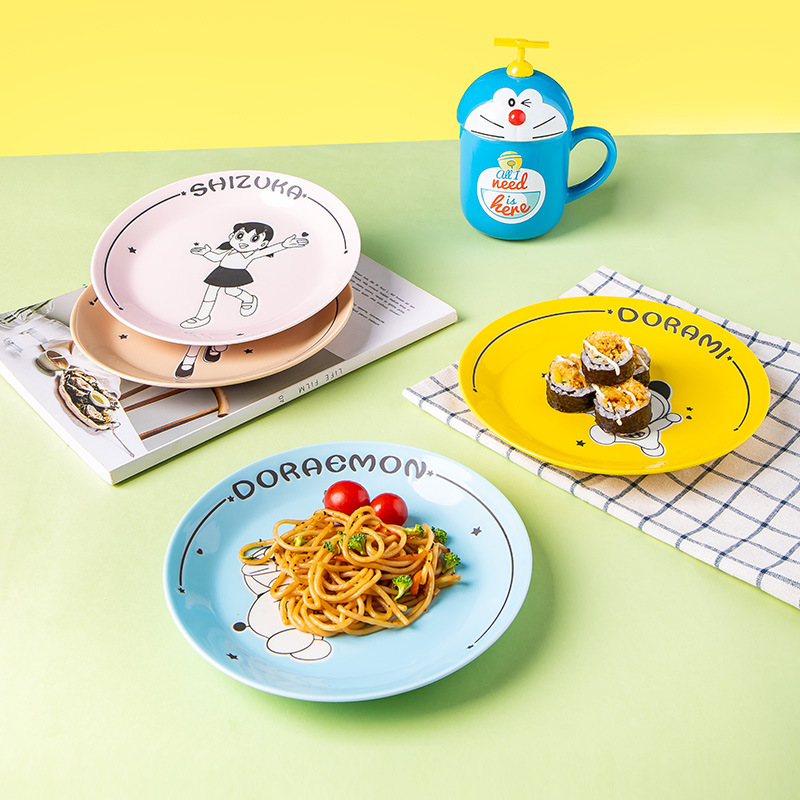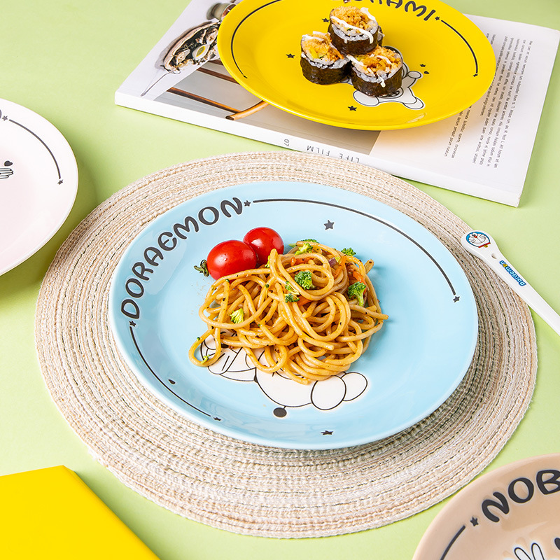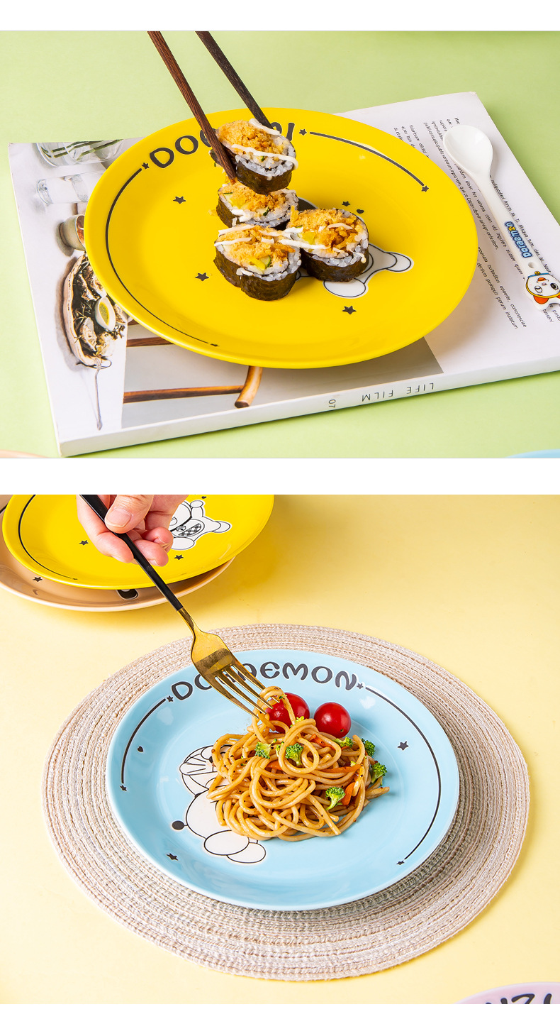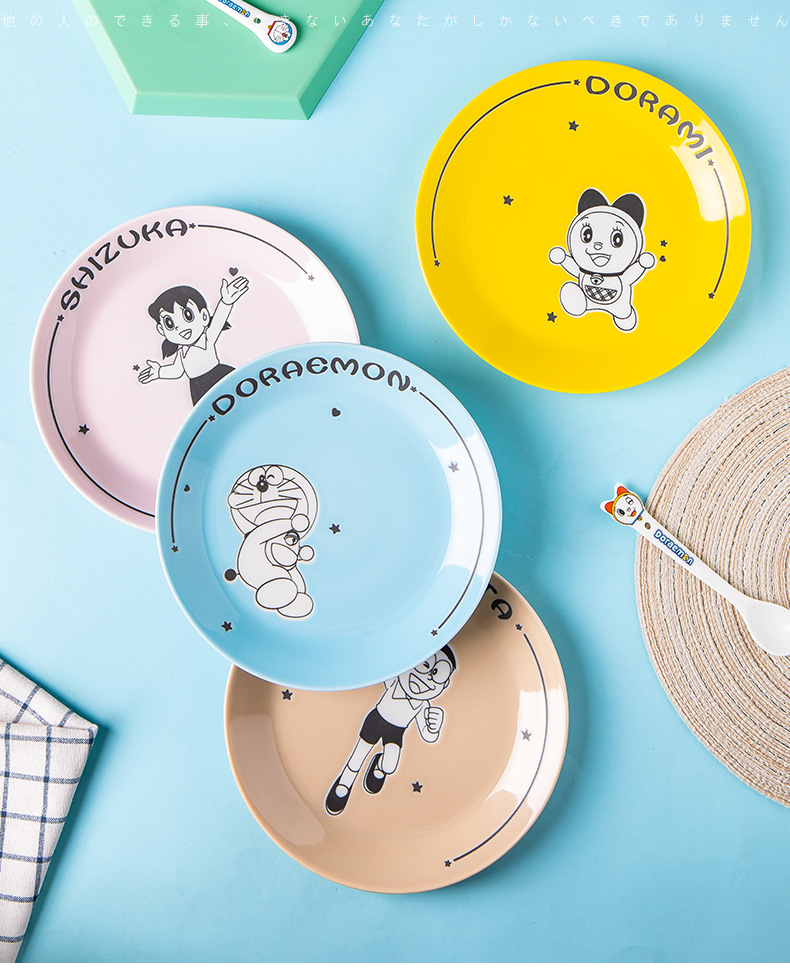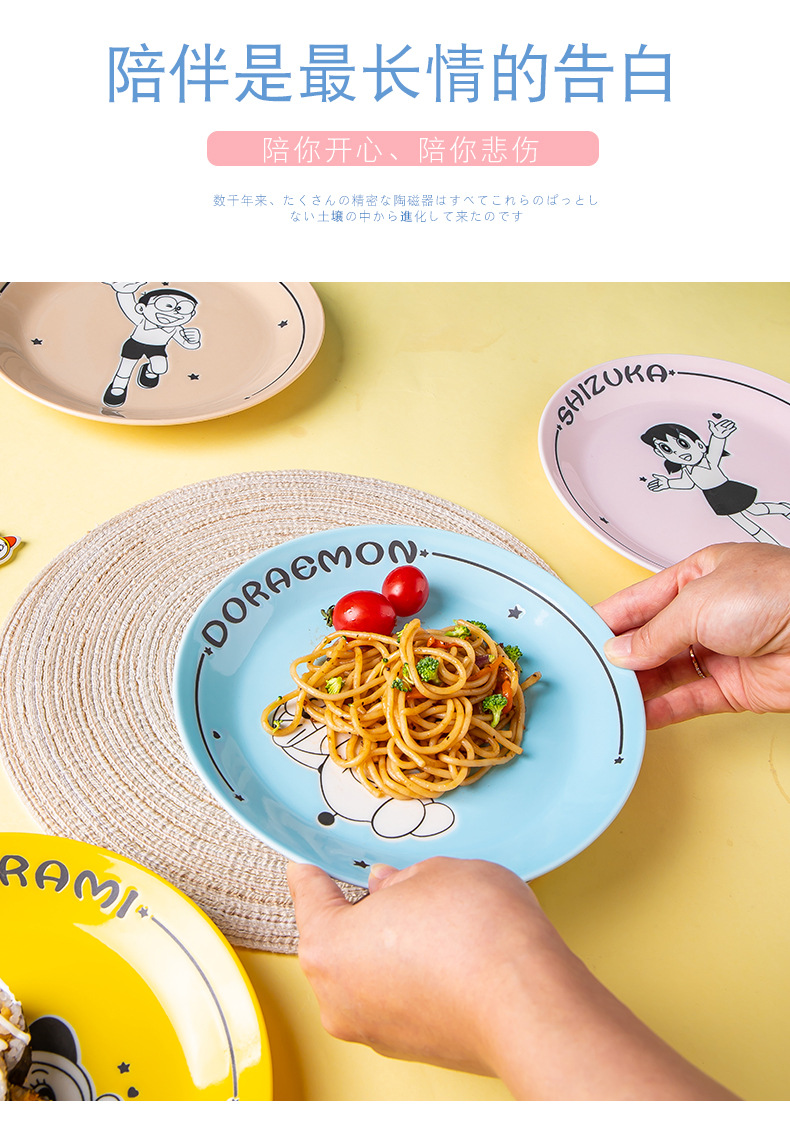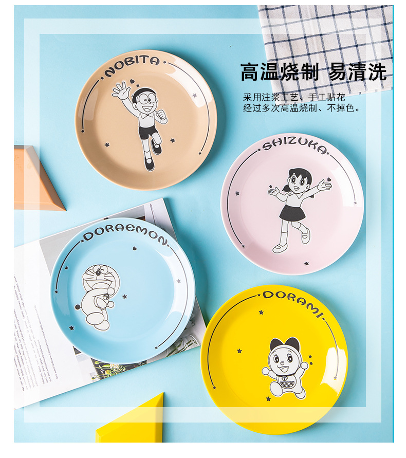 도라에몽 만화 접시 세라믹 식기 접시 크리에이티브 일본식 원형 접시 가정용 원형 식사 접시 일본풍