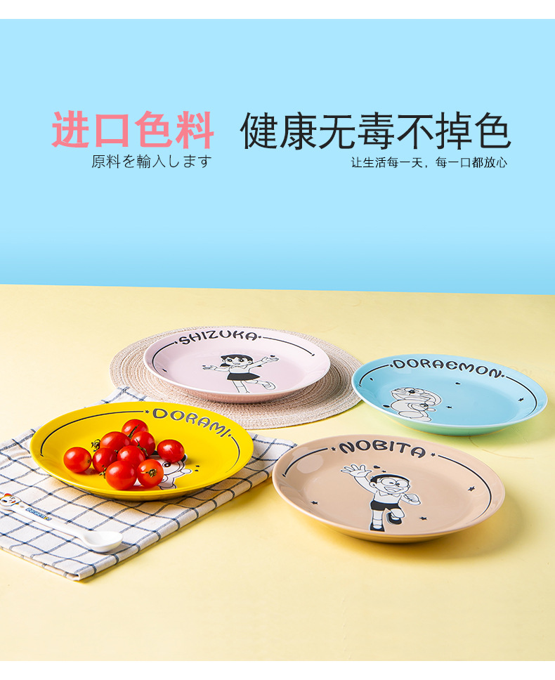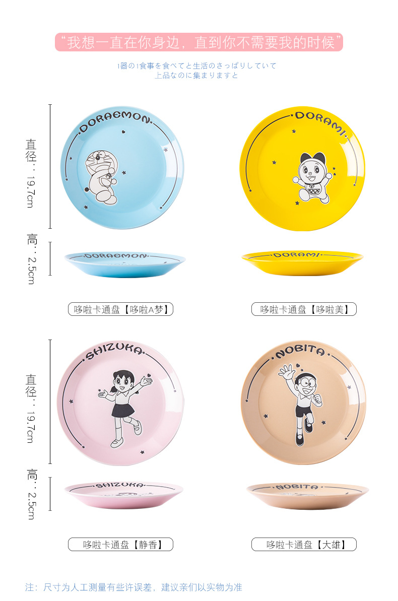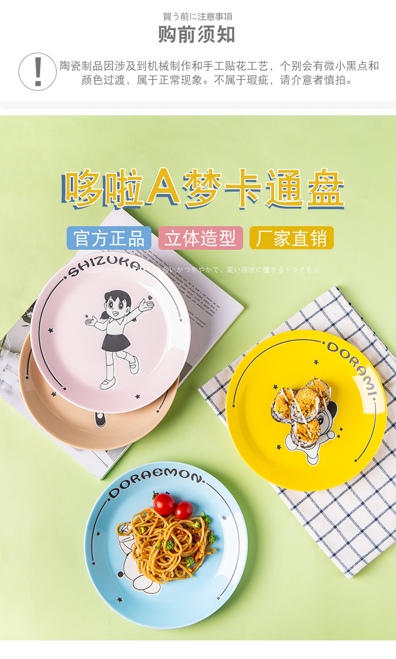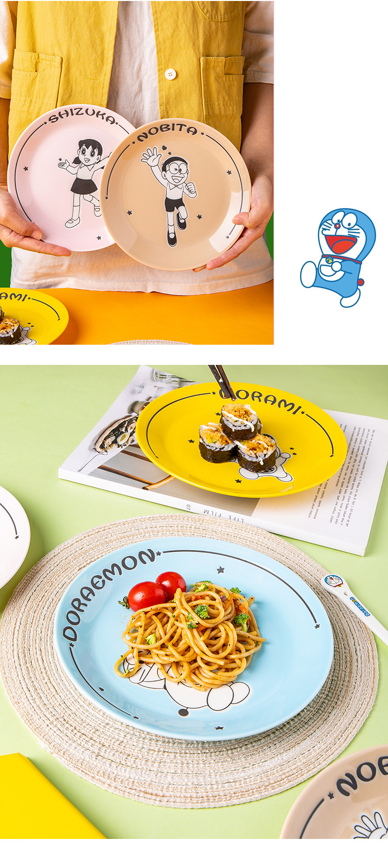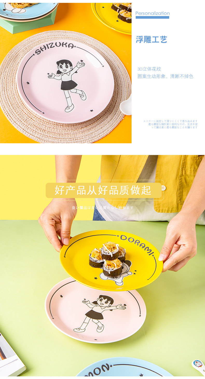 도라에몽 만화 접시 세라믹 식기 접시 크리에이티브 일본식 원형 접시 가정용 원형 식사 접시 일본풍