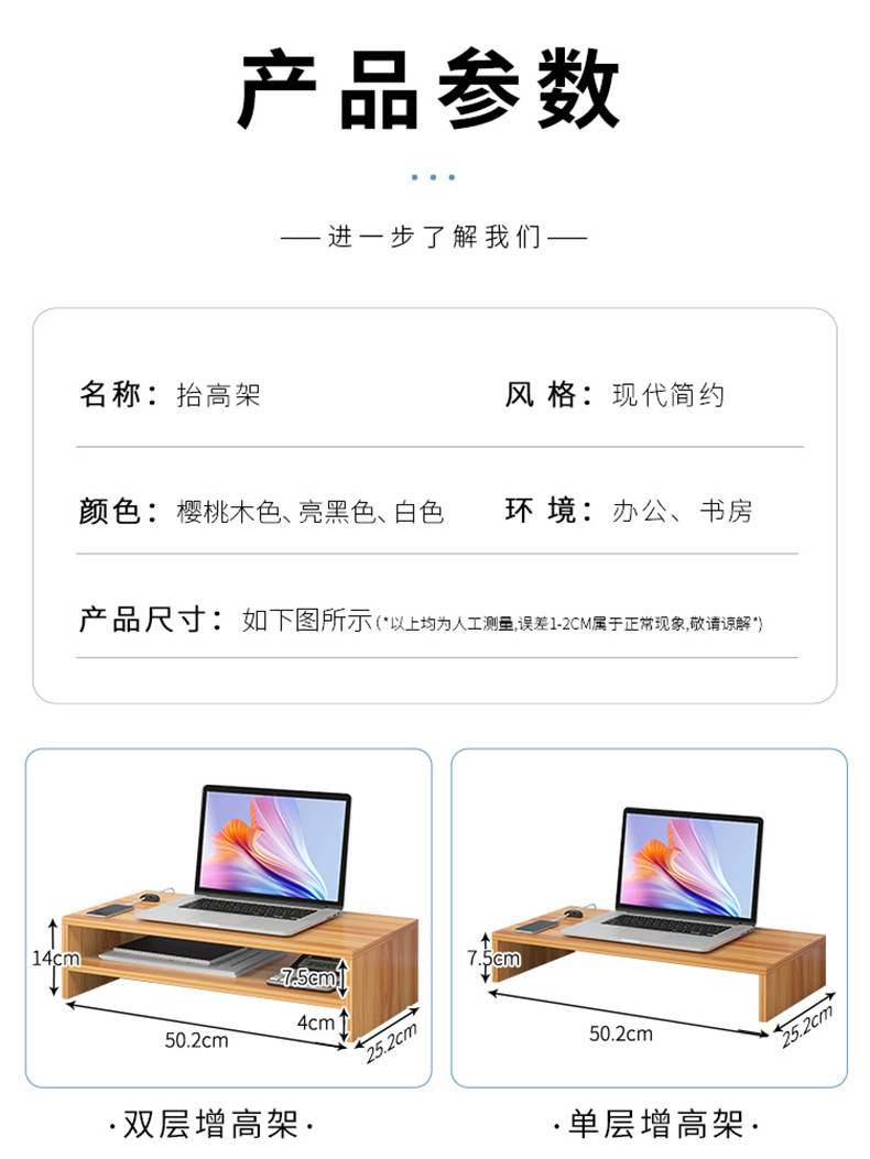 办公室笔记本电脑增高架工位置物架桌面收纳盒子台式显示器支撑架