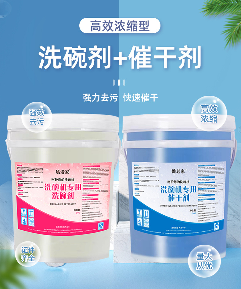 상업용 식기 세척기 특수 세제 건조기 식기 세척액 광택제 세트 식기 라이어 대형 버킷 식기 세척제