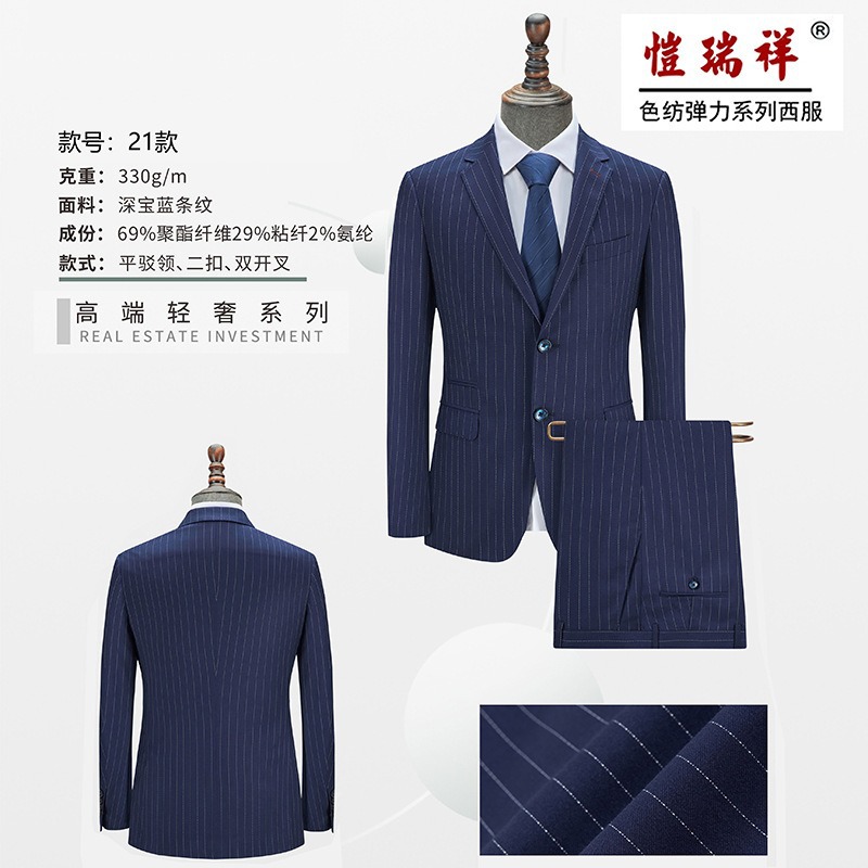 21가지 가벼운 럭셔리 다크 사파이어 블루 스트라이프 더블 슬릿 슈트