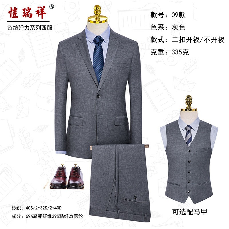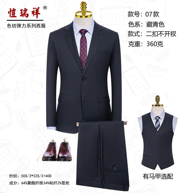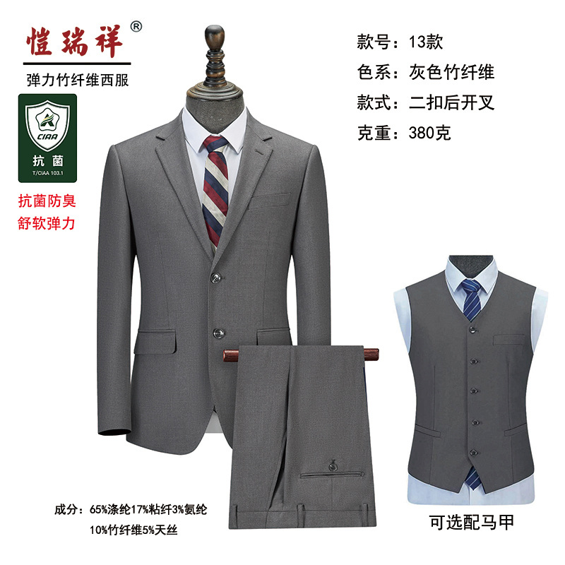 남성 고급 컬러스판 정장 신축성 있는 정장 세트 결혼식 연회 금융 부동산 직업복 대나무 섬유 신랑 들러리