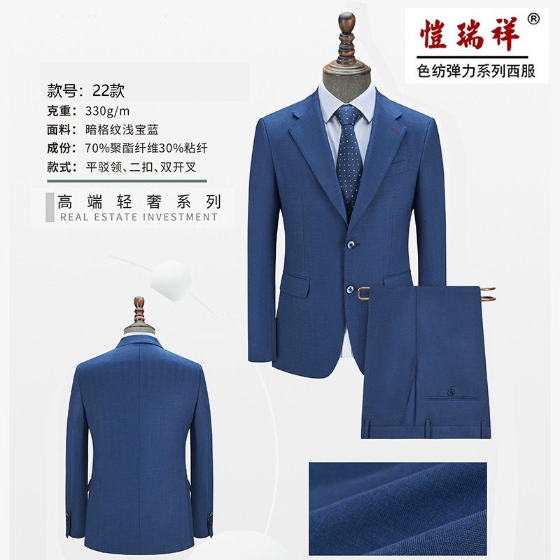 22가지 스타일의 가벼운 럭셔리 다크 체크 무늬 라이트 사파이어 블루 더블 슬릿 슈트
