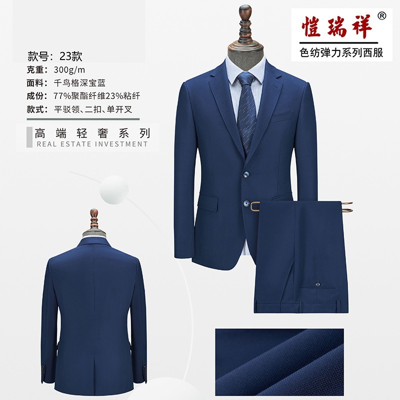 23가지 스타일의 가벼운 럭셔리 물떼새 격자 다크 사파이어 블루 싱글 슬릿 슈트