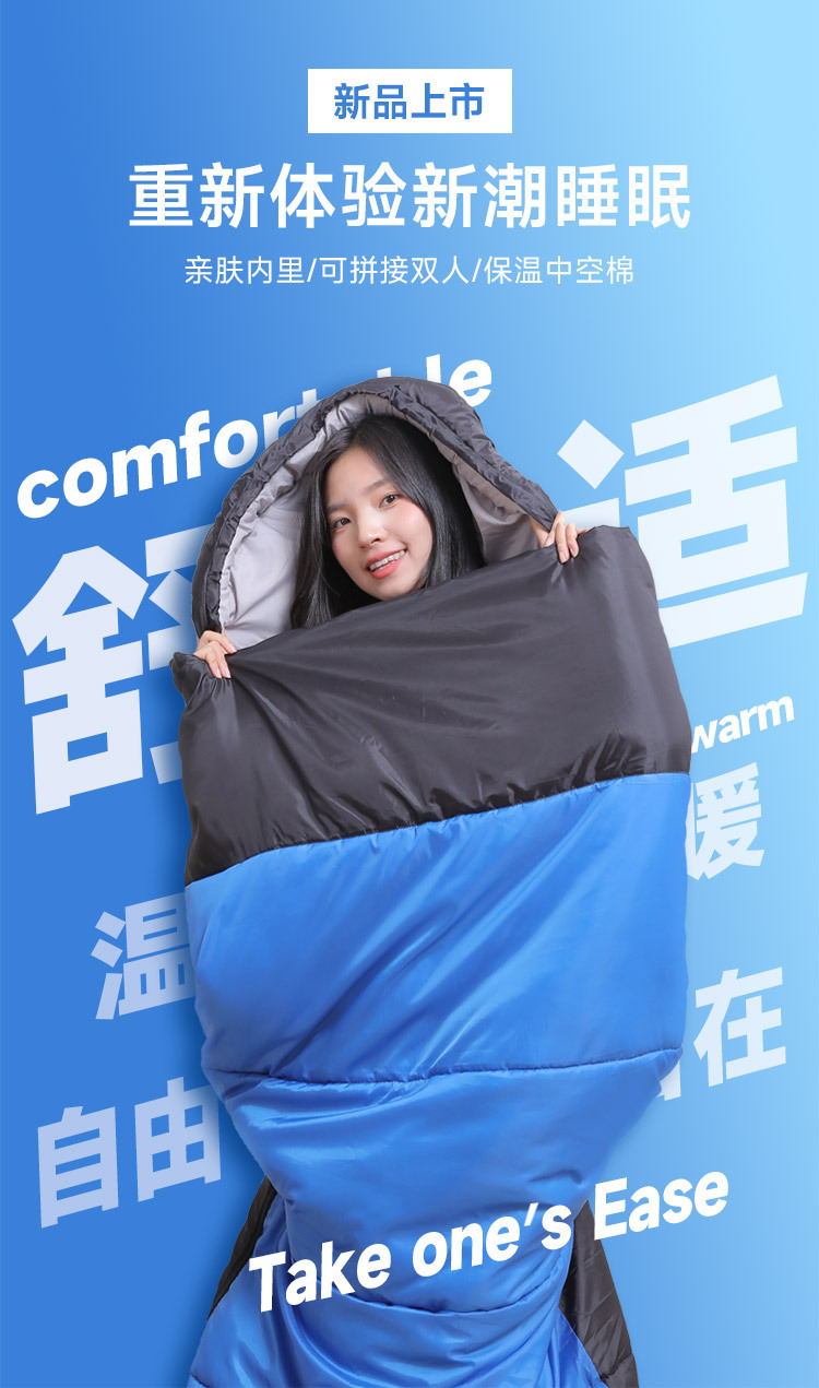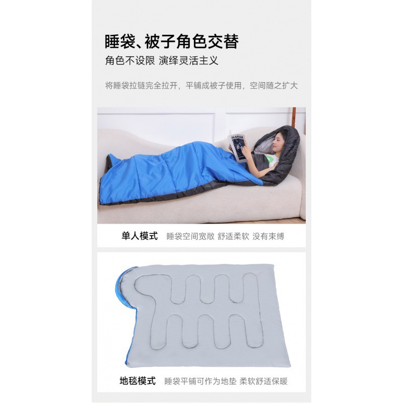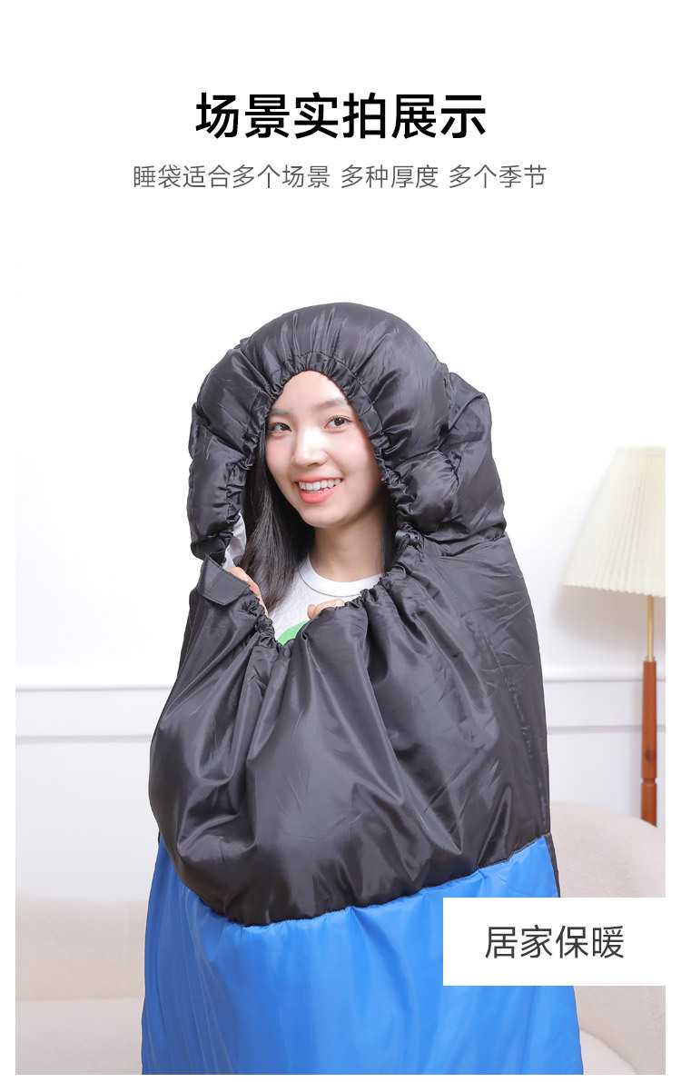 가을과 겨울 두꺼운 봉투 후드 성인 침낭 실내 점심 시간 야외 캠핑 방한 따뜻한 싱글 침낭
