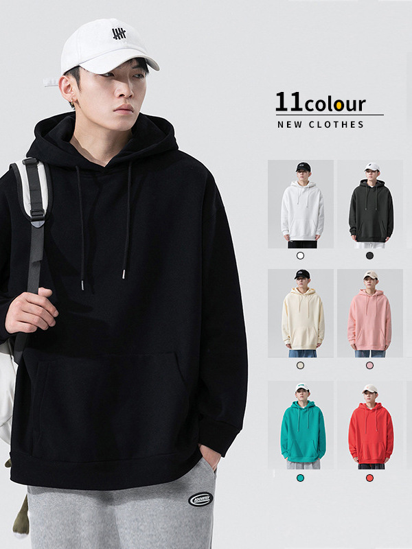 단색 후드 스웨터 남성용 2022 봄 가을 새로운 더블 모자 탑 한국 유행 느슨한 모든 매치 재킷