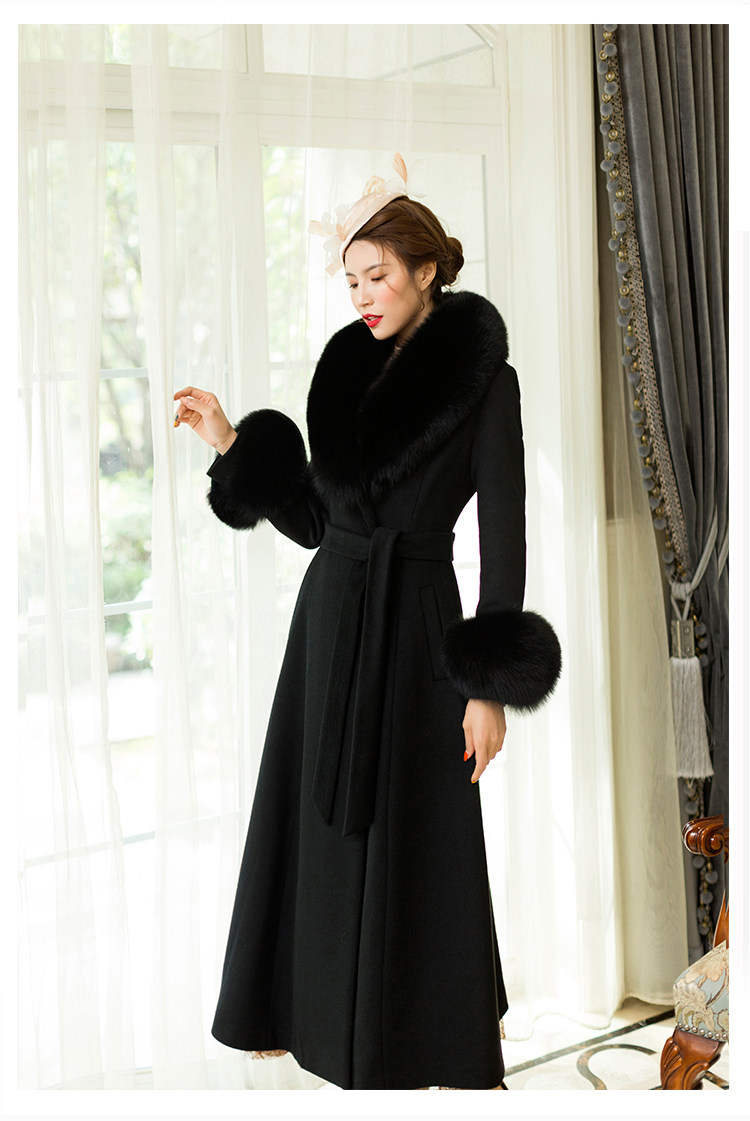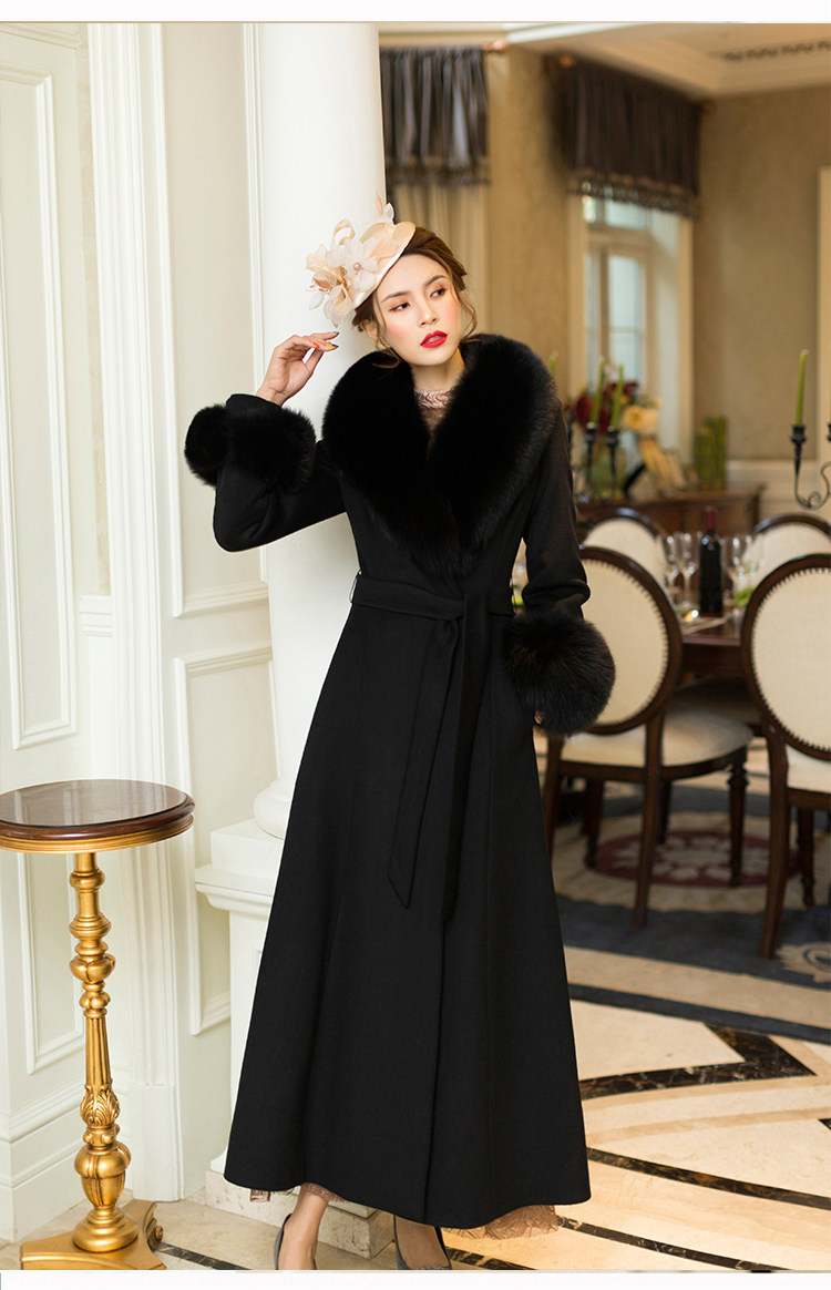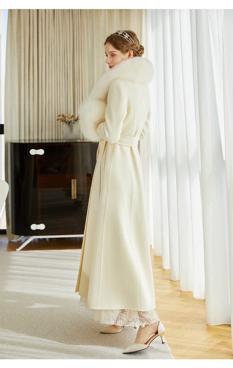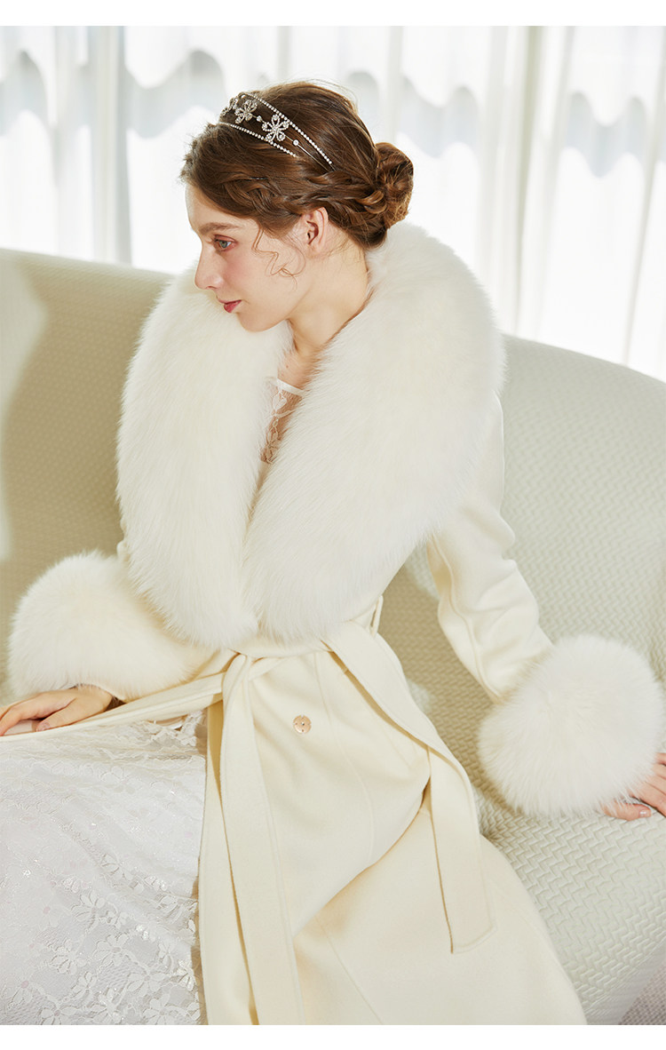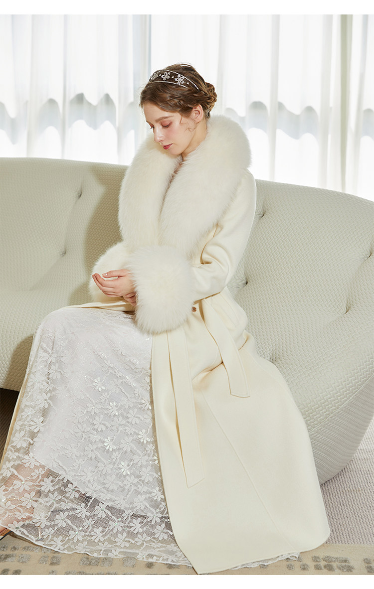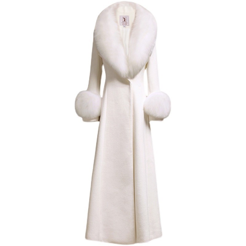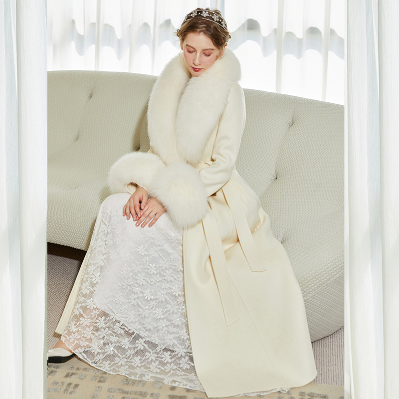 화이트 오스트레일리아 두꺼운 울 롱 코트 슬림핏 양면 캐시미어 가죽 모직 여우 울 칼라 여성용 롱 코트