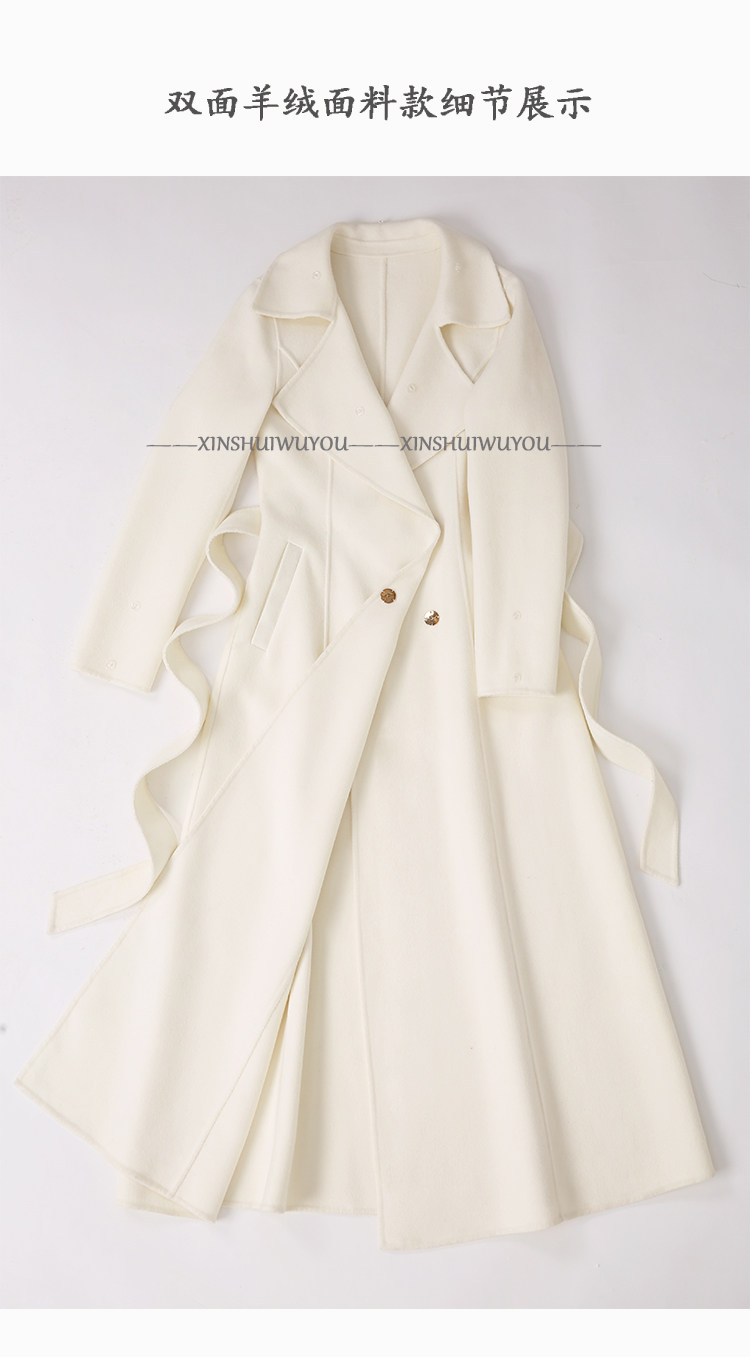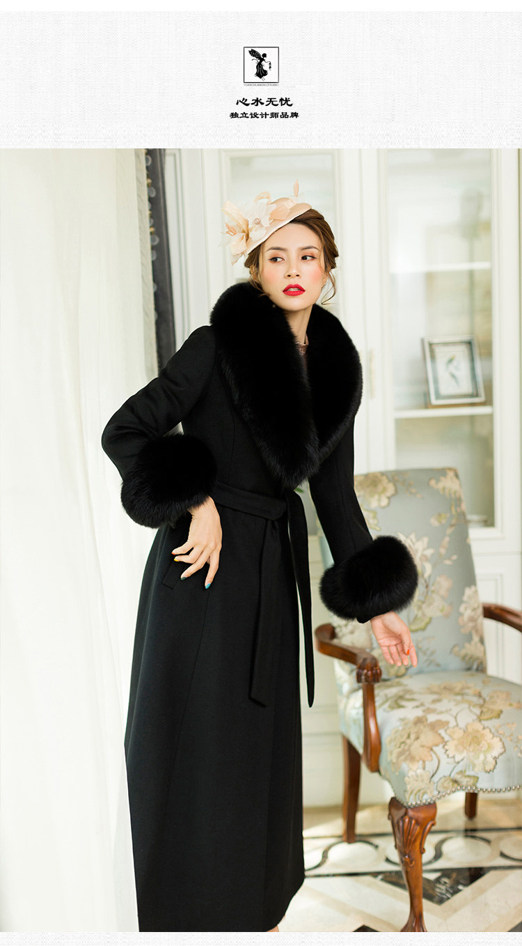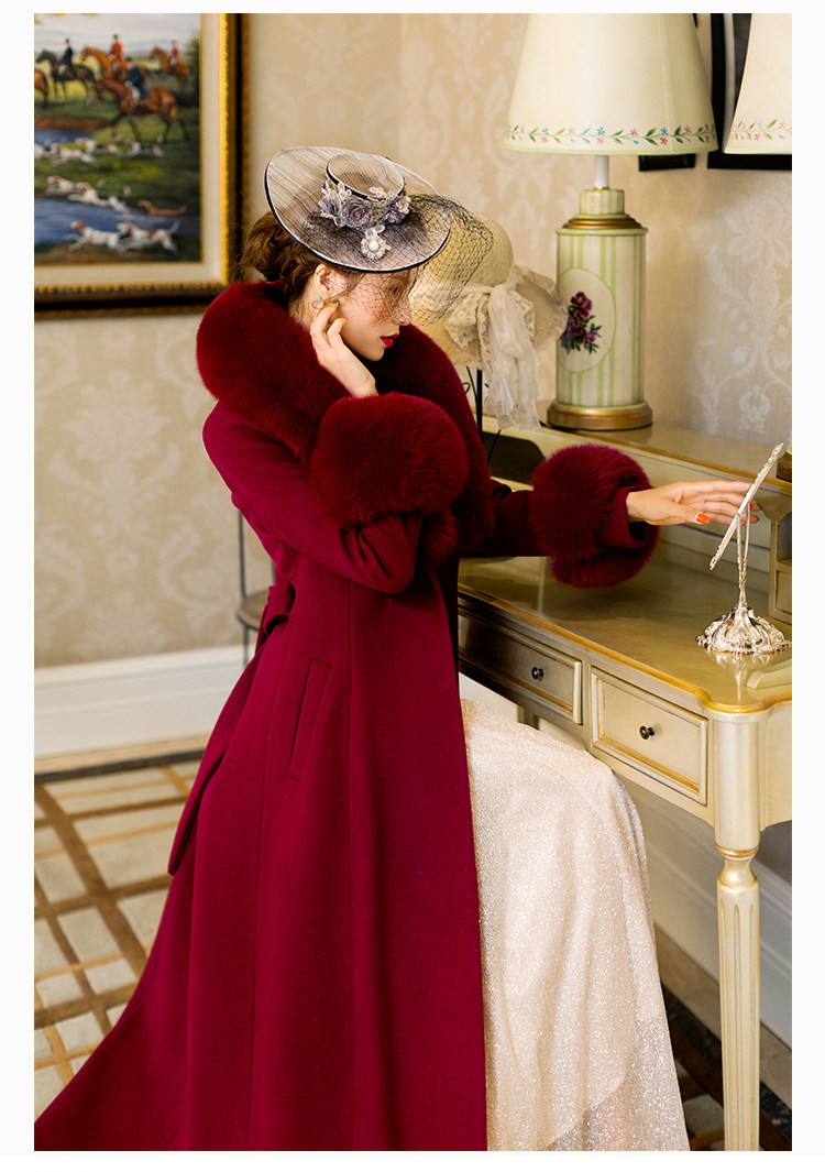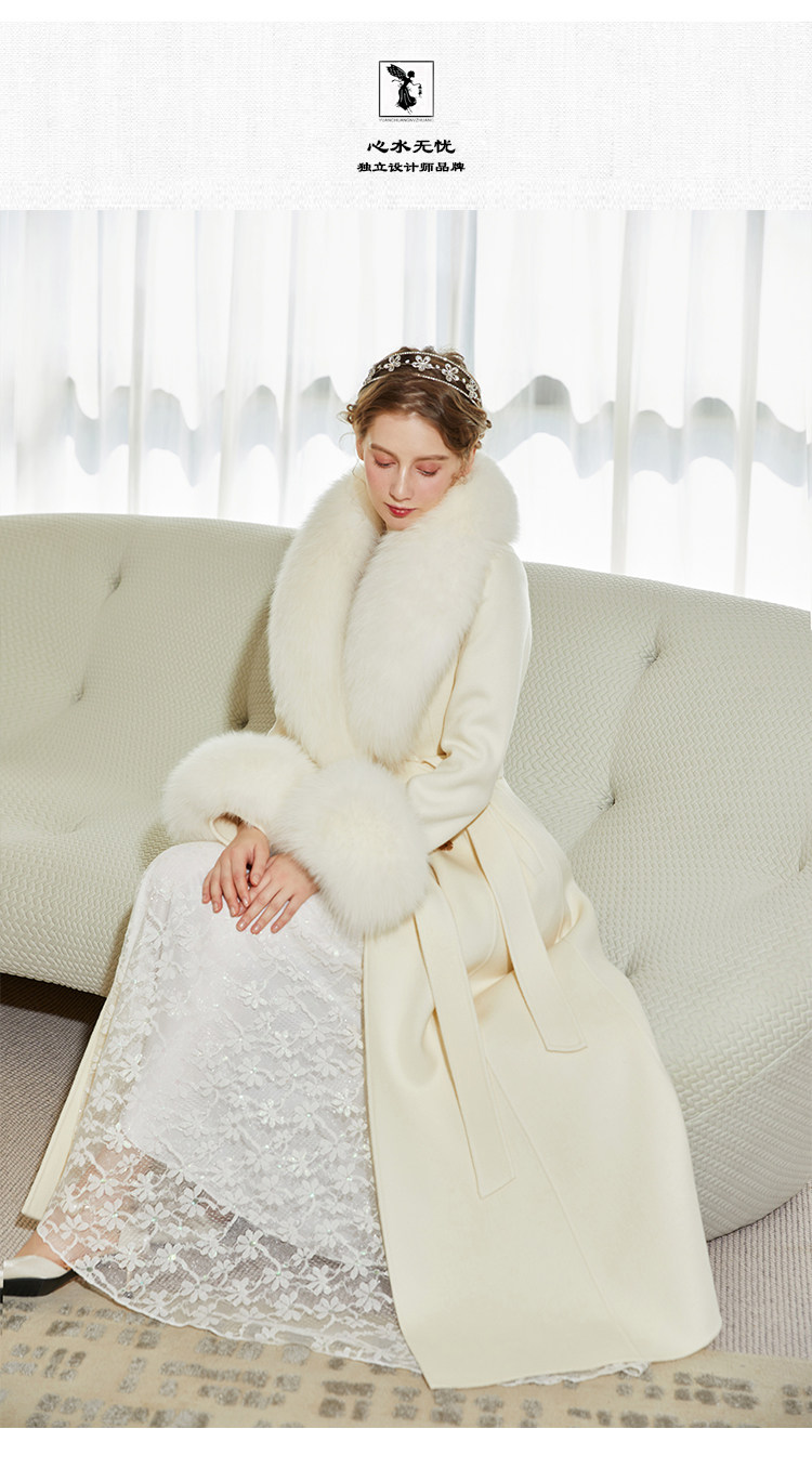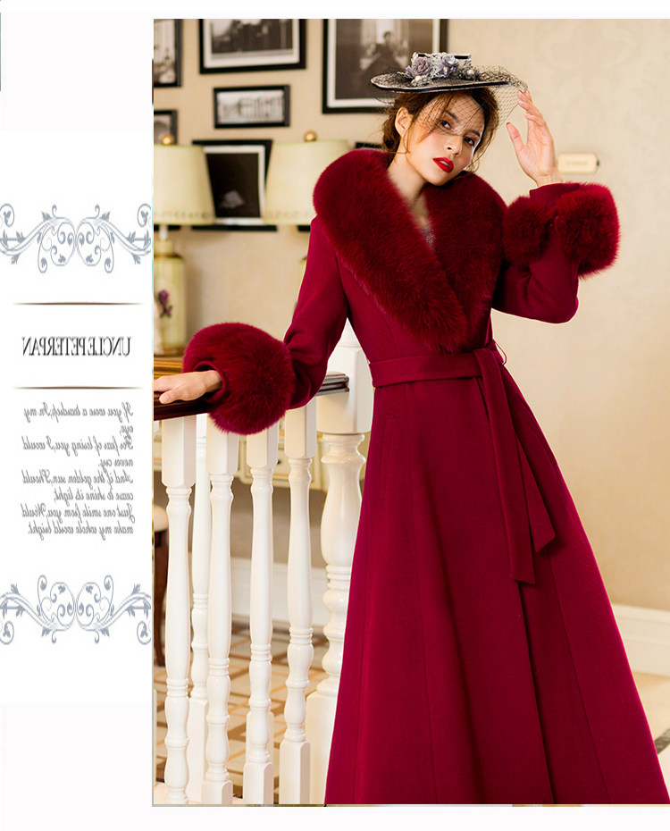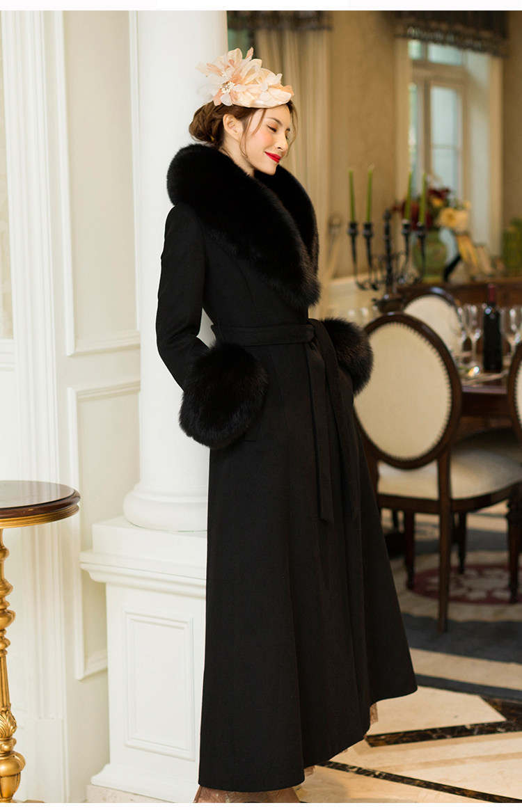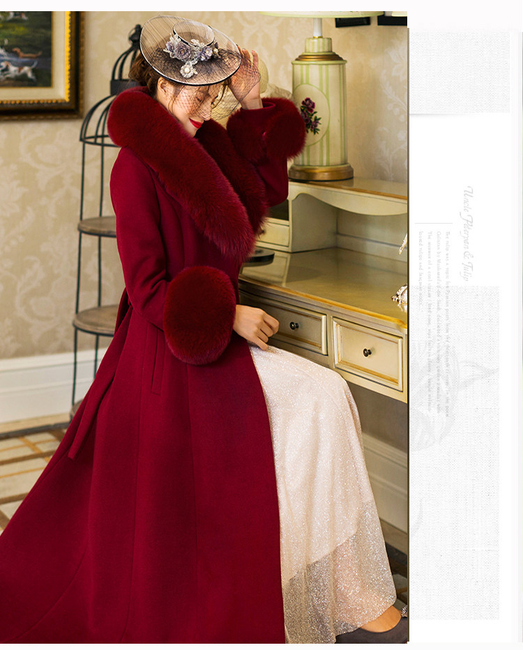 화이트 오스트레일리아 두꺼운 울 롱 코트 슬림핏 양면 캐시미어 가죽 모직 여우 울 칼라 여성용 롱 코트
