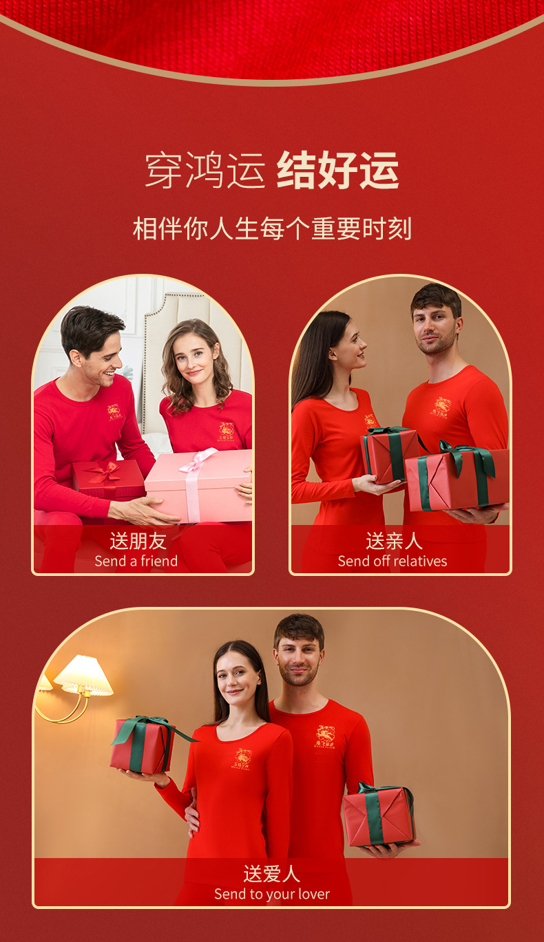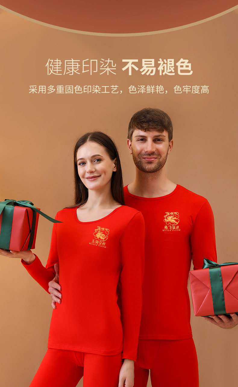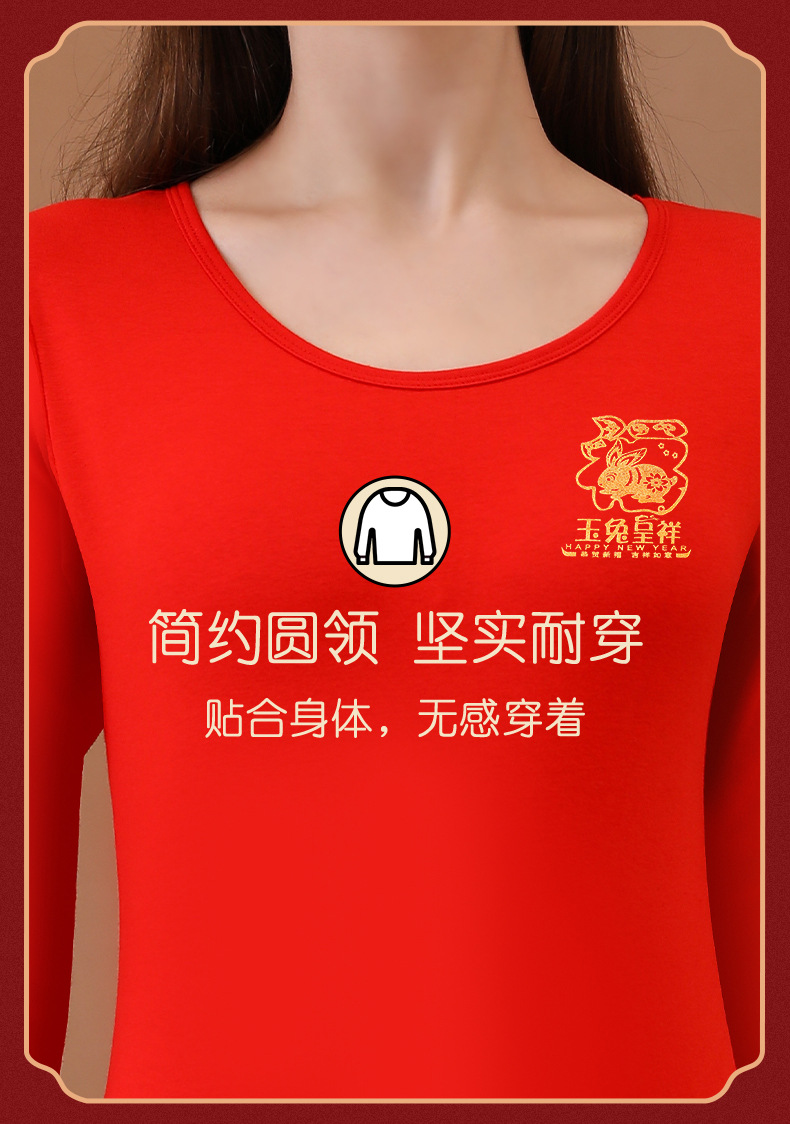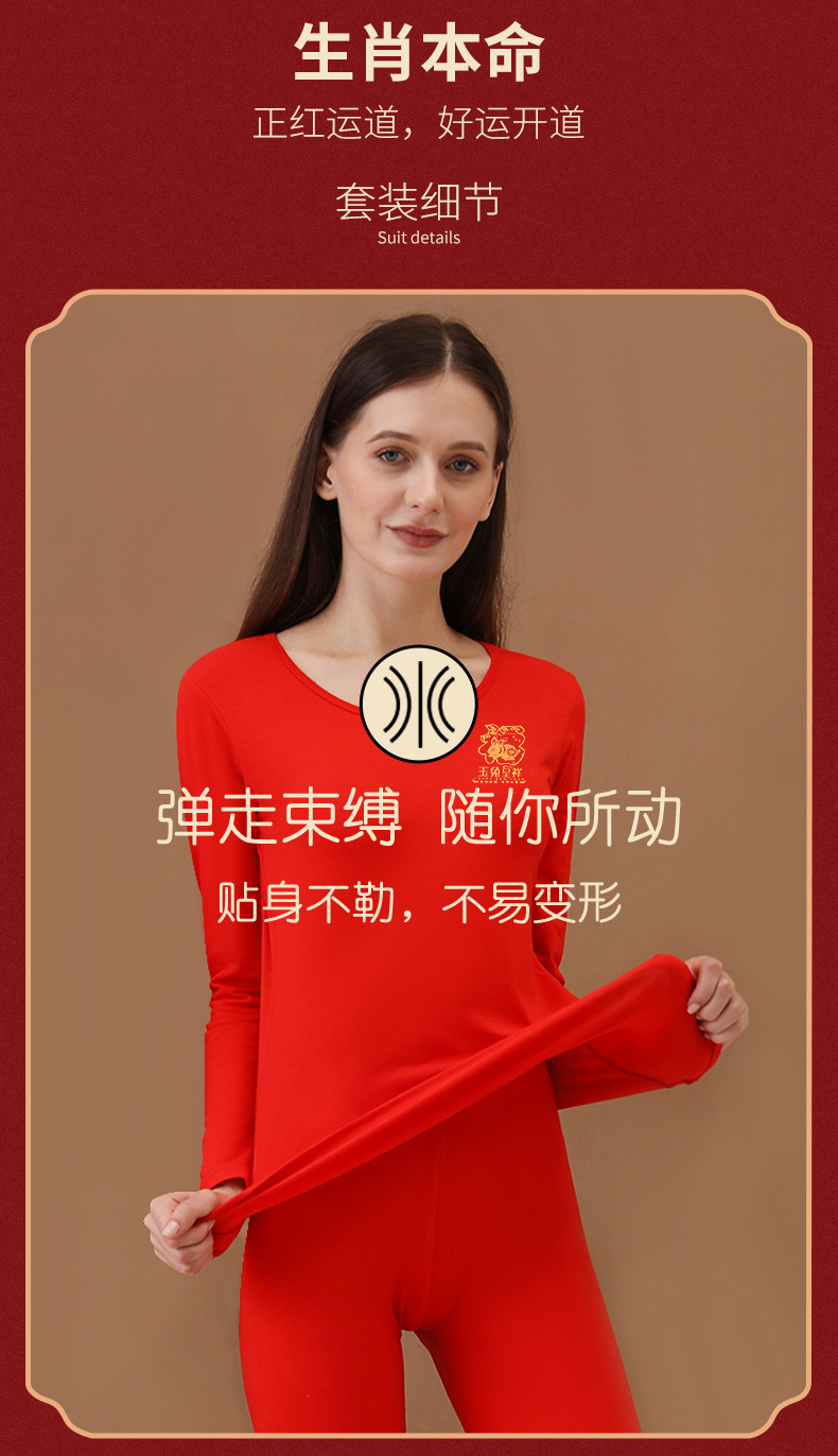 Longsha Bermingnian 열 속옷 여자와 남자의 순수한 면 토끼 년 빨간 결혼 선물 기모 가을 옷 긴 존스 세트