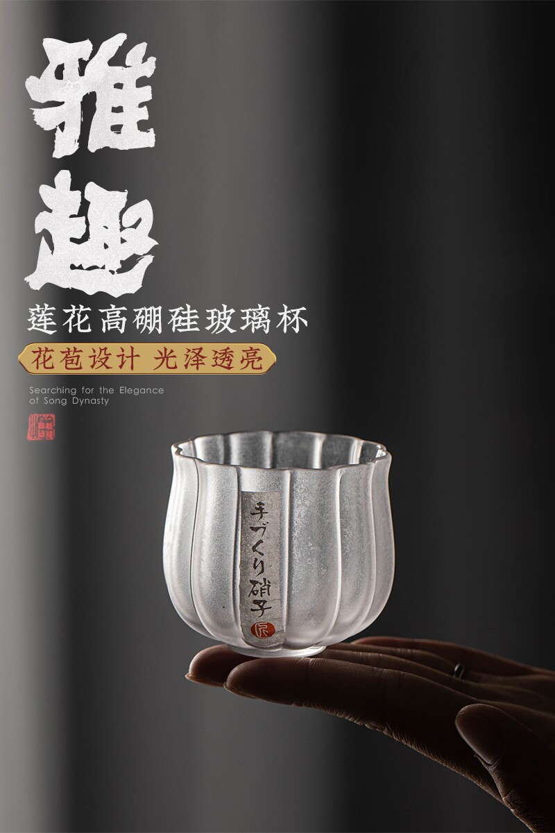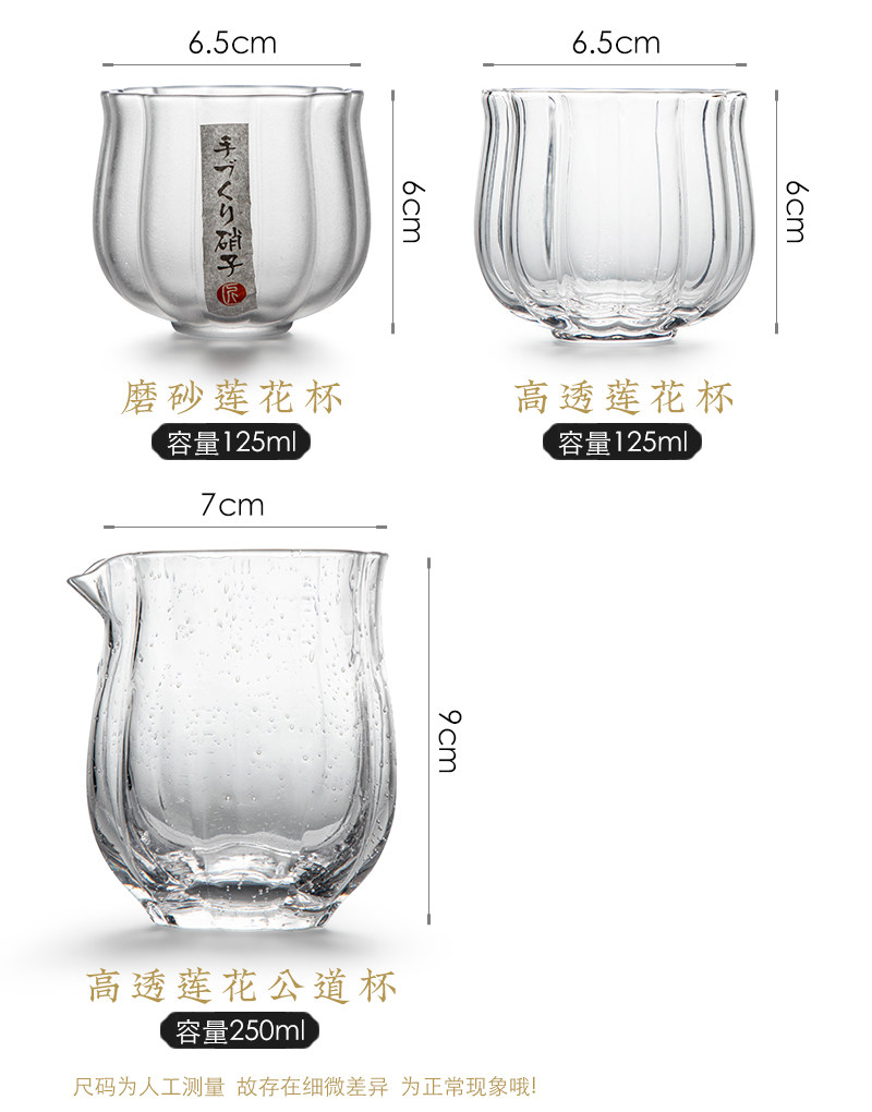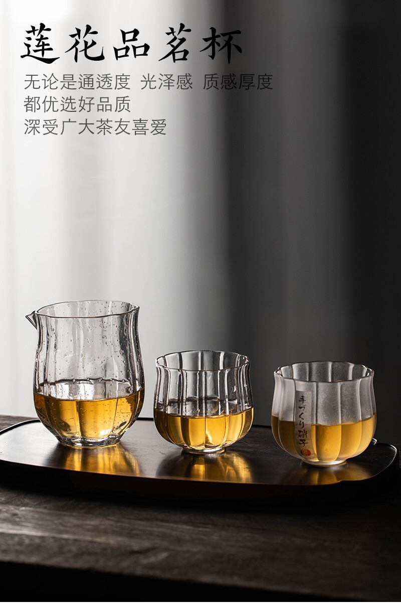 유리 마스터 컵 차 시음 컵 연꽃 내열성 수제 일본 찻잔 찻잔 쿵푸 차 세트 여성 개인 차 그릇
