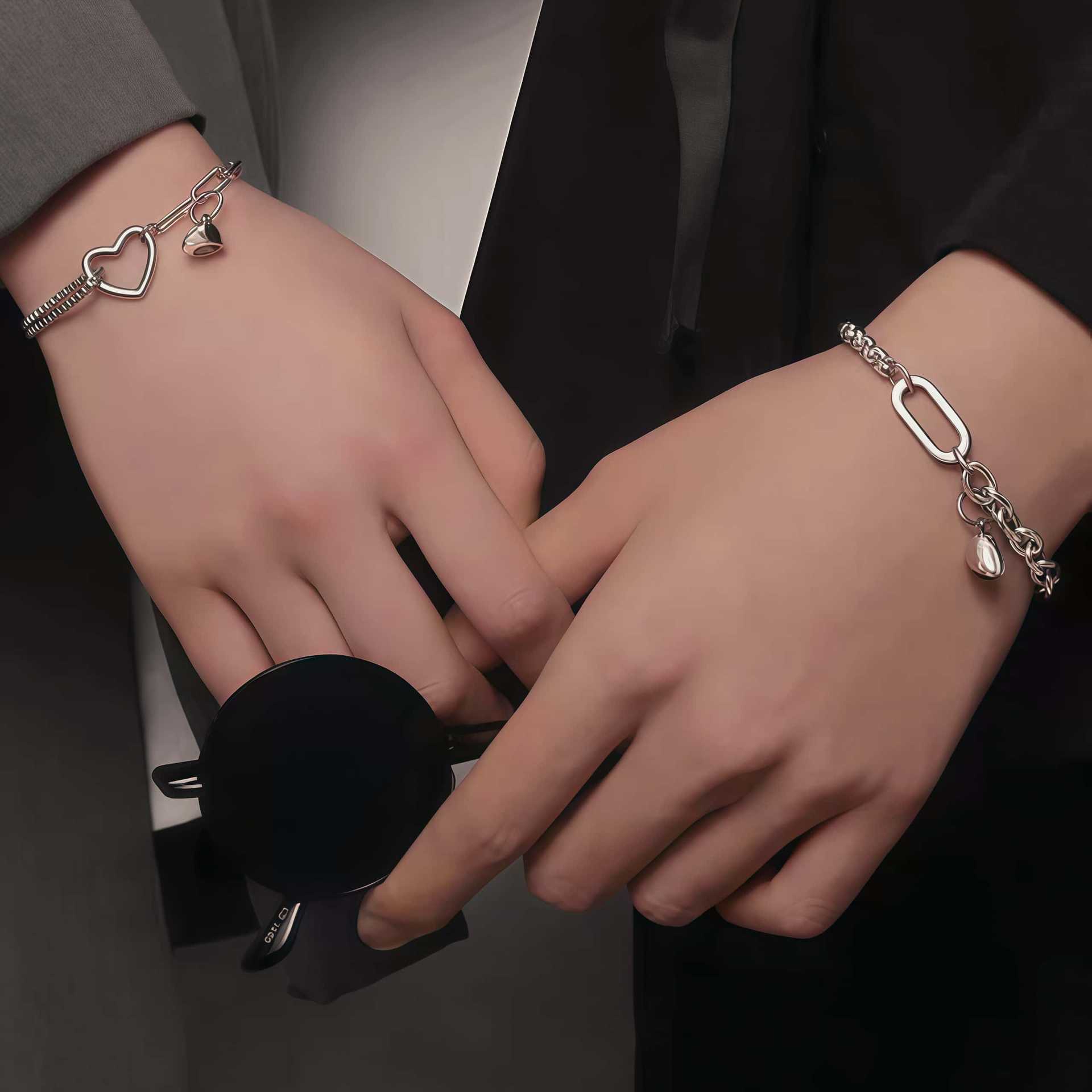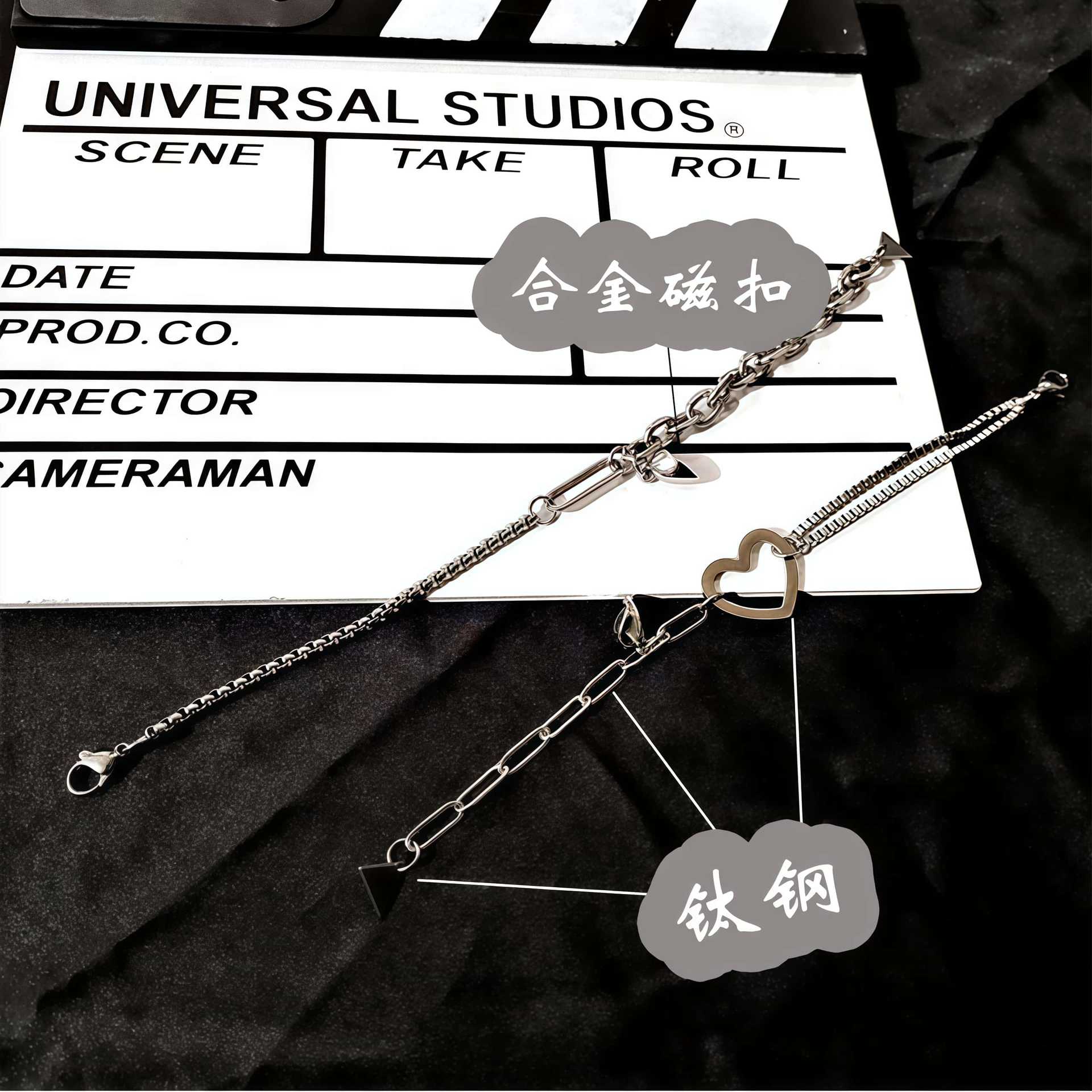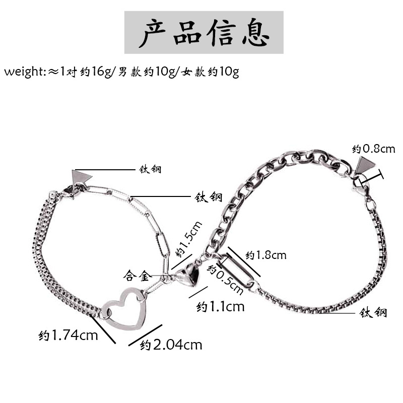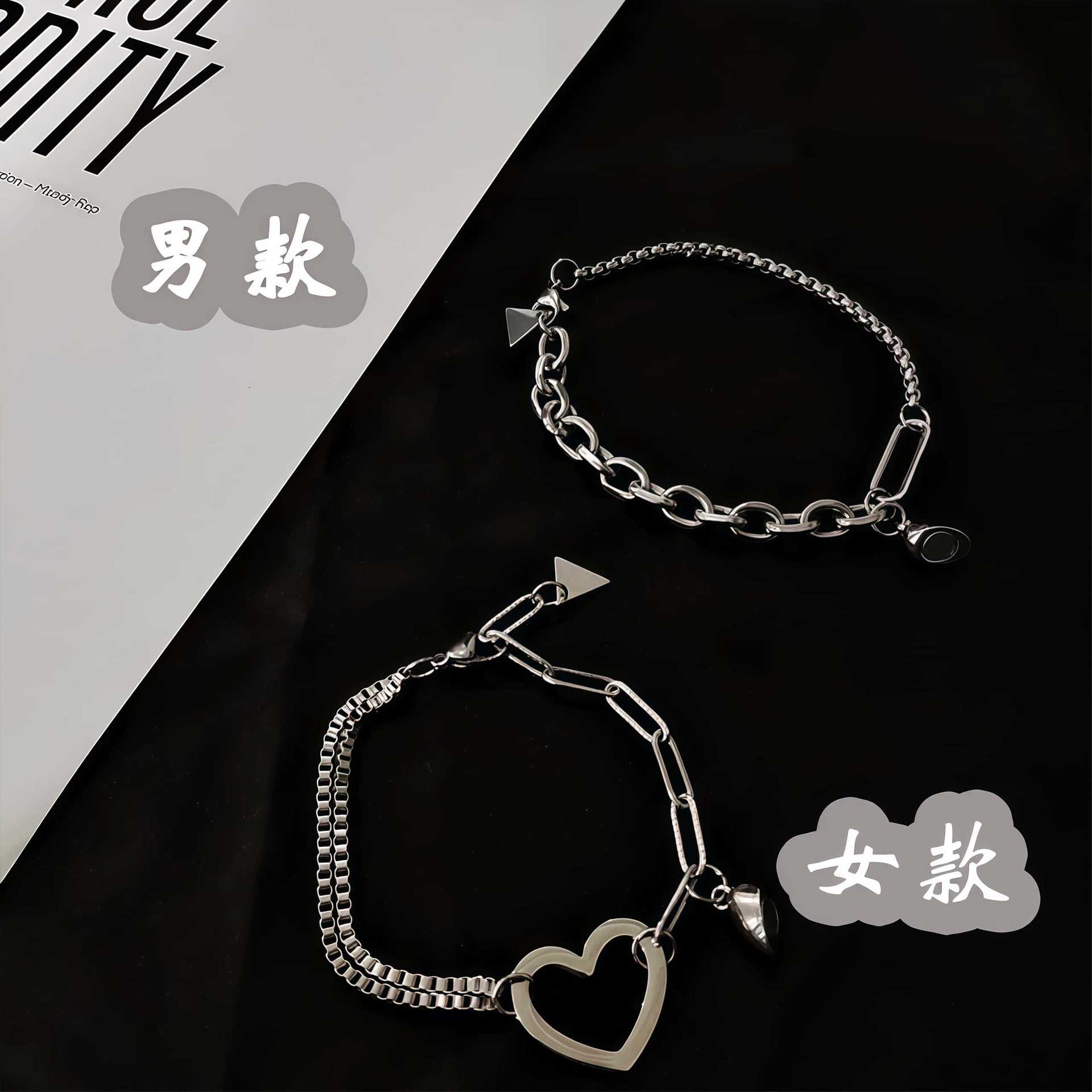 钛钢相吸情侣手链磁铁高级设计感小众设计爱心吸铁手环