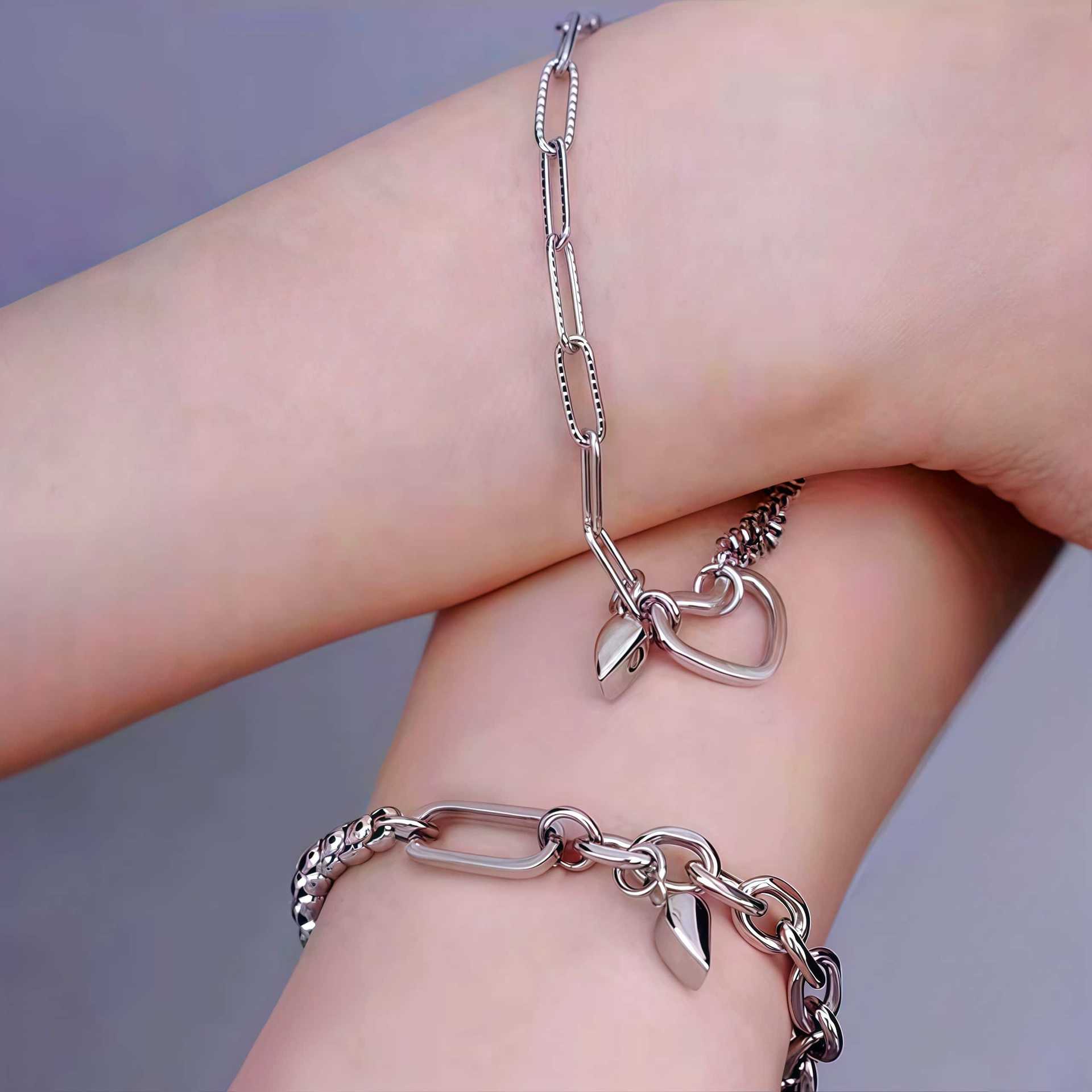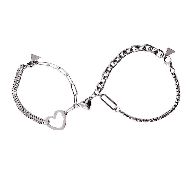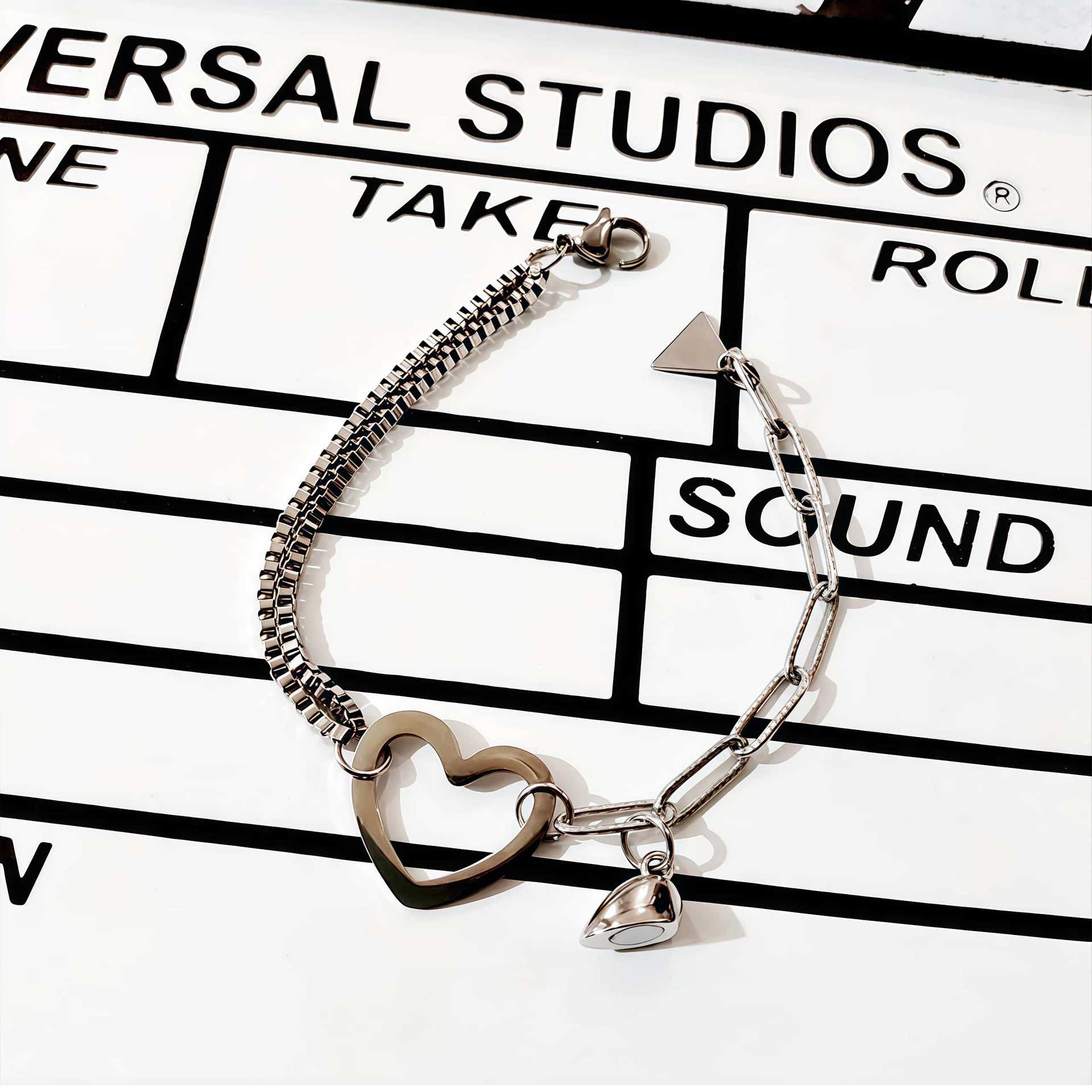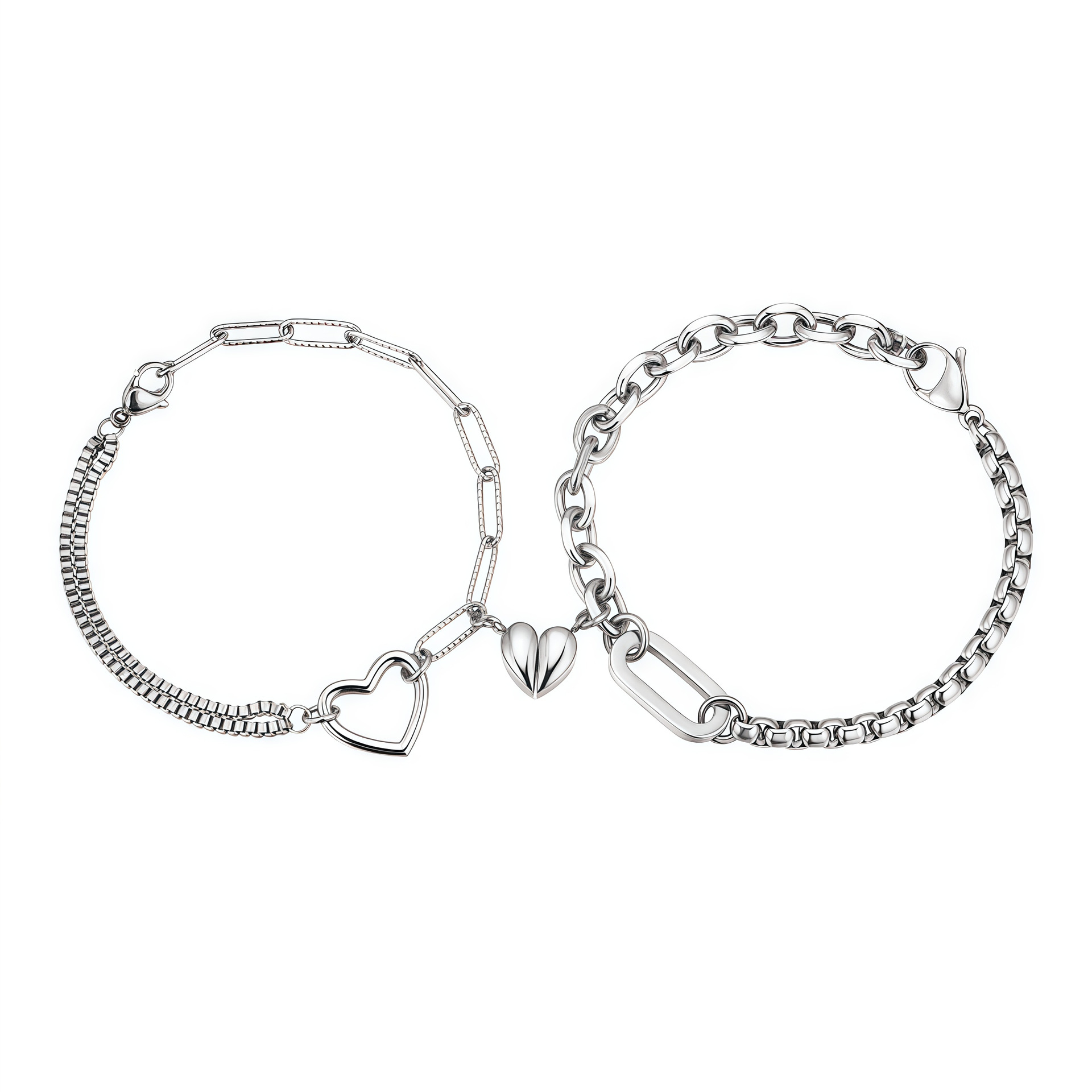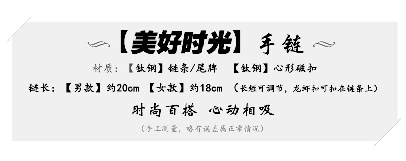爱心相吸情侣手链一对情侣款磁铁叠戴钛钢手饰不生锈