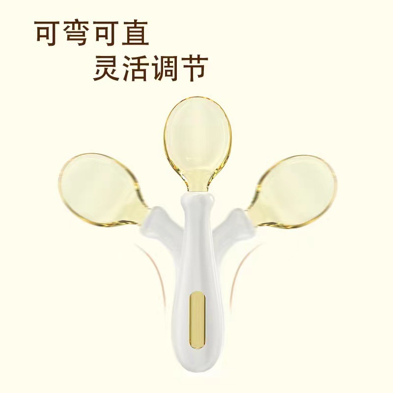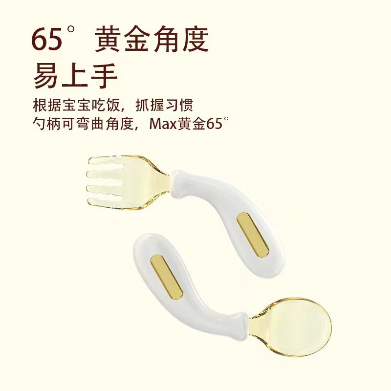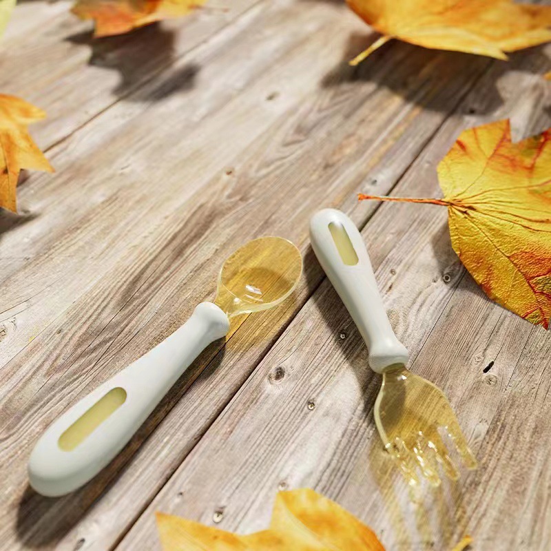 아기 숟가락 학습 훈련 구부릴 수있는 짧은 손잡이 포크 스푼 아기 보완 숟가락자가 급식 식사 어린이 식기