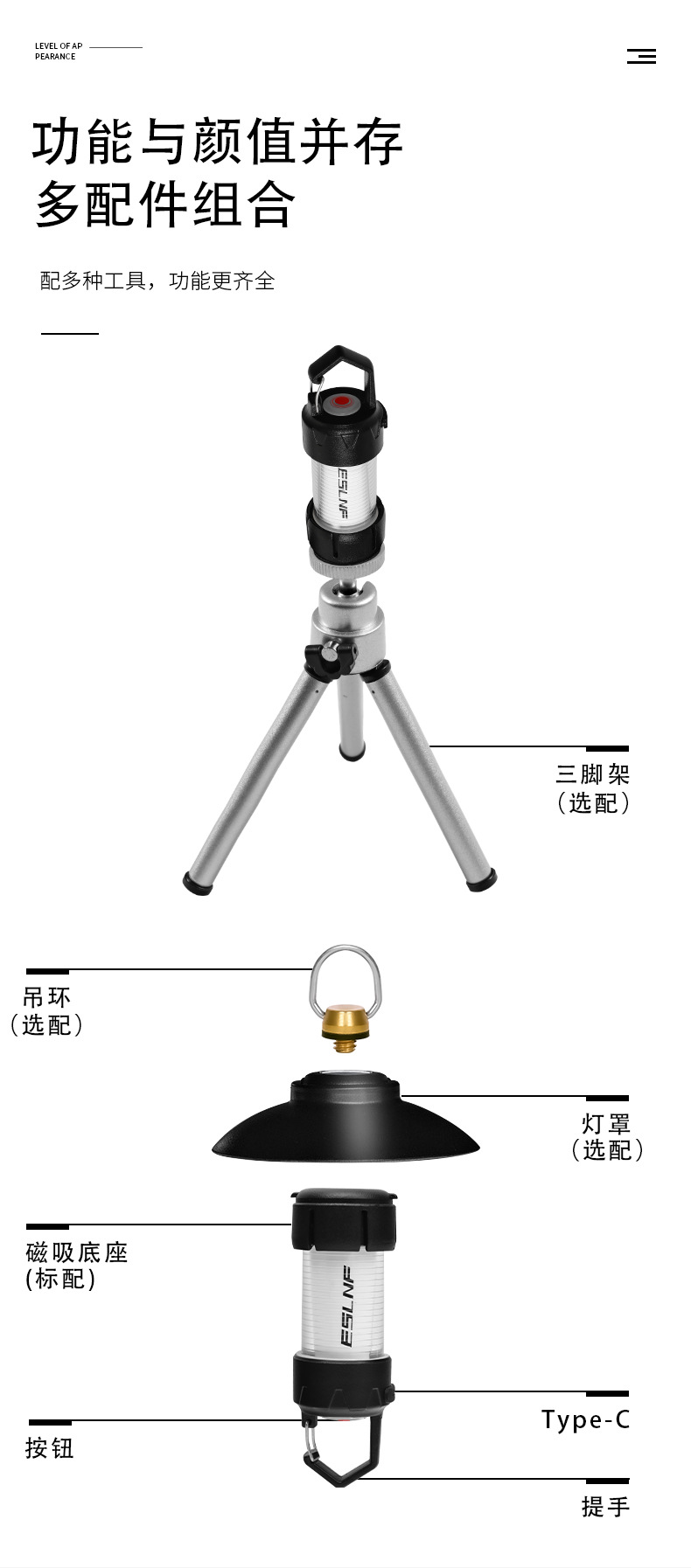 캠핑램프 야외 조명 초장거리 지구력 분위기 램프 다기능 손전등 텐트 램프 충전 캠프 램프 캠핑 램프