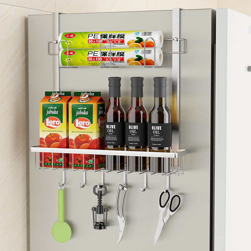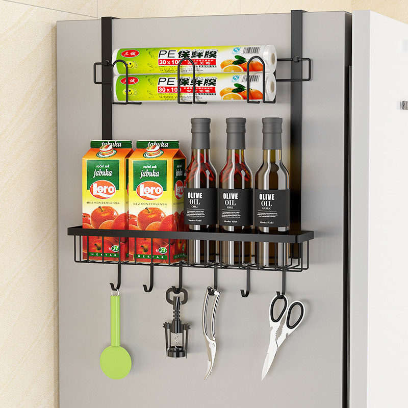 주방 수납 랙 블랙 냉장고 측면 장착 전자 레인지 측면 장착 다목적 신선 보관 백 펀치 프리 조미료 보관 랙