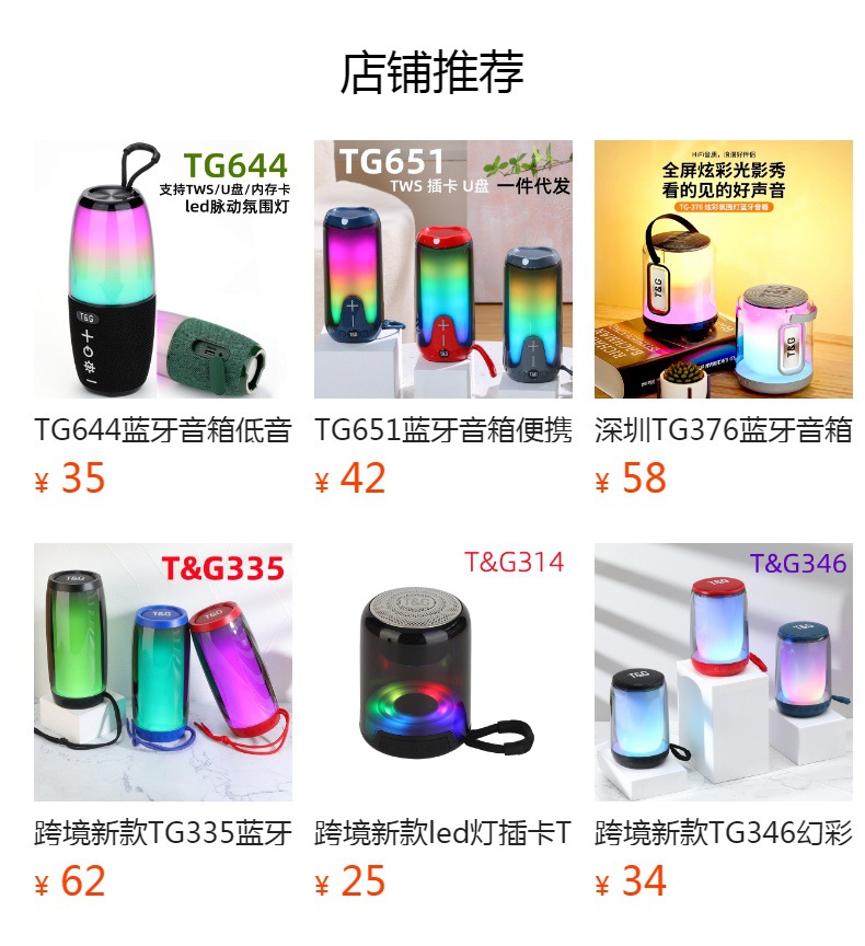 크로스 보더 새로운 TG363 블루투스 스피커 휴대용 카드 소형 스테레오 tws 시리즈 LED 조명 블루투스 스테레오