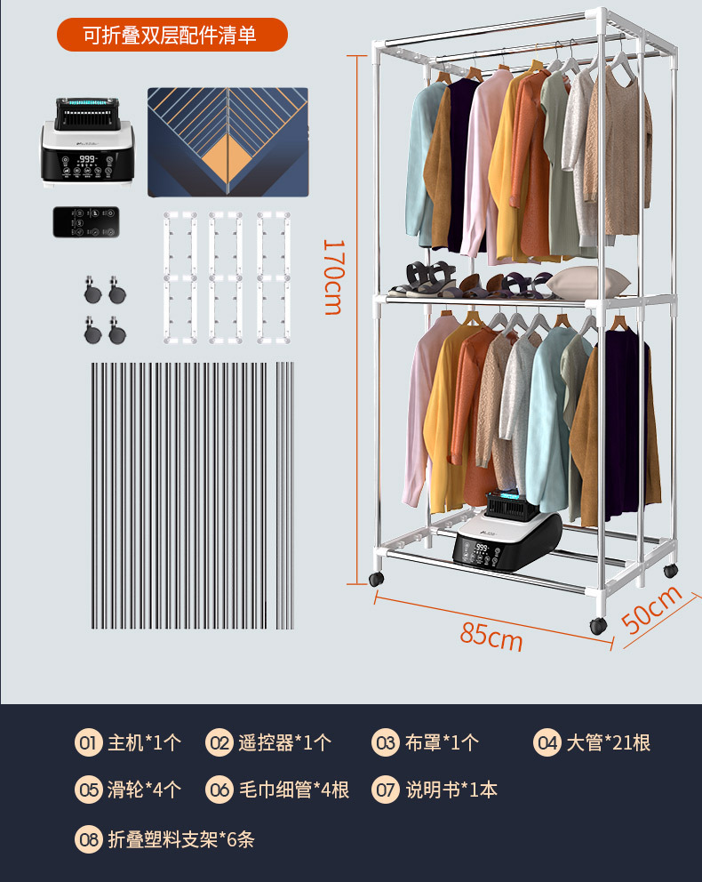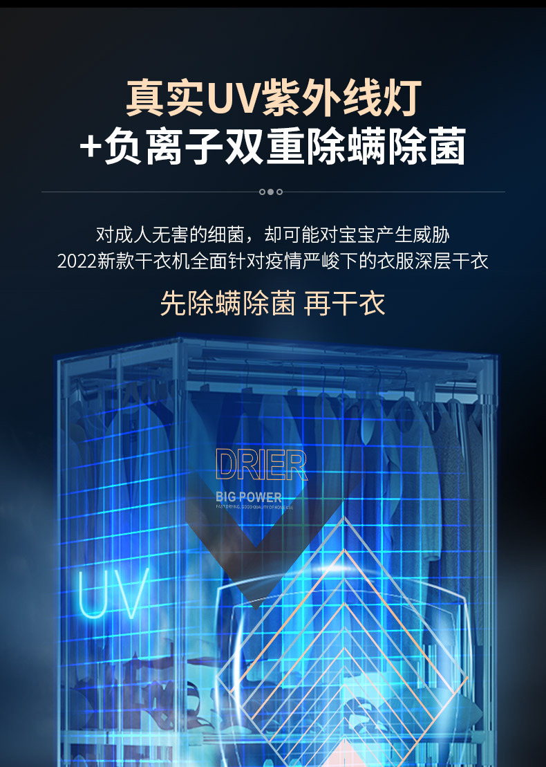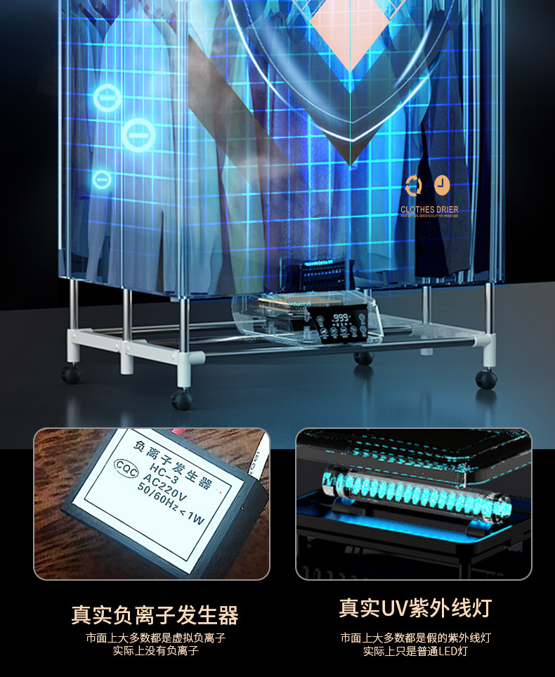 건조기 가정용 소형 접히는 고출력 자외선 진드기 제거 및 박테리아 제거 아기 에너지 절약 및 절전 의류 건조기 옷장