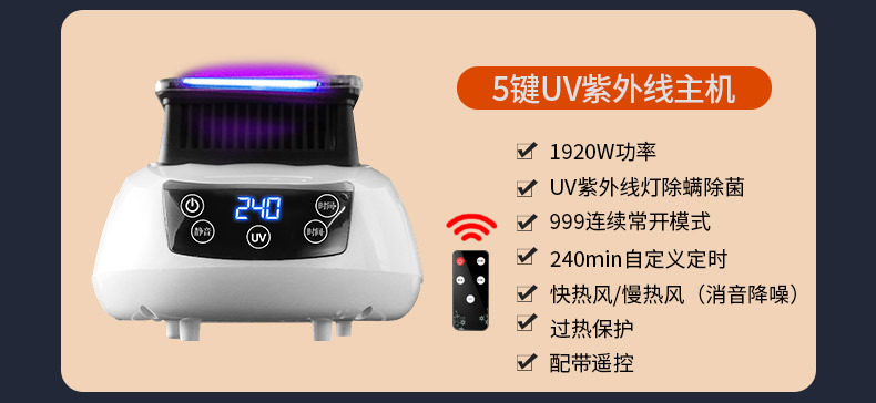 접이식 1920W 소형 더블 레이어 [5버튼 음이온 + 자외선 진드기 제거 및 살균] 블루