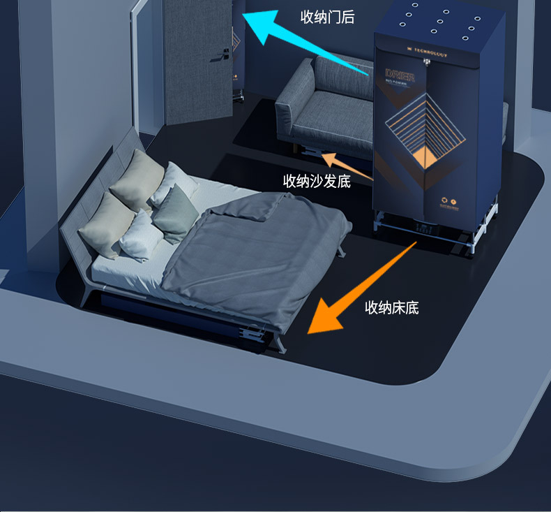 접이식 1920W 소형 더블 레이어 [7키 음이온 + 자외선 진드기 제거 및 살균] 블루