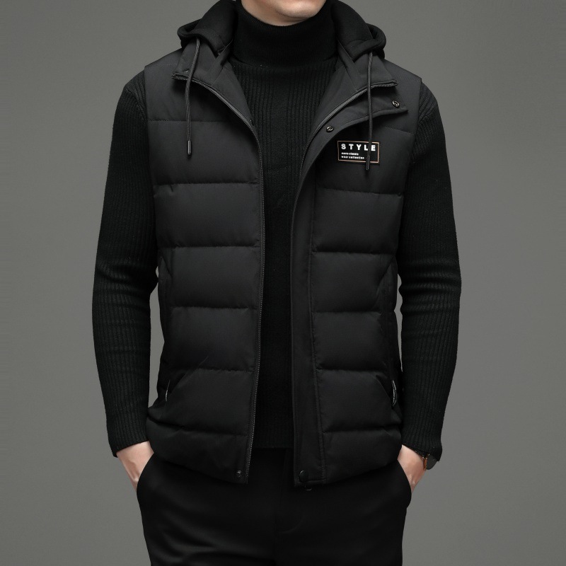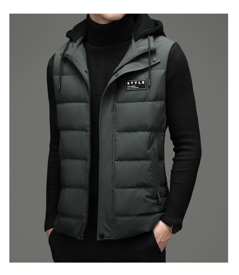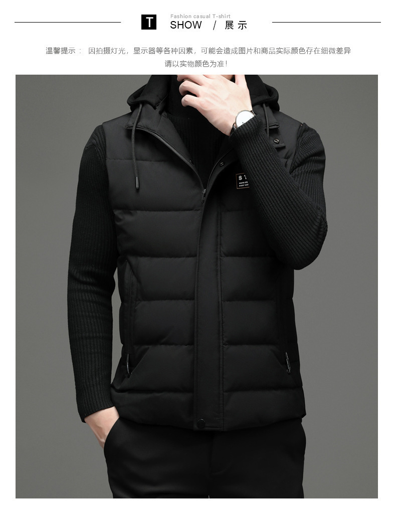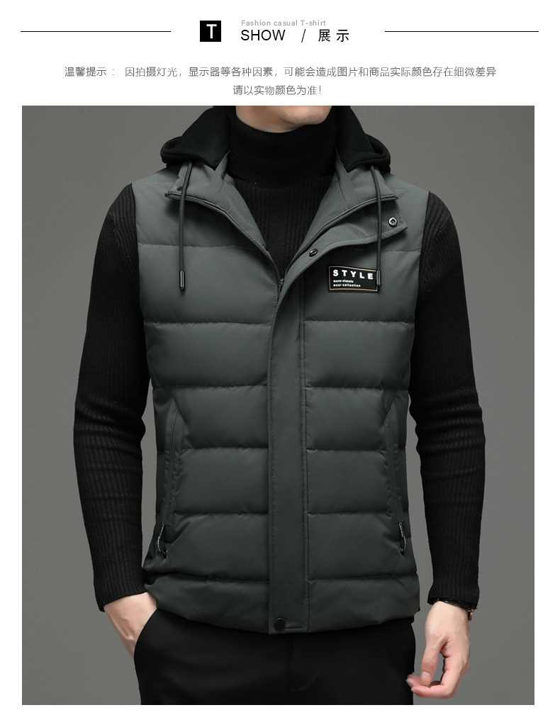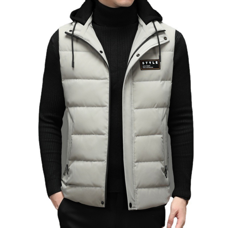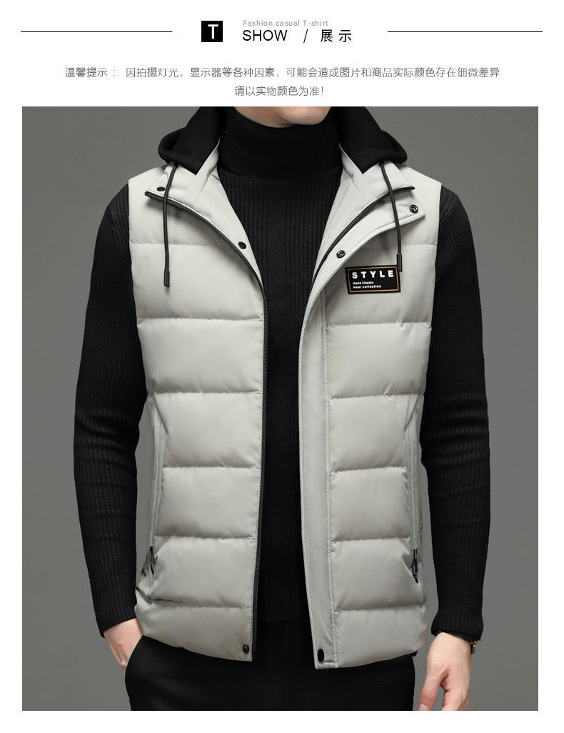 가을과 겨울 다운 코튼 조끼 남자의 기모 두꺼운 후드 언로드 따뜻한 재킷 조끼 어깨 조끼 플러스 사이즈 와이드