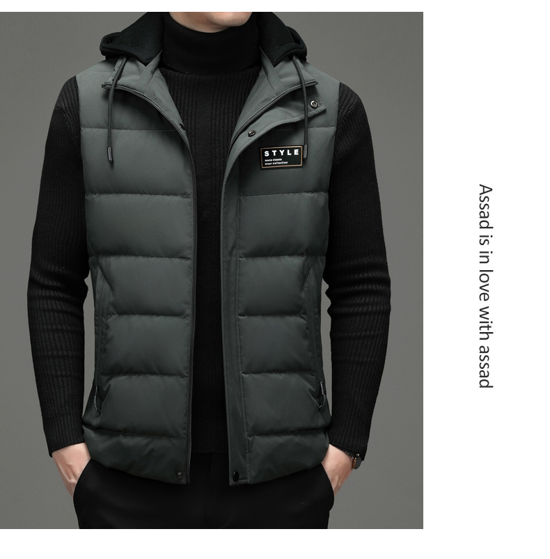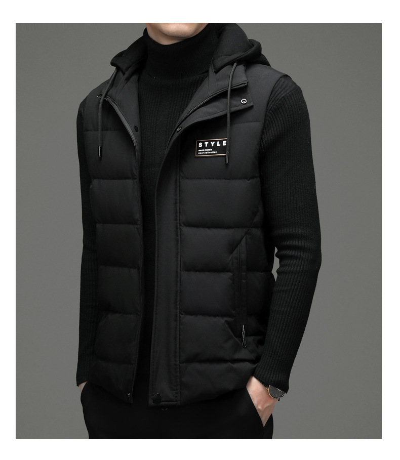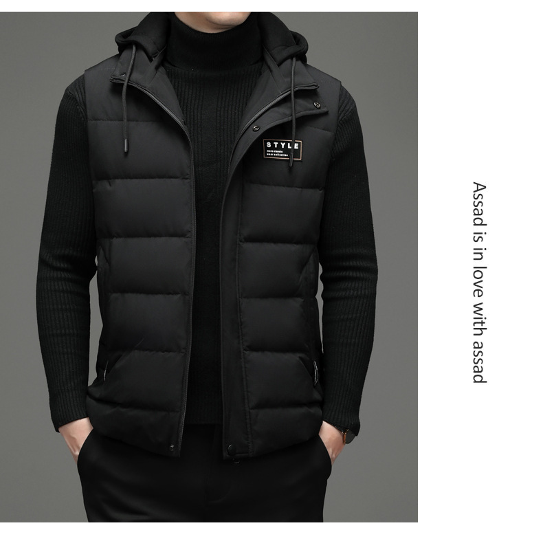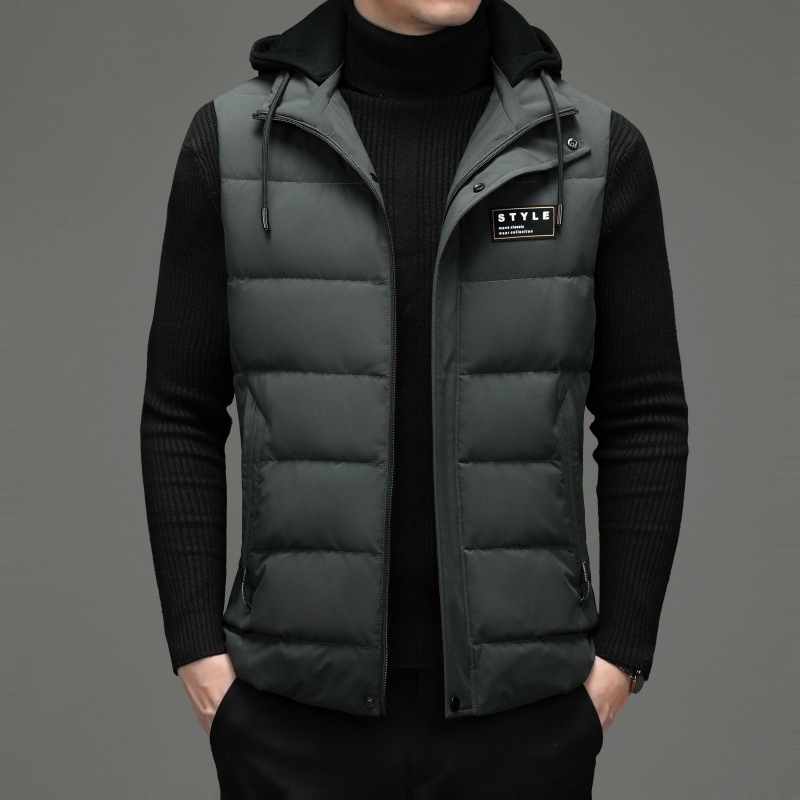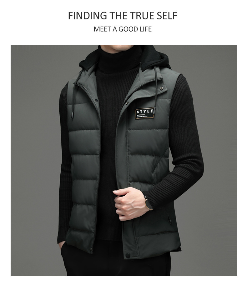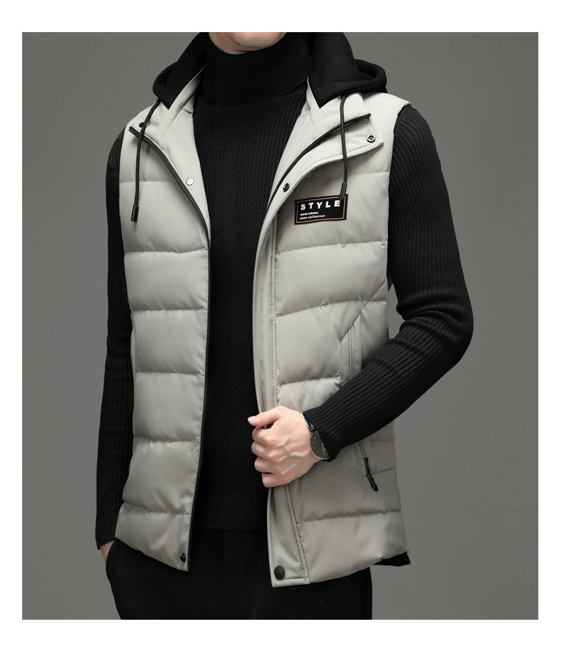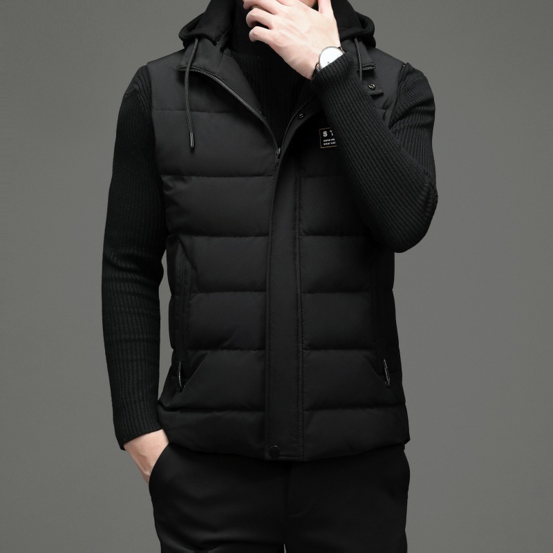 가을과 겨울 다운 코튼 조끼 남자의 기모 두꺼운 후드 언로드 따뜻한 재킷 조끼 어깨 조끼 플러스 사이즈 와이드
