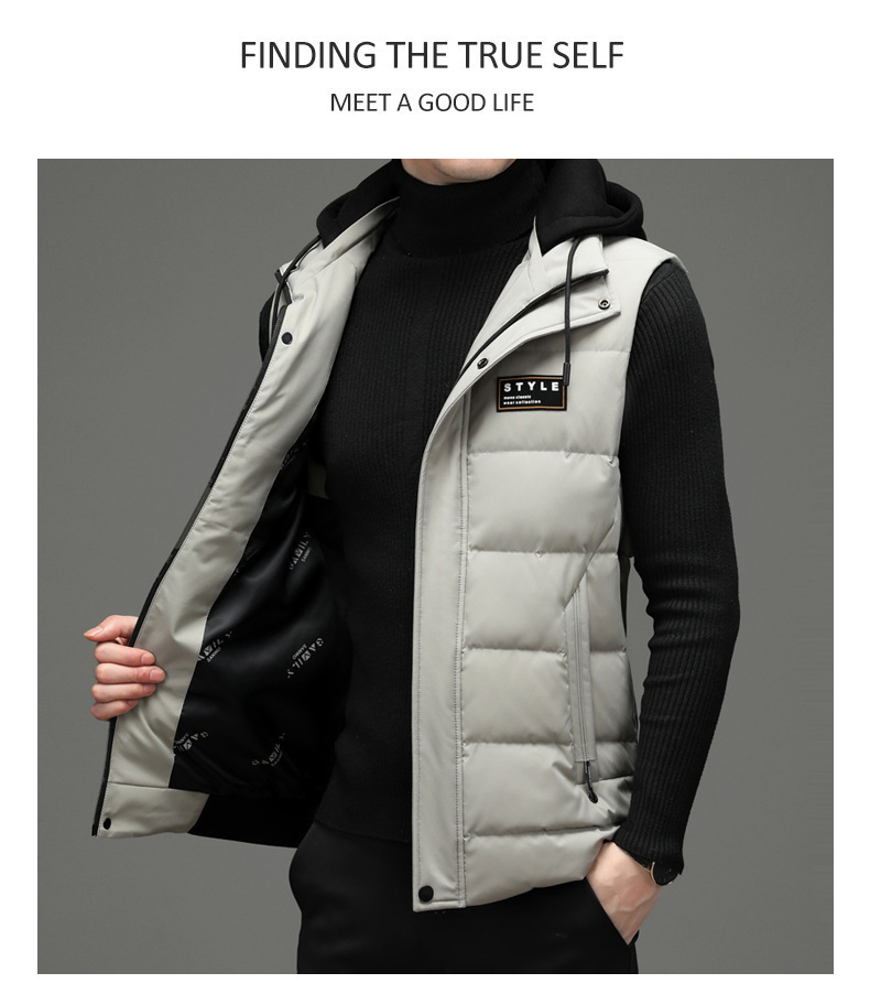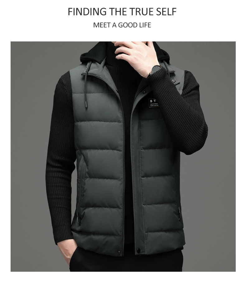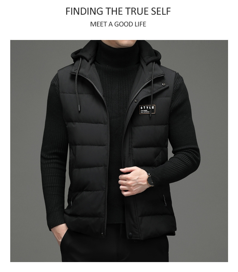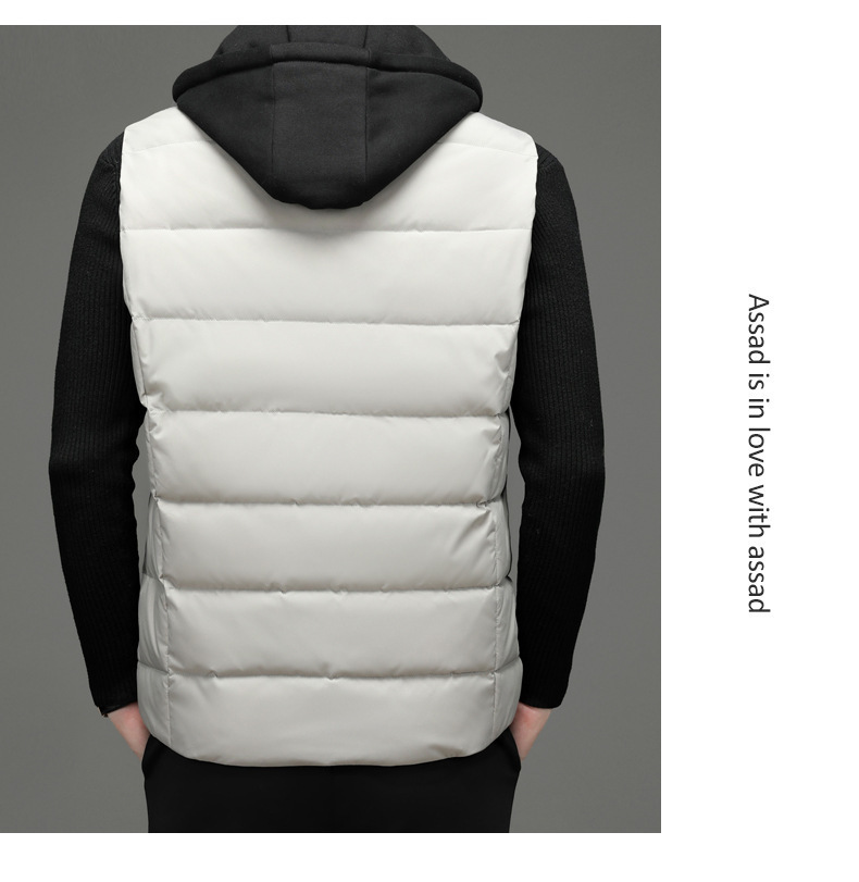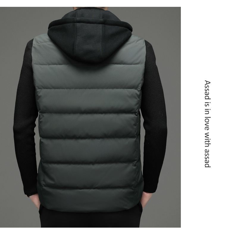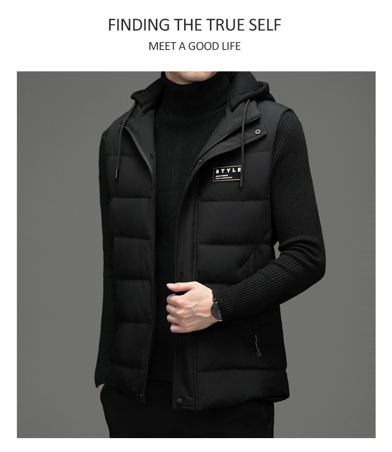 가을과 겨울 다운 코튼 조끼 남자의 기모 두꺼운 후드 언로드 따뜻한 재킷 조끼 어깨 조끼 플러스 사이즈 와이드