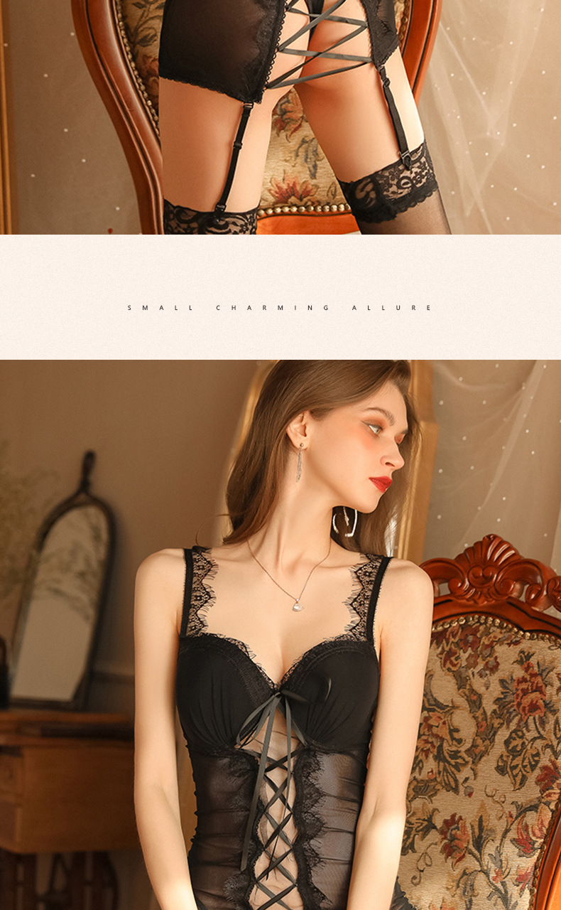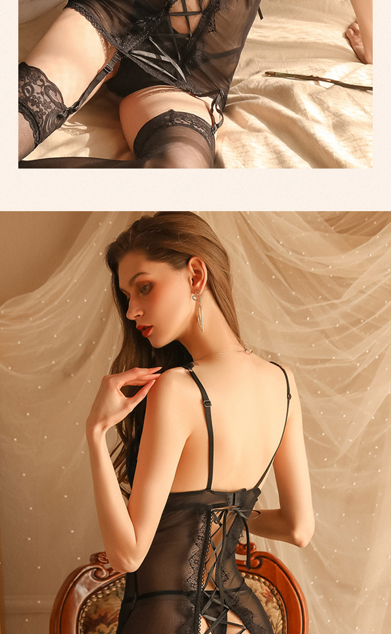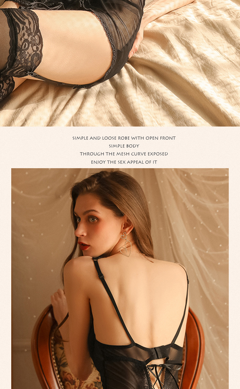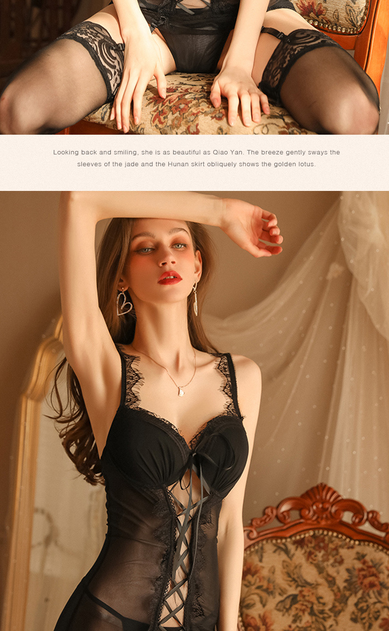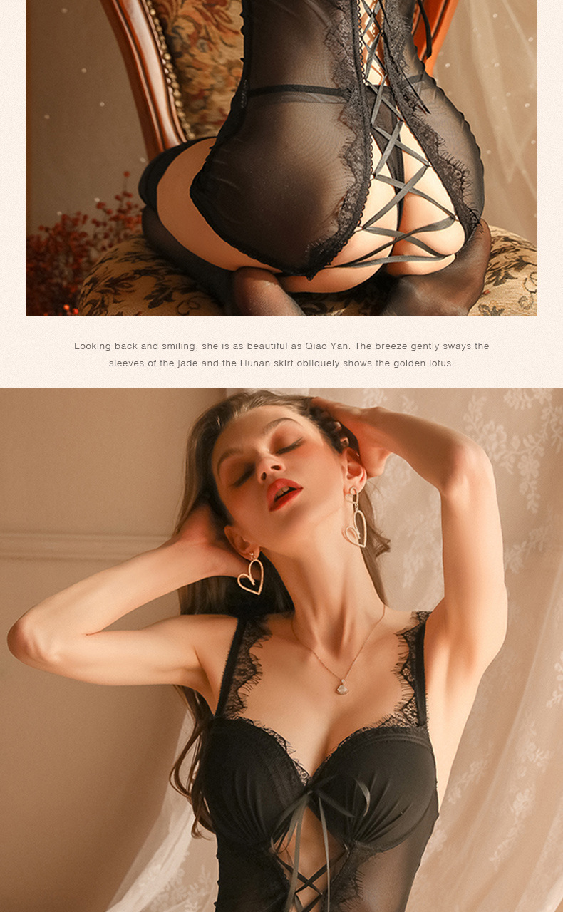 A6230 도매 섹시한 점프 수트 열정 INS 국경 섹시한 속옷 유니폼 유혹 오픈 블랙 실크 잠옷