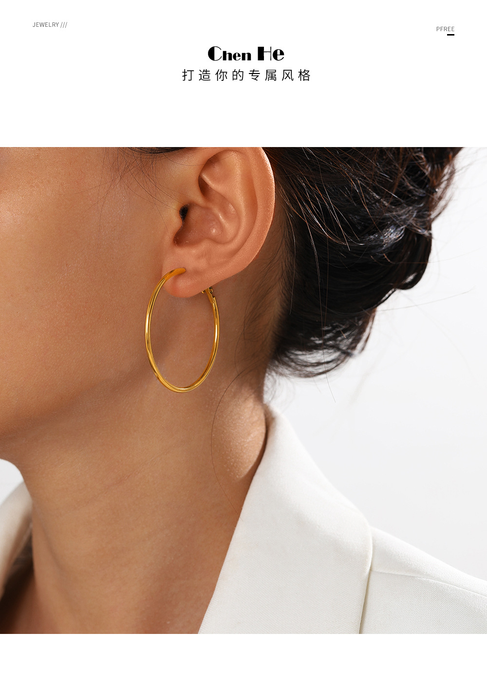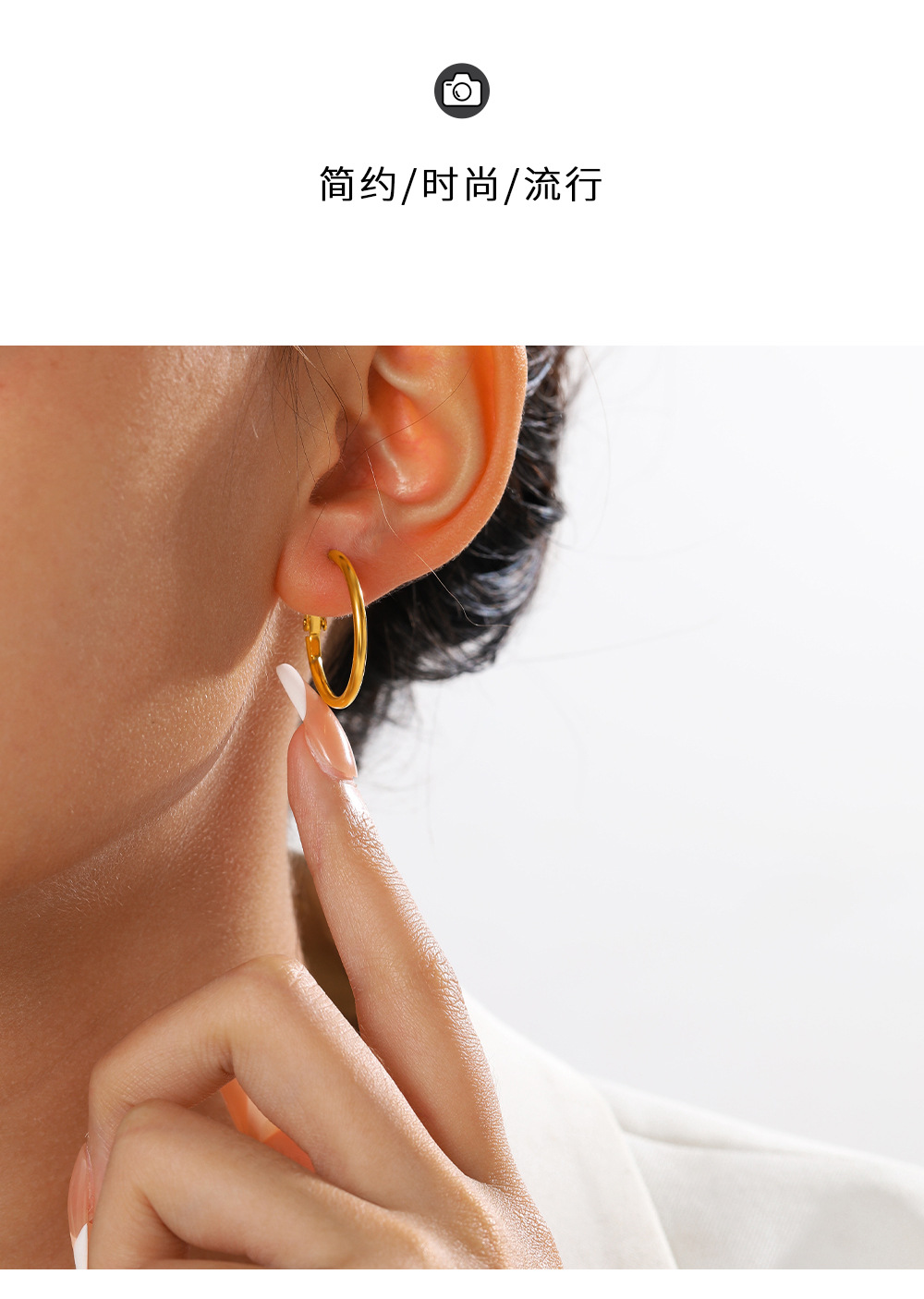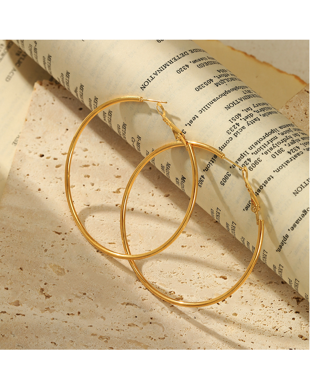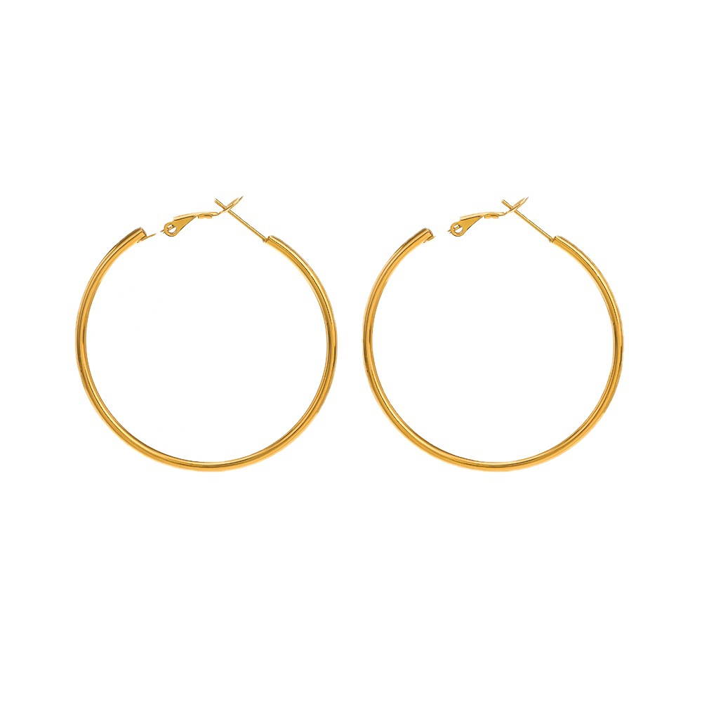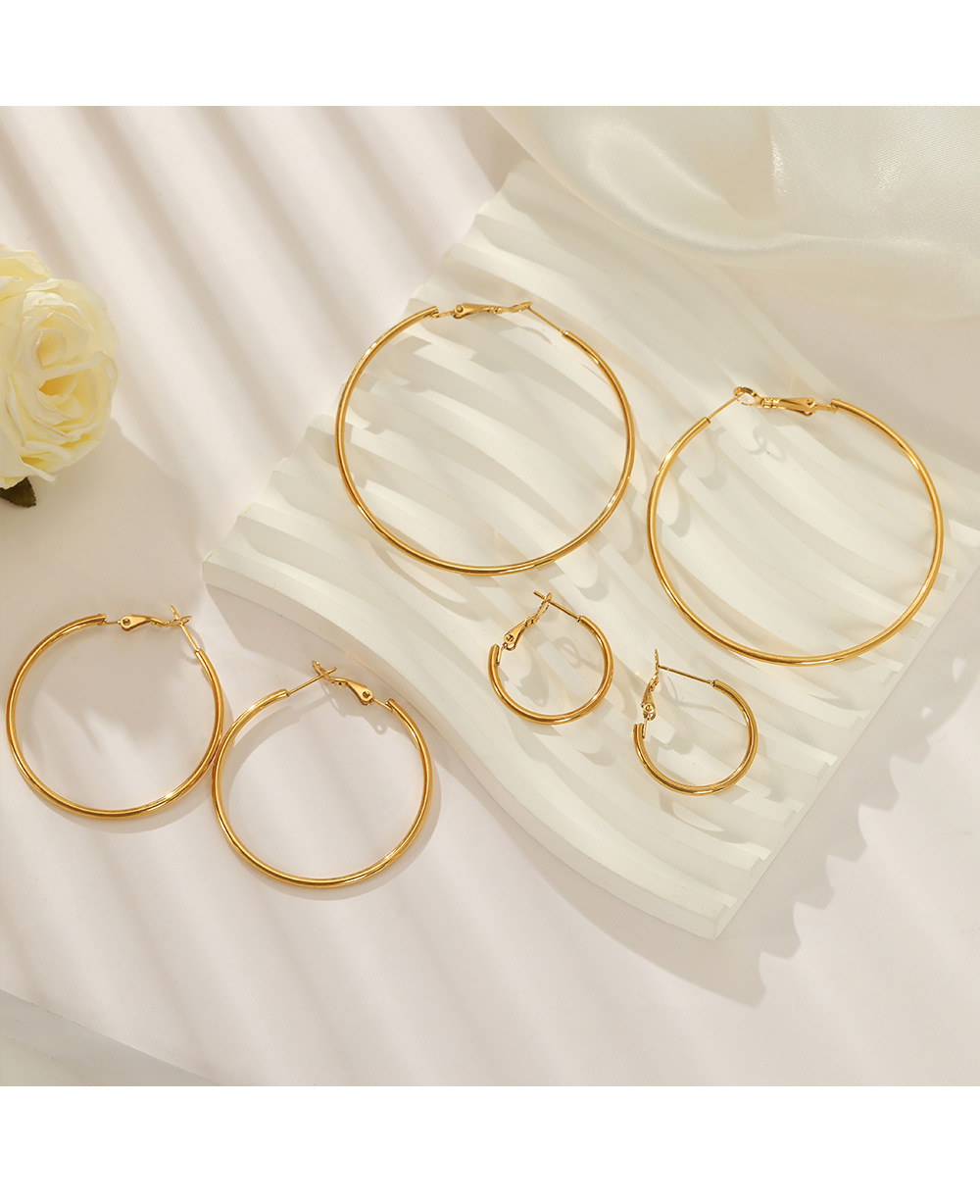 Net Red 심플 패션 30/40/50/60mm 스테인레스 스틸 라운드 귀걸이 세련된 18K 골드 기하학 귀걸이