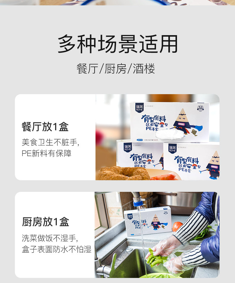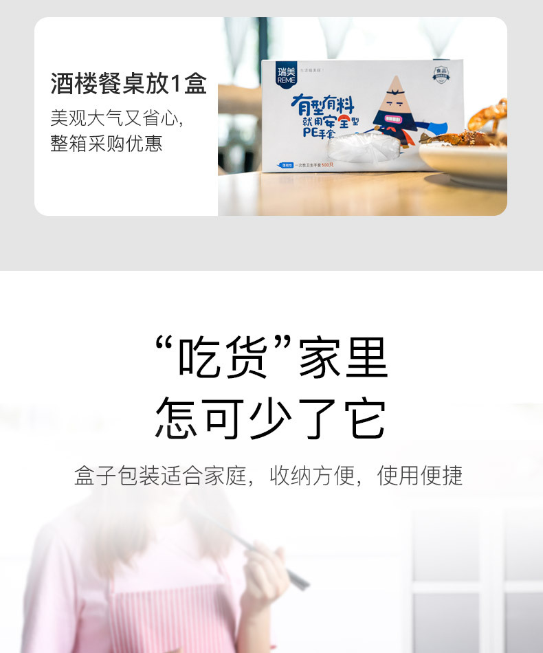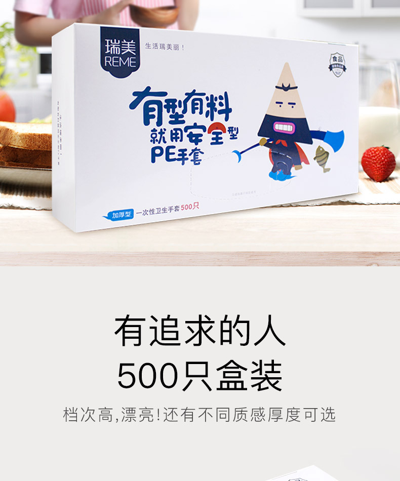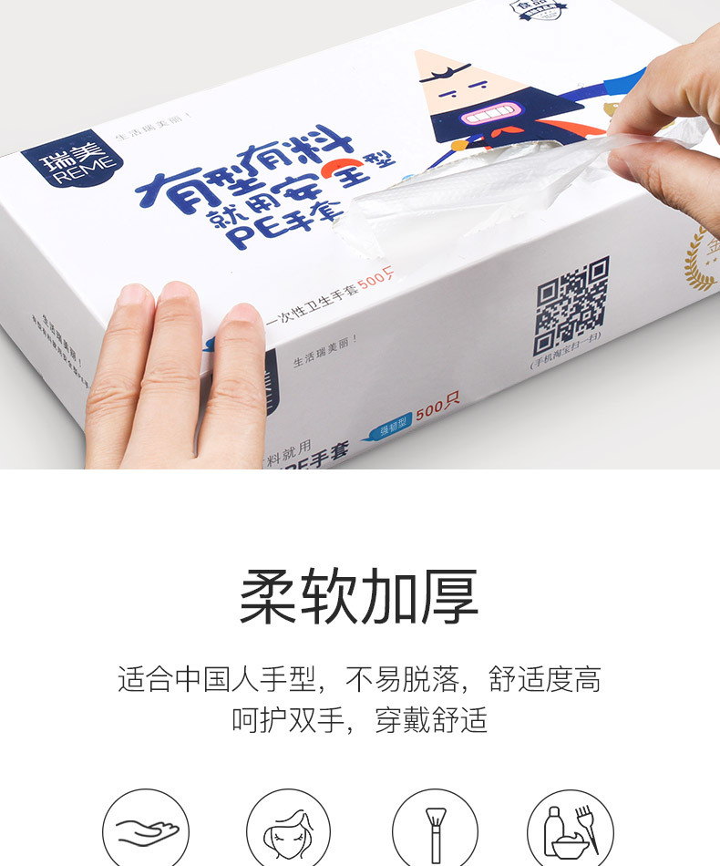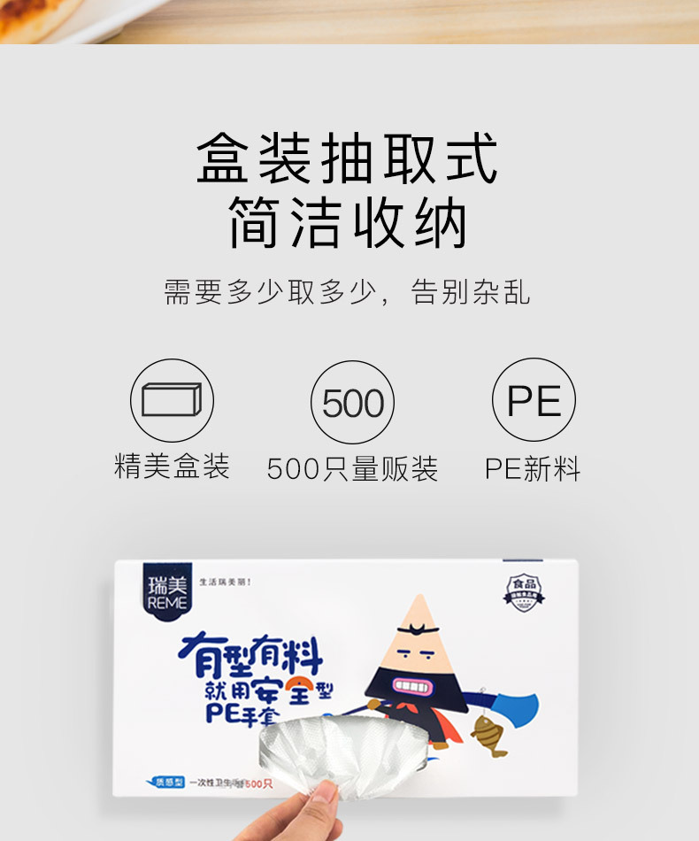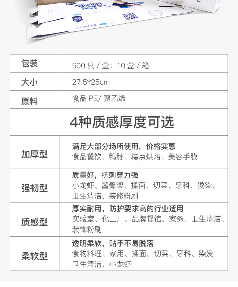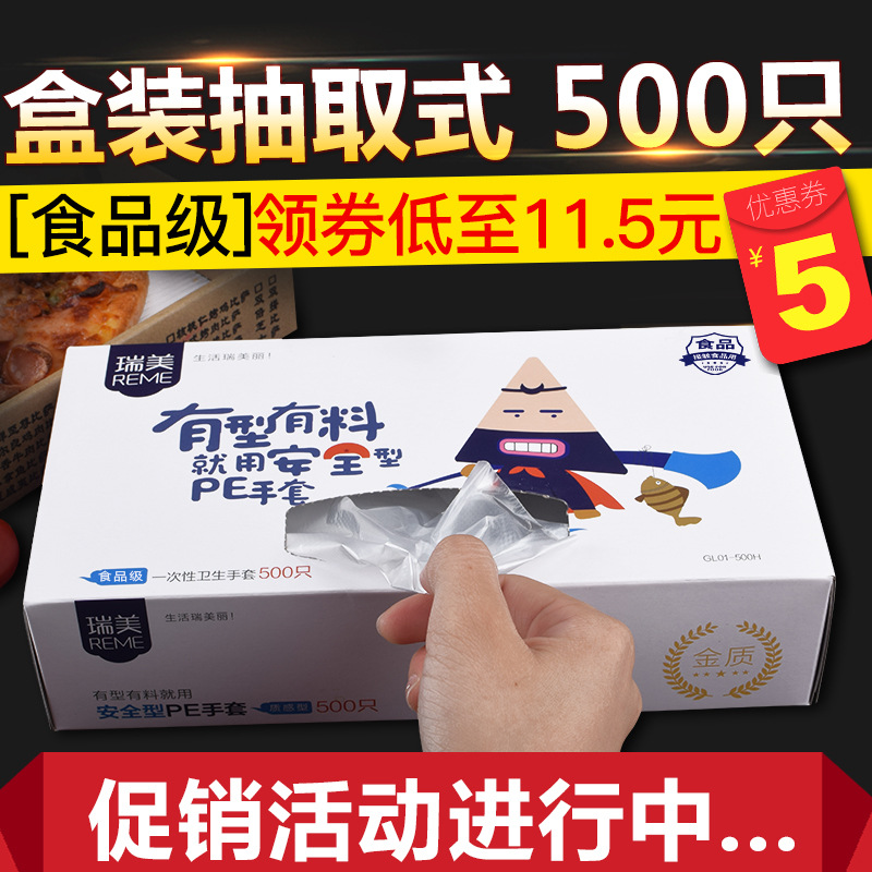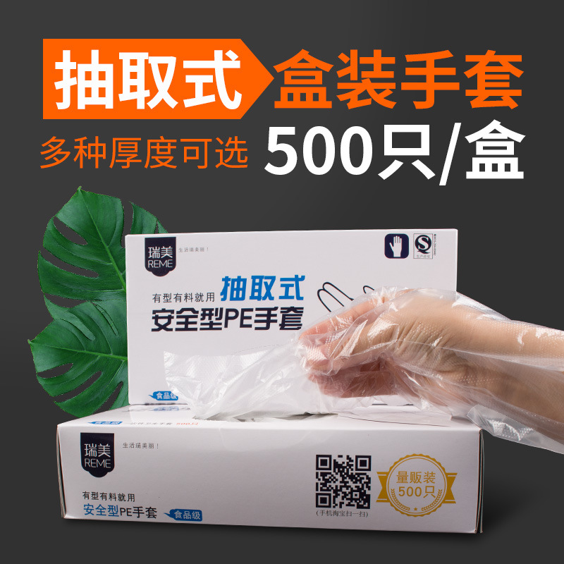 일회용 장갑 박스 500개입, 추출형 보호용 가정용 주방 식품용 두꺼운 장갑, 케이터링 및 미용 도매용