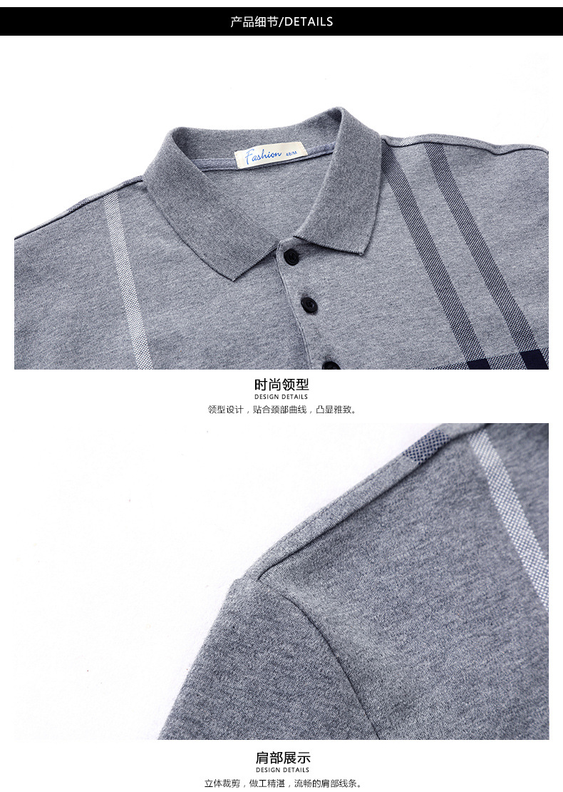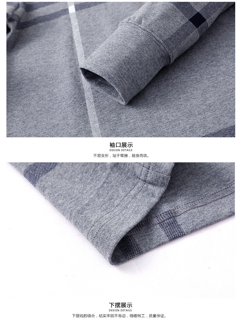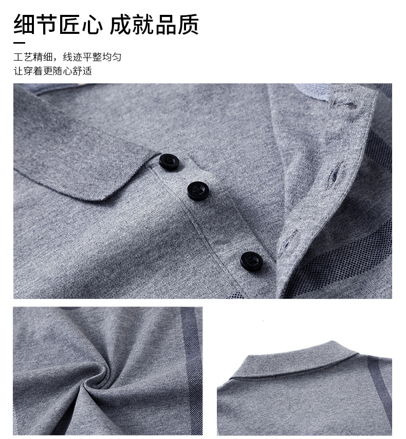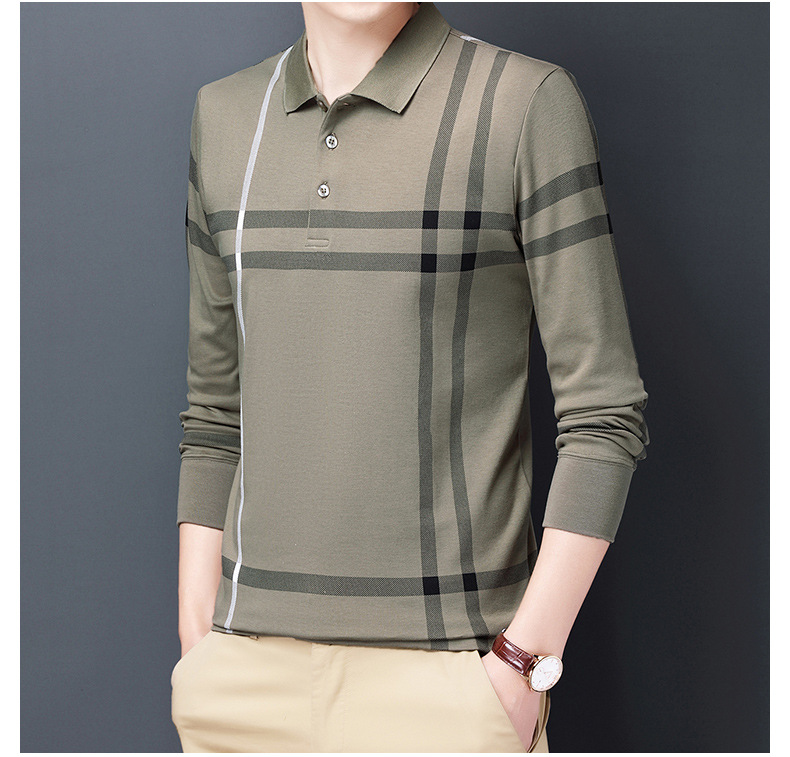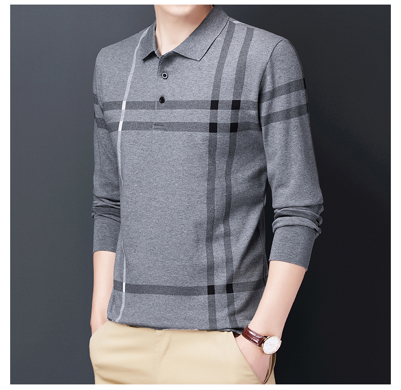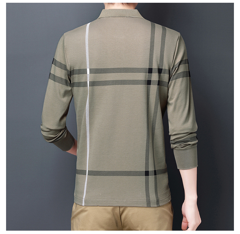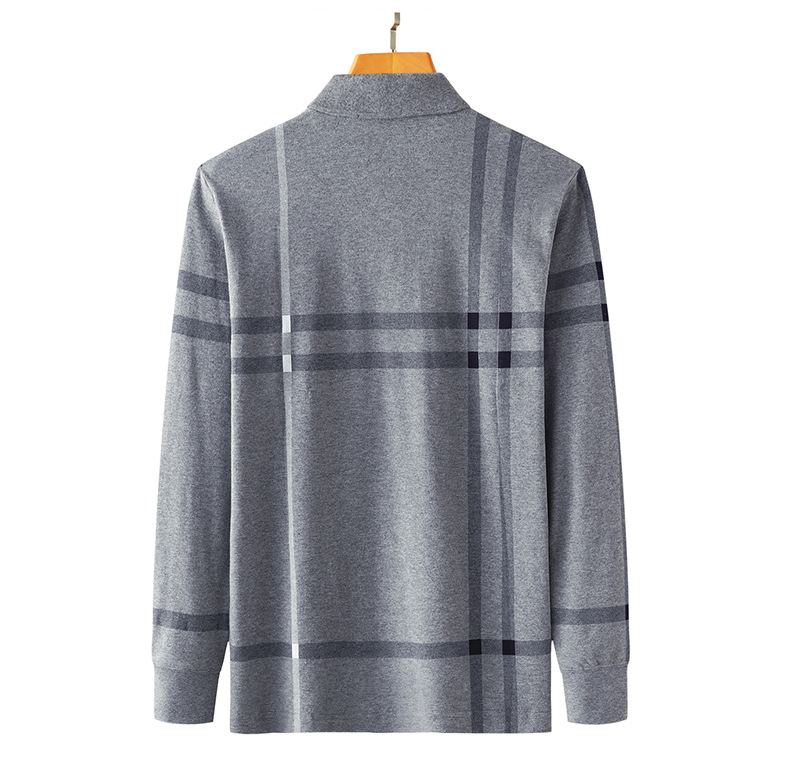 봄철 긴팔 순면 티셔츠 남성용 스트라이프 베이스 레이어 탑 루즈핏 캐주얼 라펠 카라 면 티셔츠 중년 남성 아메리칸 스타일