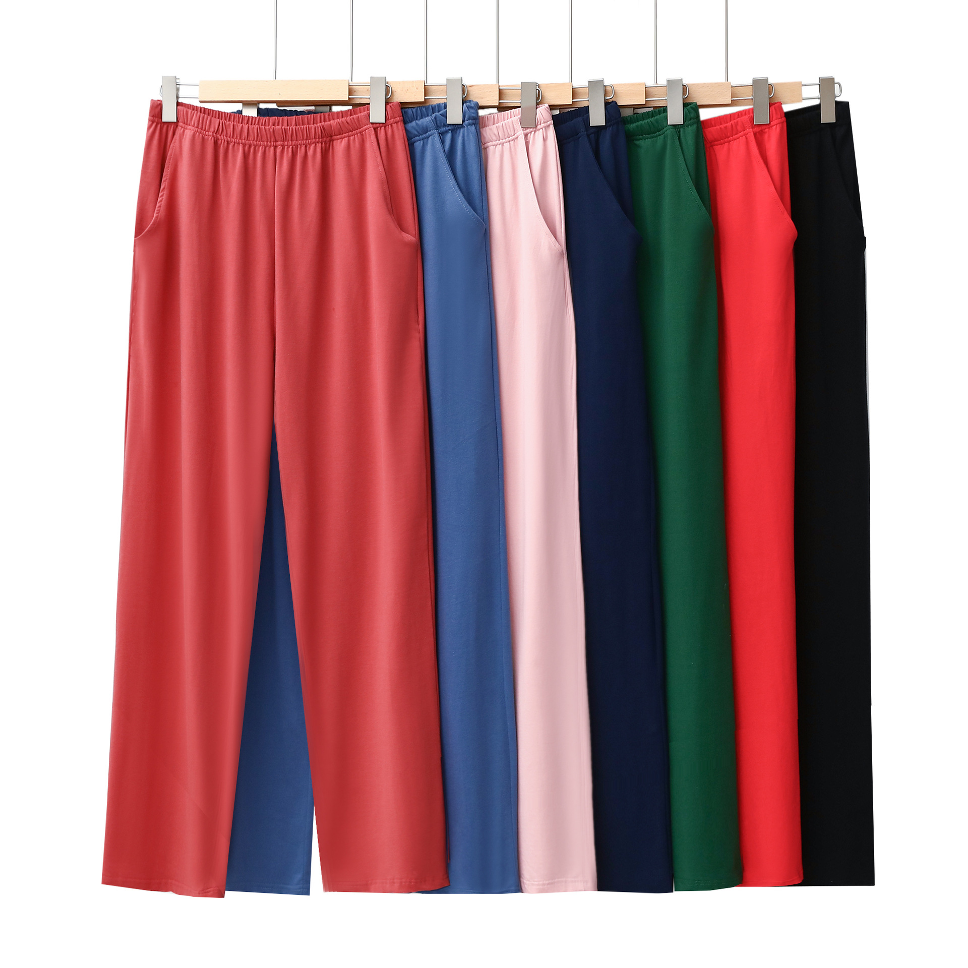 봄과 가을 고품질 니트 코튼 솔리드 컬러 간단한 커플 스트레이트 포켓 홈 파자마 바지 바지 도매