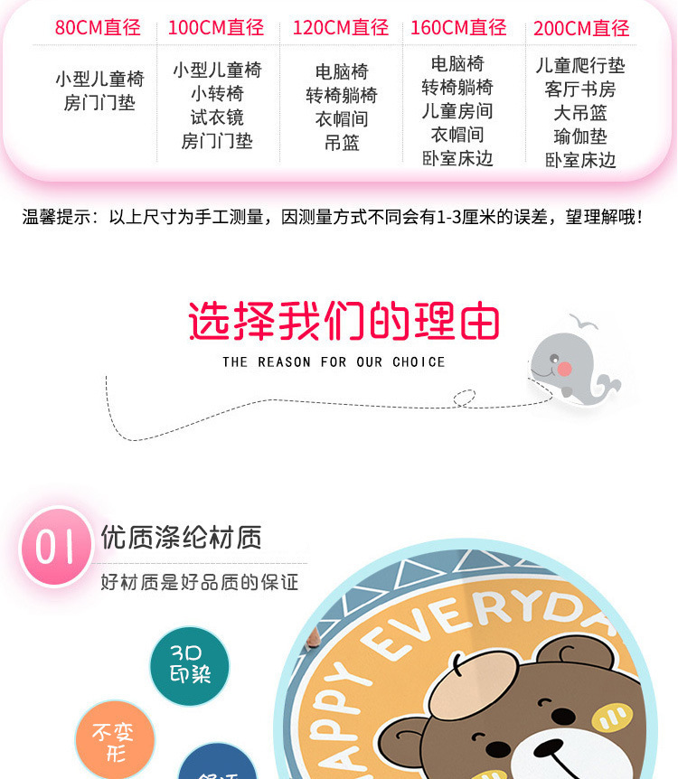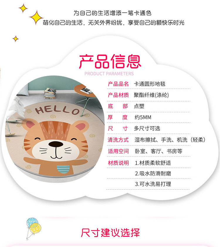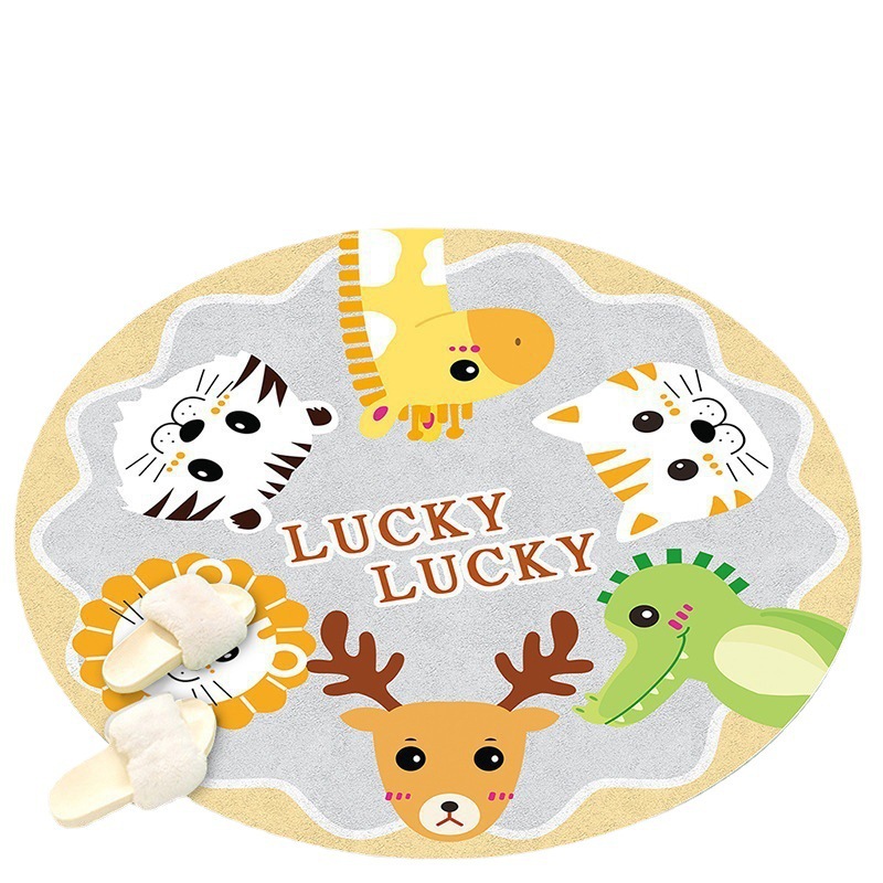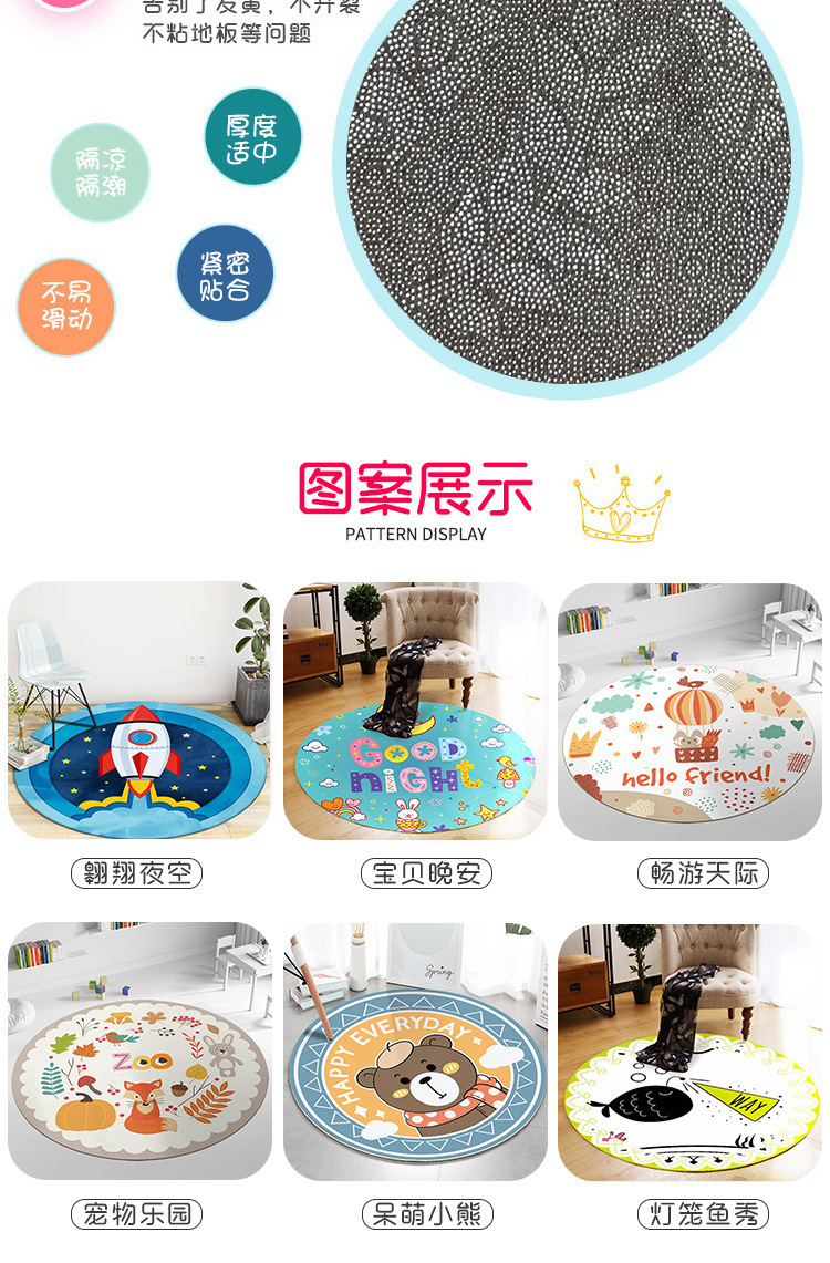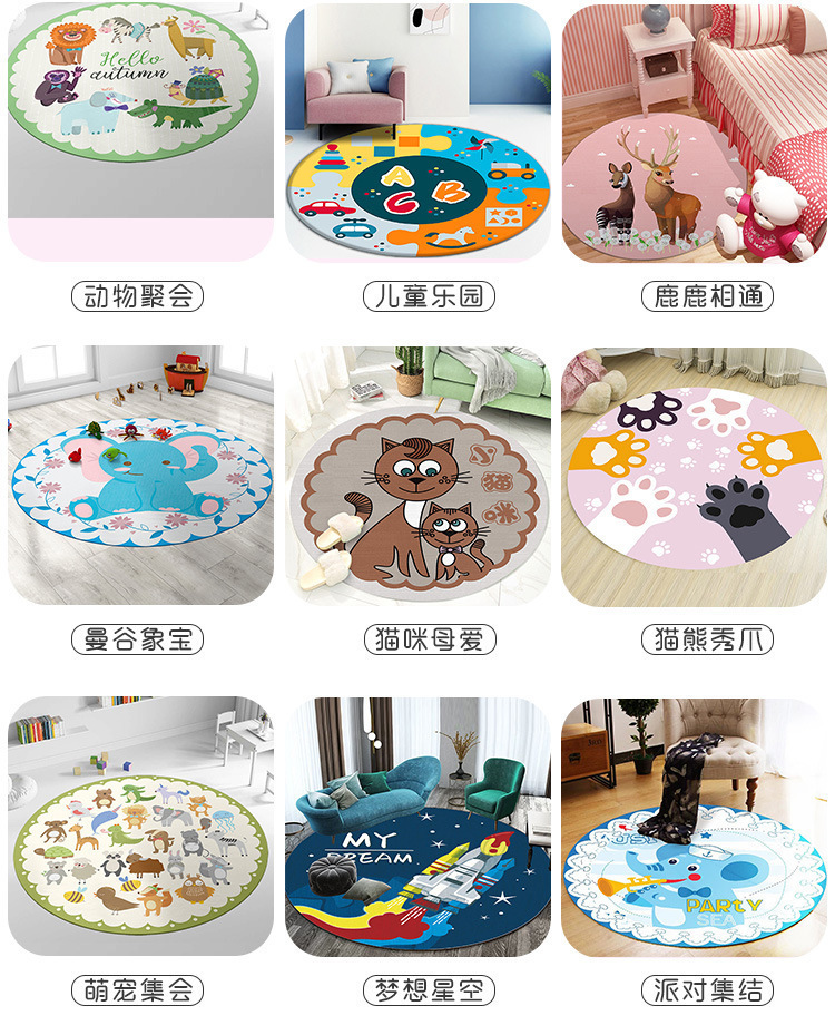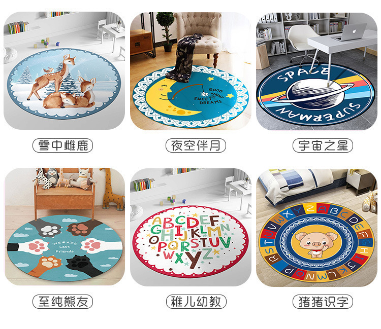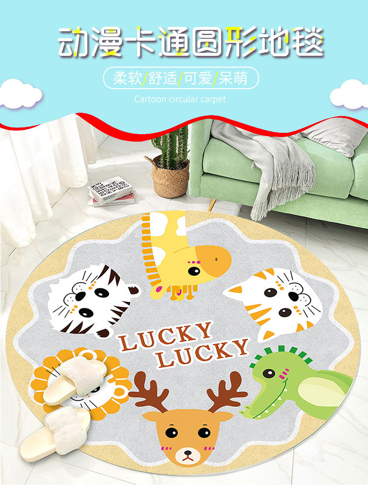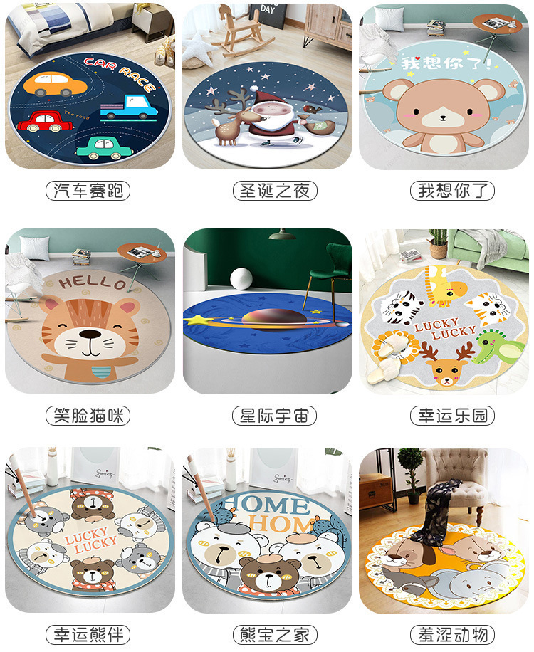 라운드 카펫 어린이 크리스탈 벨벳 크롤링 매트 침실 침대 옆 아기 귀여운 만화 동물 바닥 매트 세대
