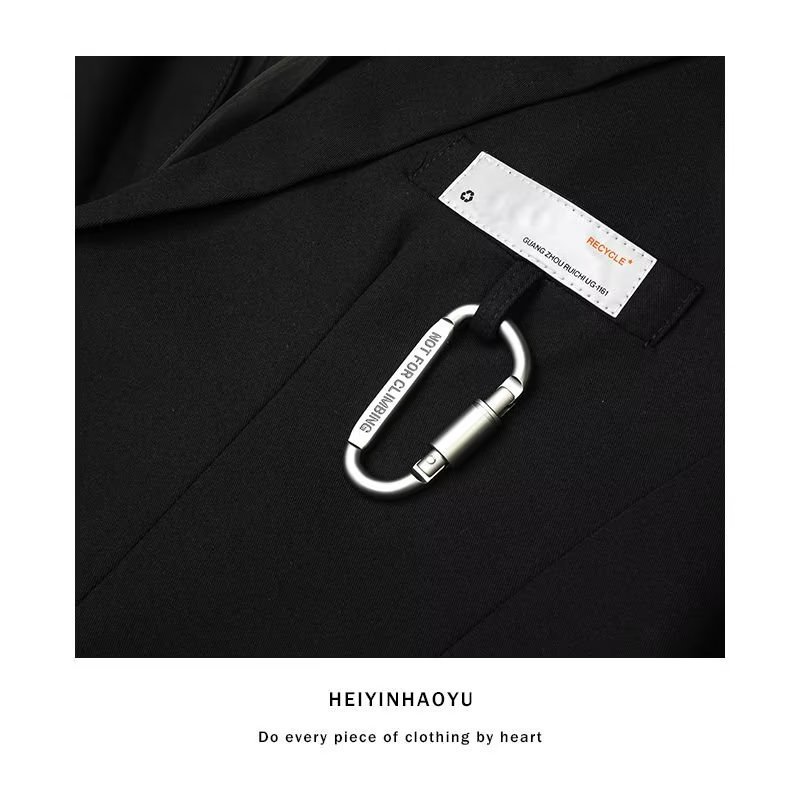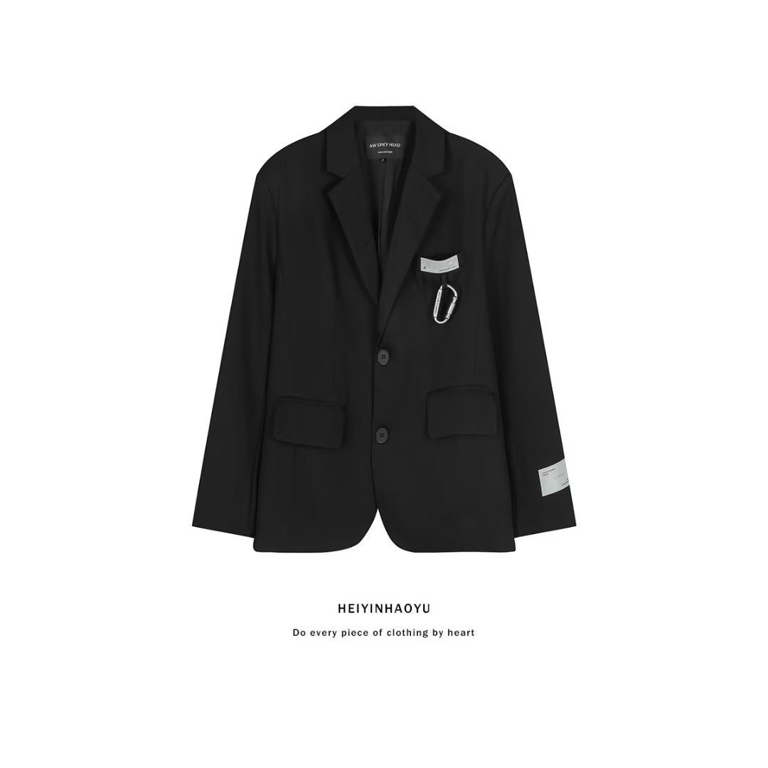 하이 엔드 캐주얼 레트로 느슨한 블랙 세트 재킷 남자의 최신 유행 디자인 감각 틈새 거리 튀김 잘 생긴 세트