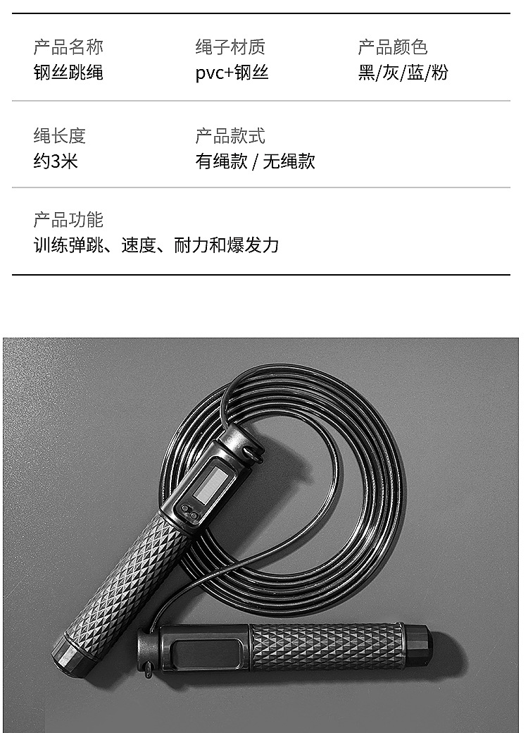 4.产品重量:手柄+钢丝绳:198g