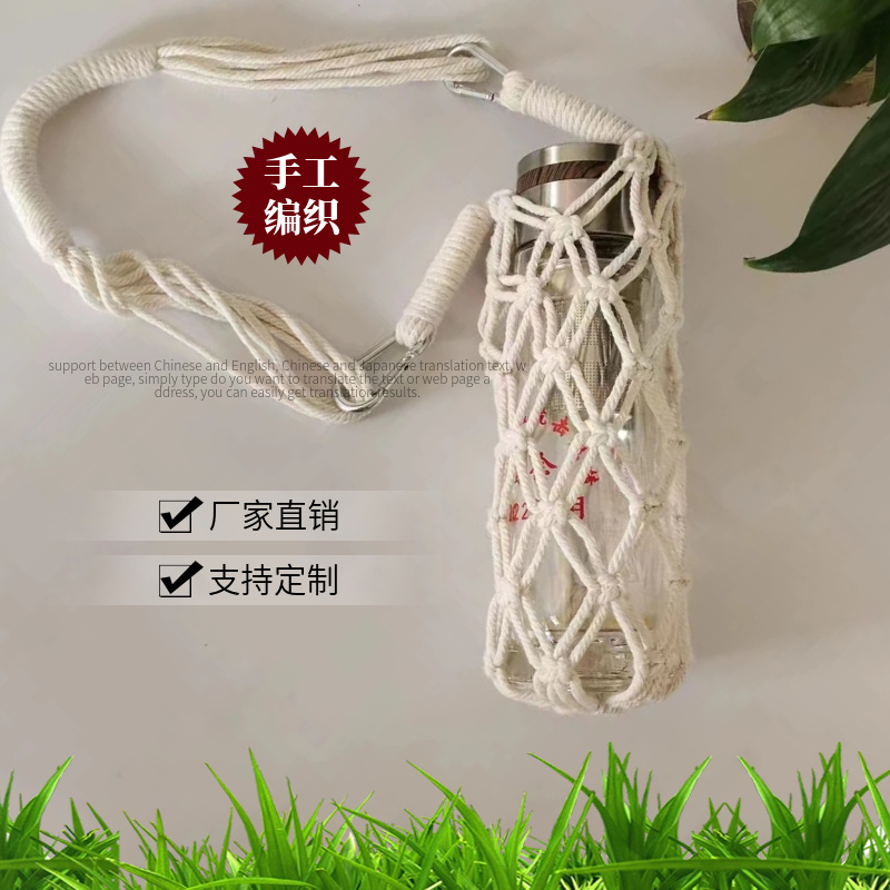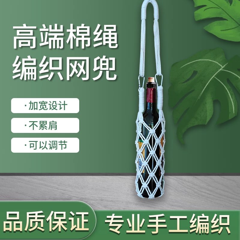 손으로 짠 와인 가방 DIY 면 로프 레드 와인 병 커버 핸드백 그물 가방 물 컵 보호 커버 선물 가방